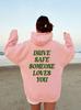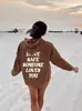 Suéter de mujer europeo y americano de Amazon transfronterizo con forro polar, liso con letras estampadas, bolsillo canguro, cordón y capucha estampada
