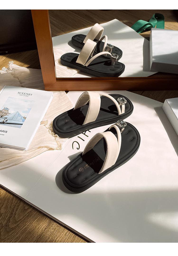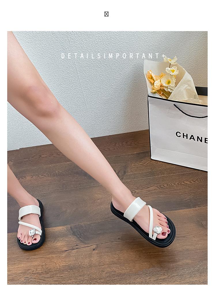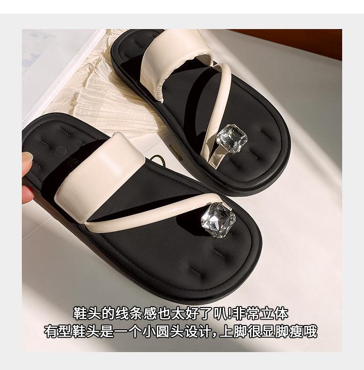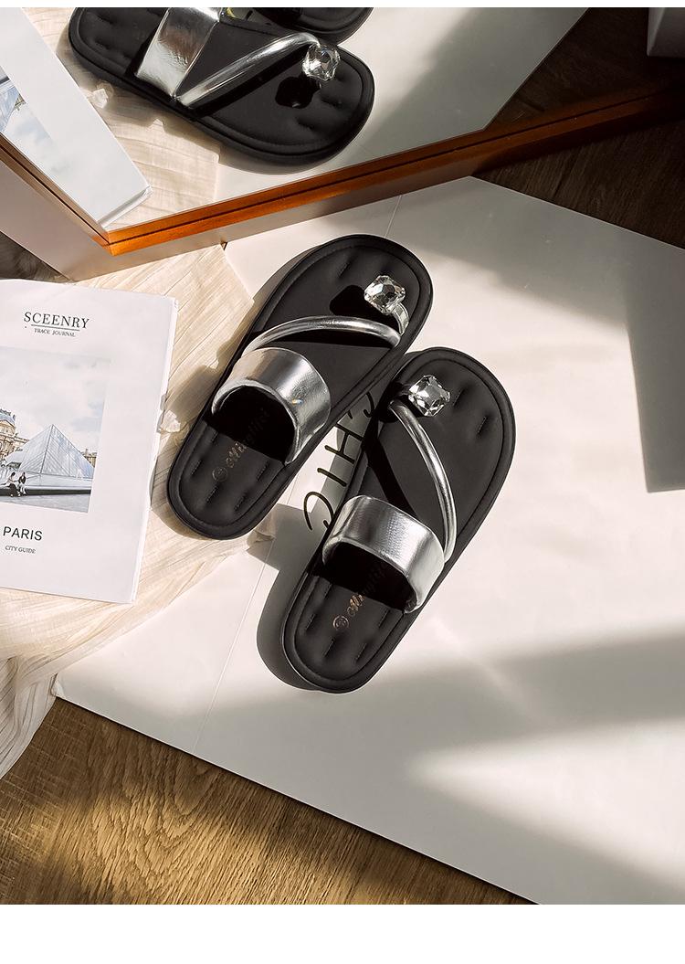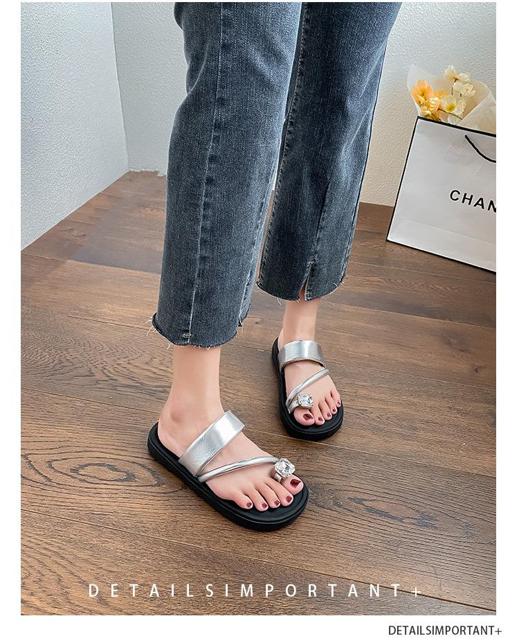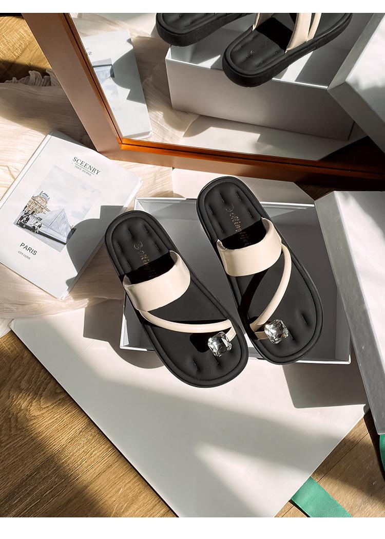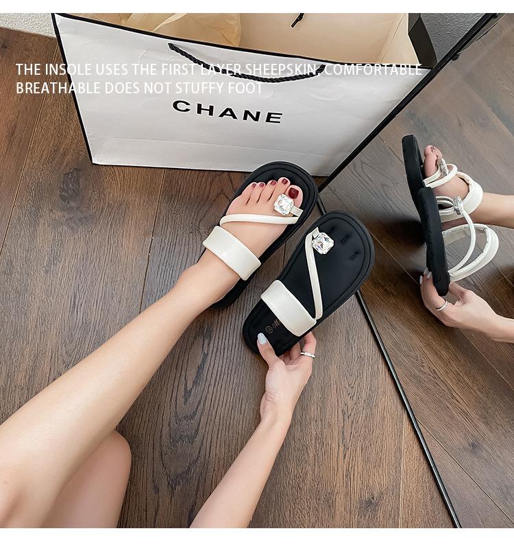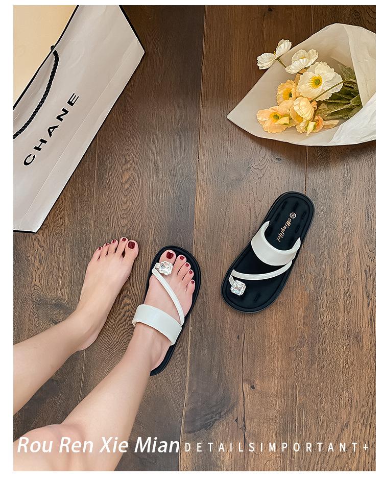Chanclas de una línea estilo francés para ropa exterior de mujer 2025 verano nuevo de moda con pedrería de suela gruesa sandalias casuales