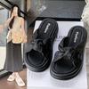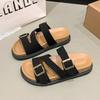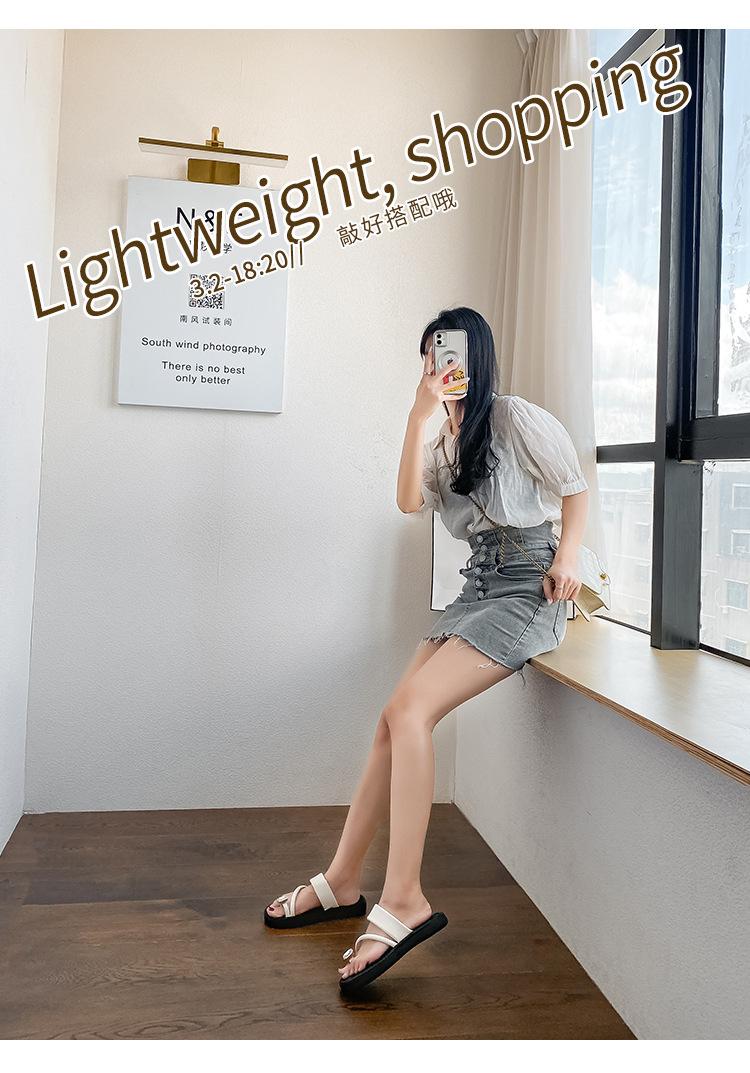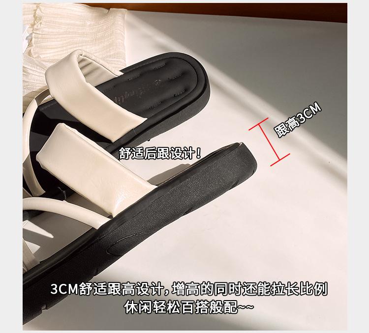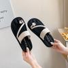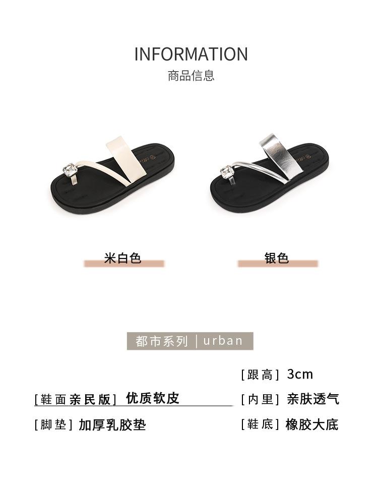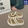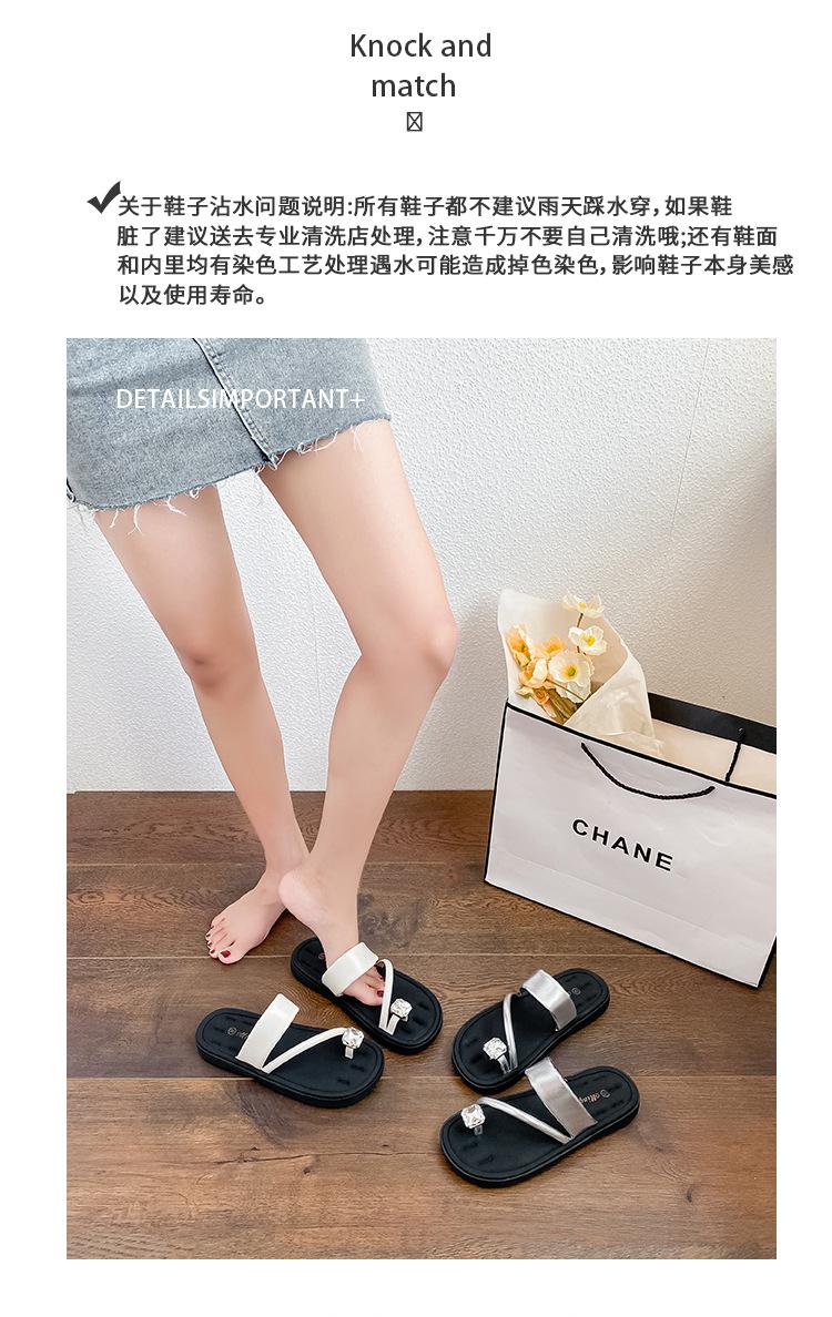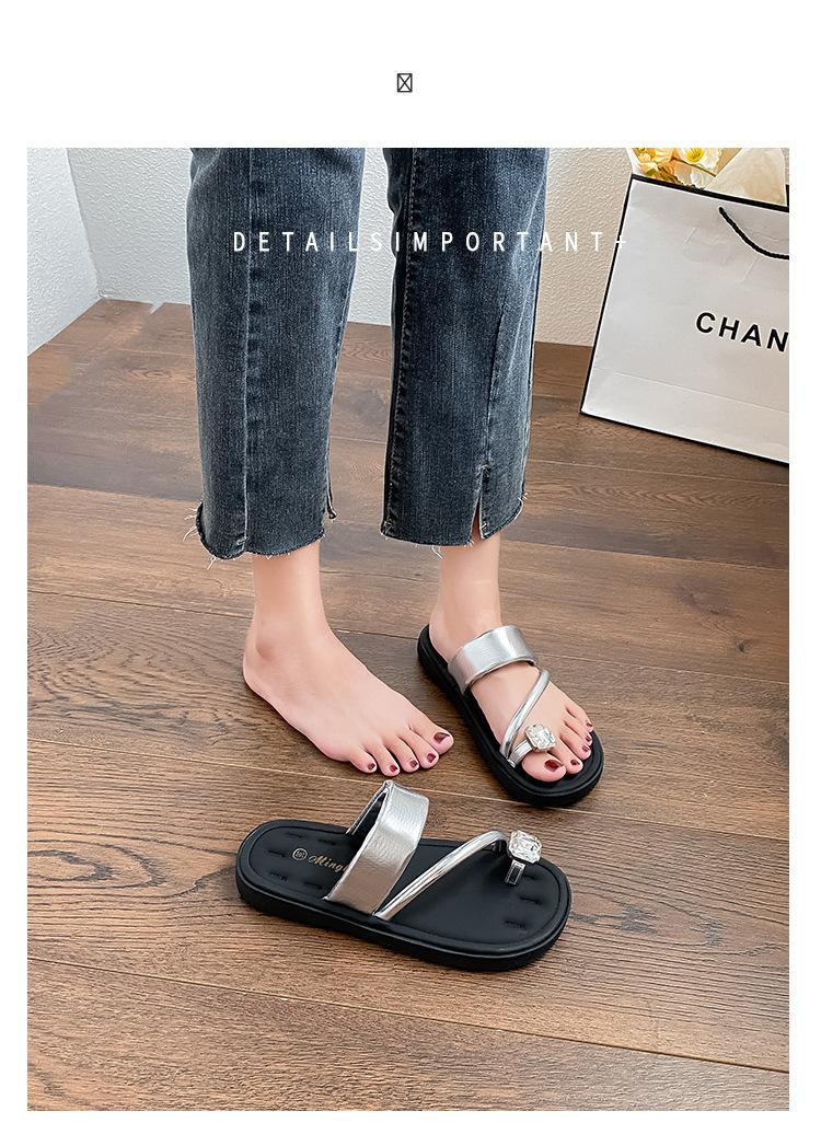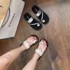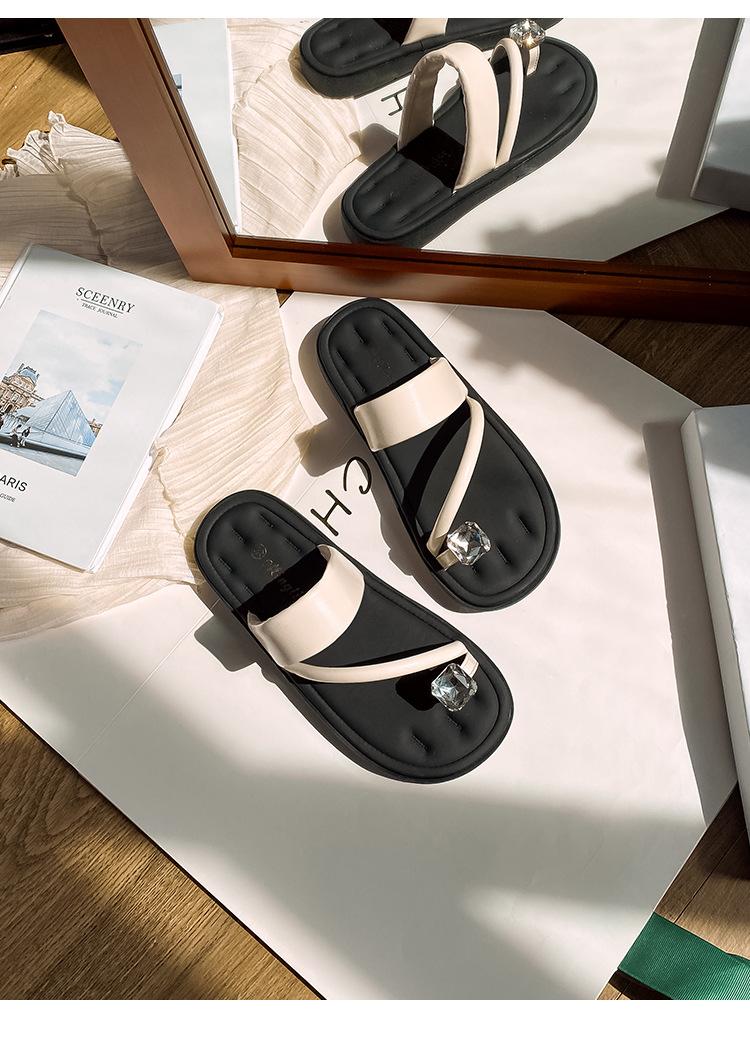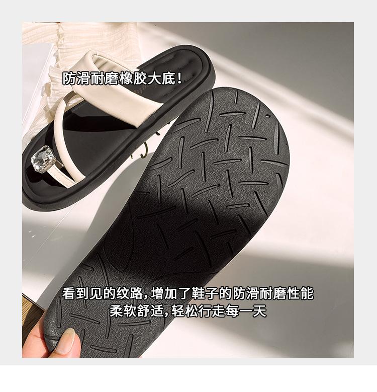 Chanclas de una línea estilo francés para ropa exterior de mujer 2025 verano nuevo de moda con pedrería de suela gruesa sandalias casuales