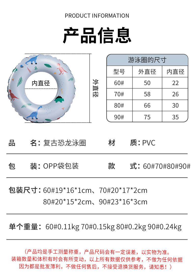 60# retro dinosaur swimming ring, 70# retro dinosaur swimming ring, 80# retro dinosaur swimming ring, 90# retr...