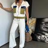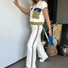 Conjunto de dos piezas de pantalones casuales de manga corta con contraste de color para mujer, moda transfronteriza de Amazon europea y americana, novedad de verano de 2024