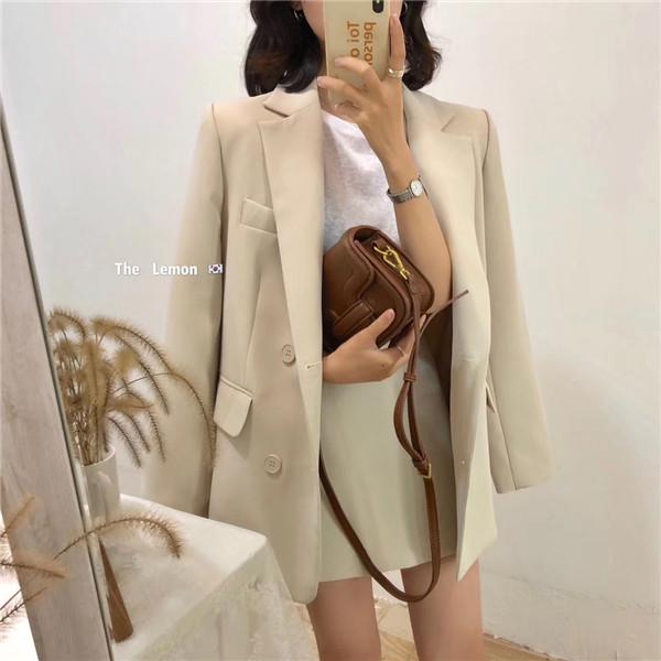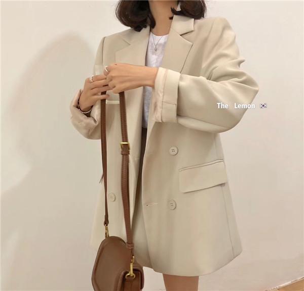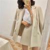 Conjunto de dos piezas de chaqueta y pantalón corto holgado de longitud media para mujer, primavera y otoño 2024, color beige