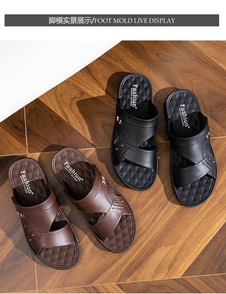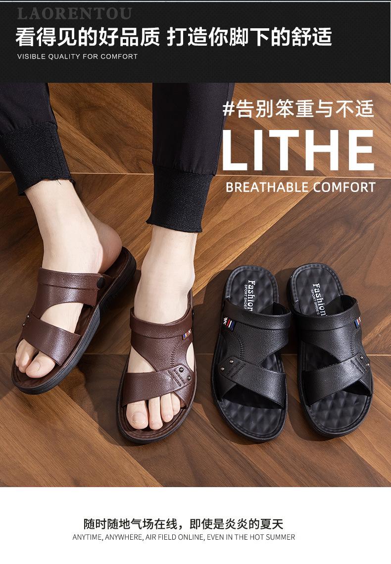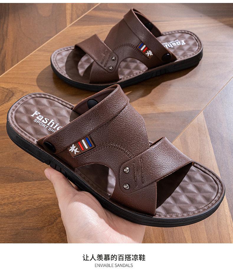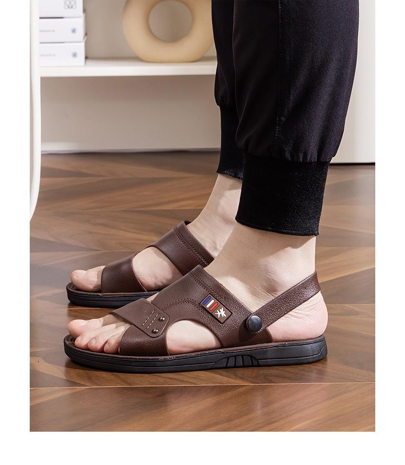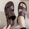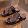 Sandalias para Hombre 2025 Nuevas de Cuero de Suela Gruesa Playa Verano Ropa de Exterior Papá Antideslizantes Resistentes al Desgaste Pantuflas de Doble Propósito Venta al por Mayor