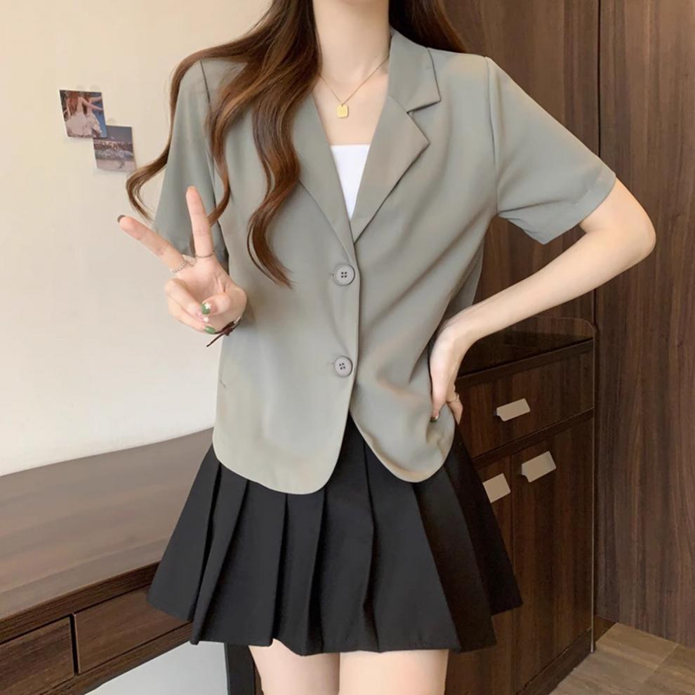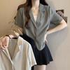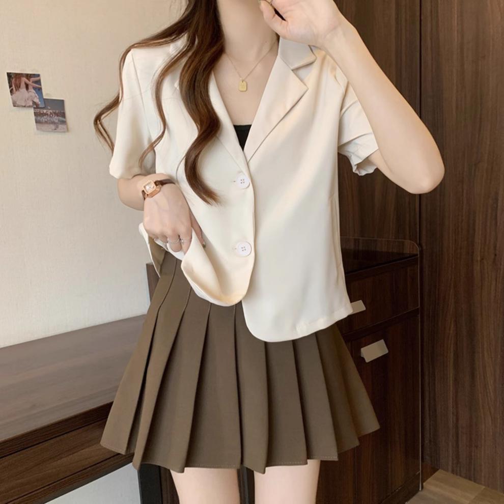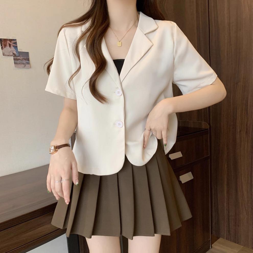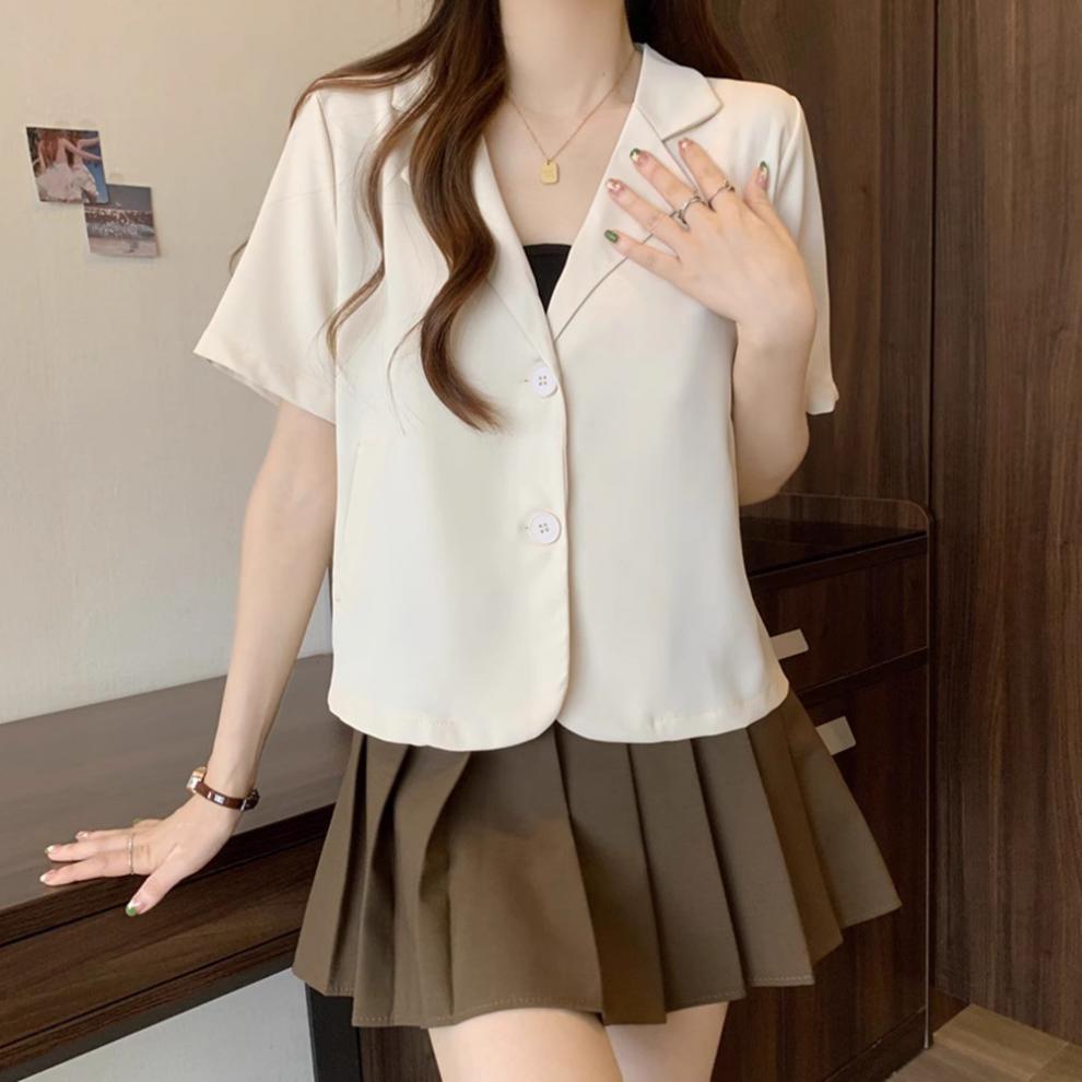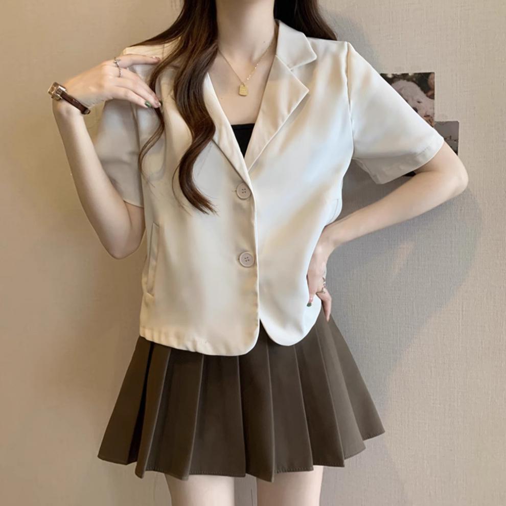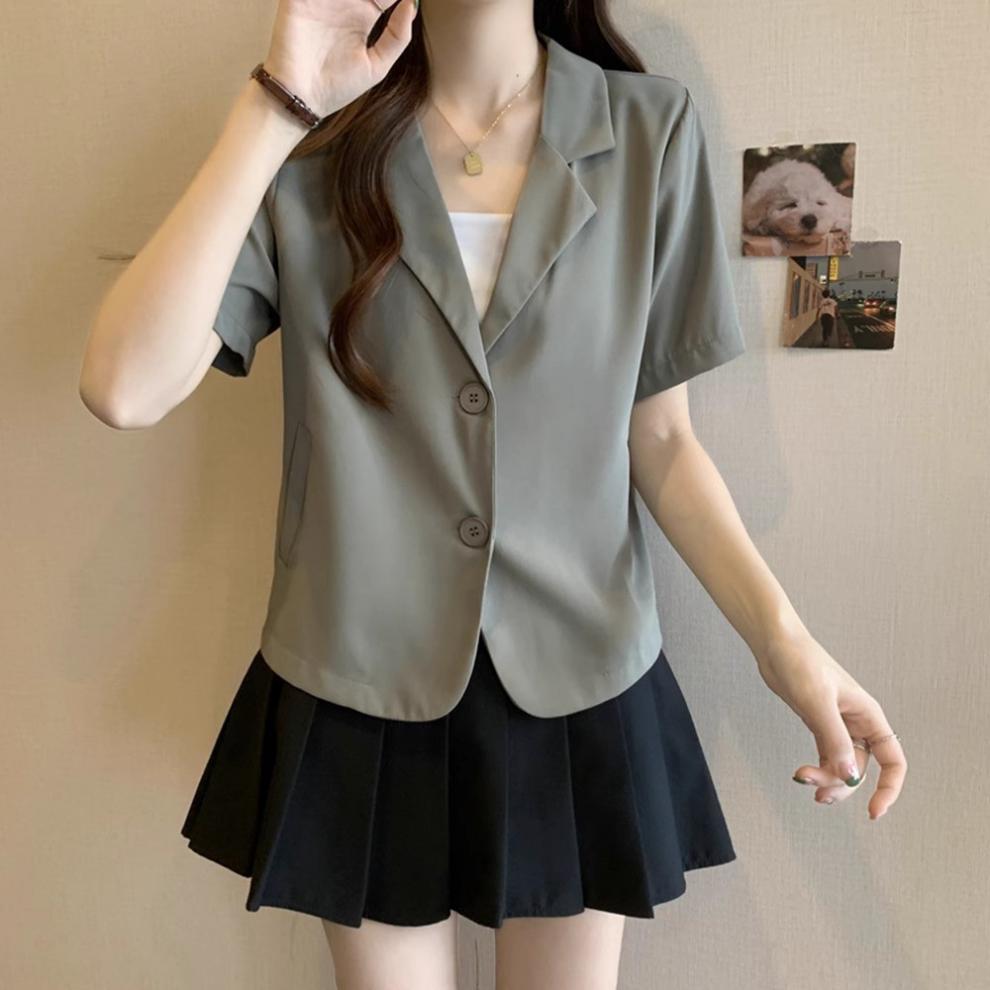 Traje de Color Sólido Verano Nuevo 2025 Short Abrigo Diseño Pequeño Nicho Traje Camisa Top Simple