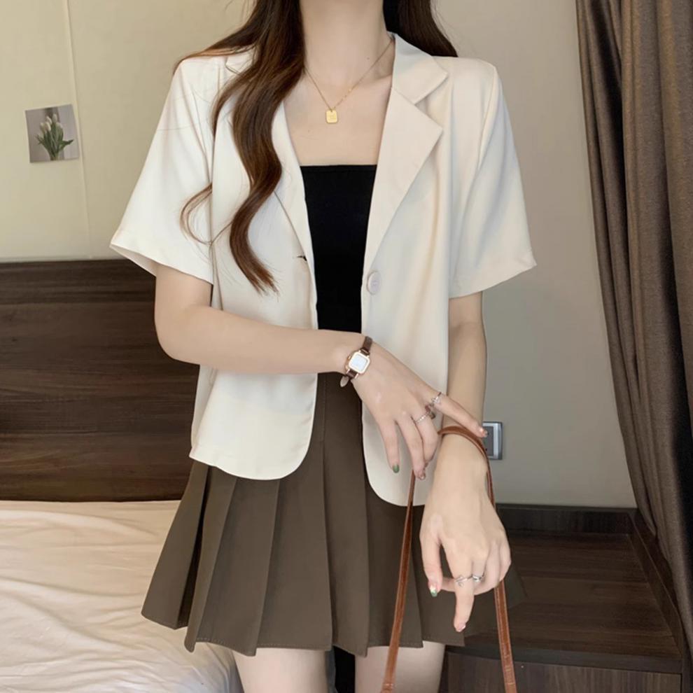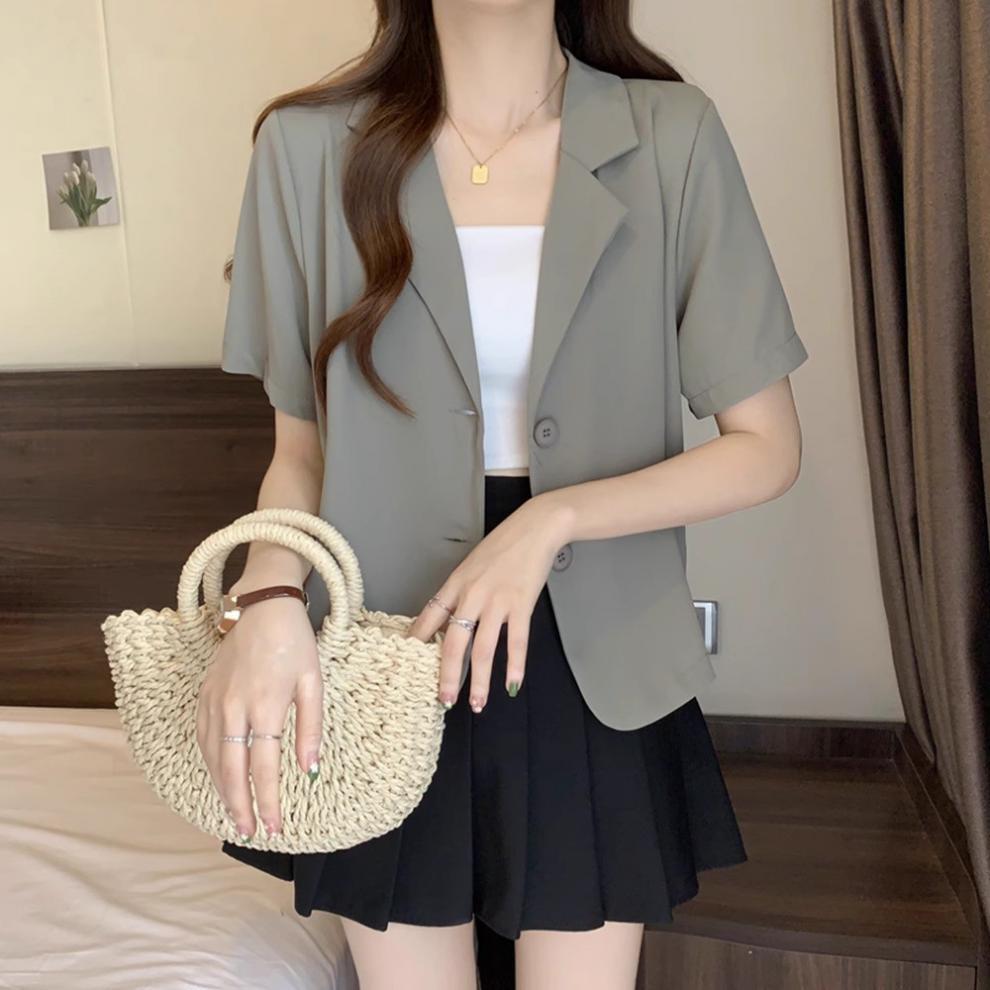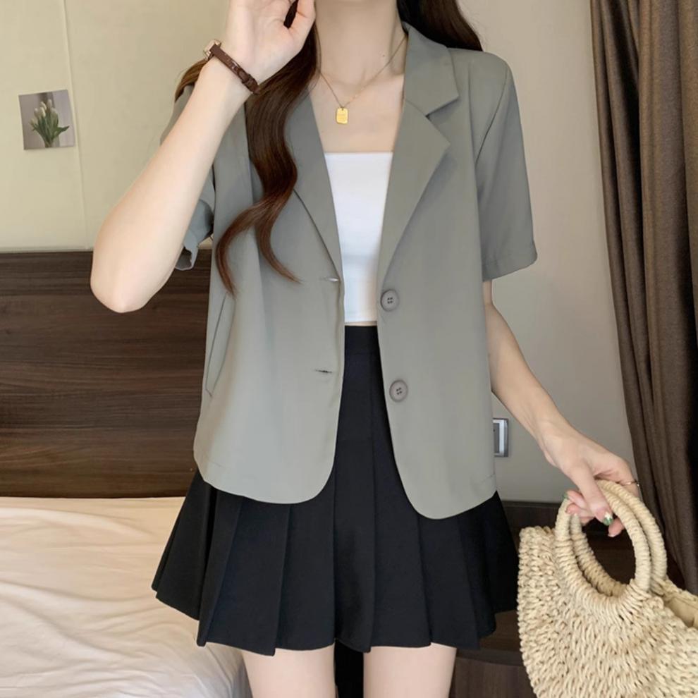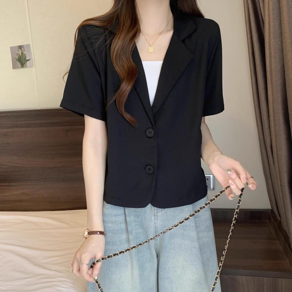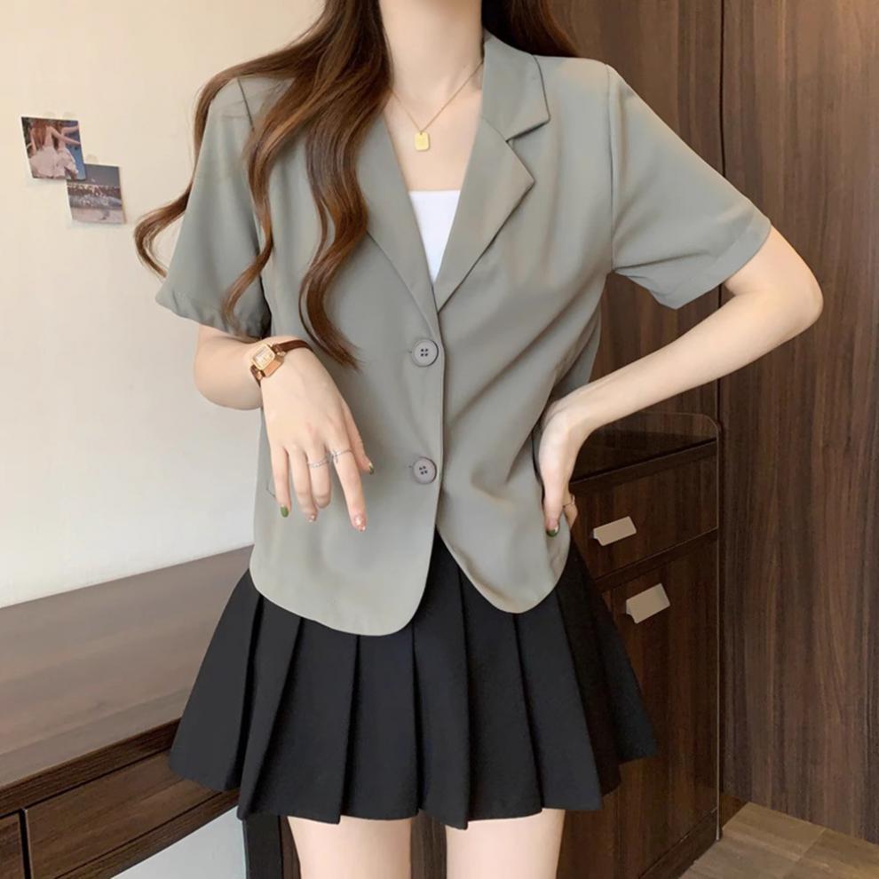 Traje de Color Sólido Verano Nuevo 2025 Short Abrigo Diseño Pequeño Nicho Traje Camisa Top Simple
