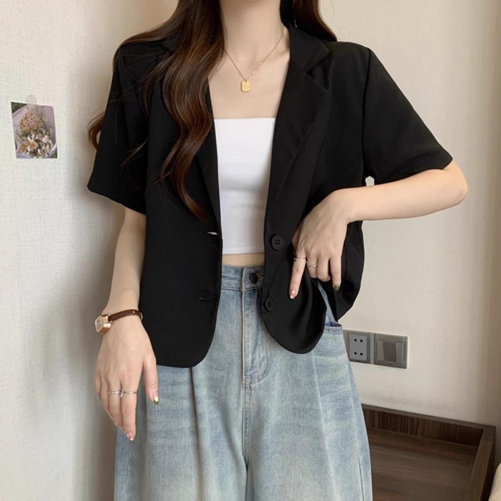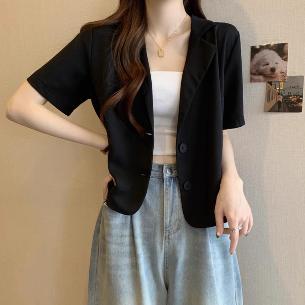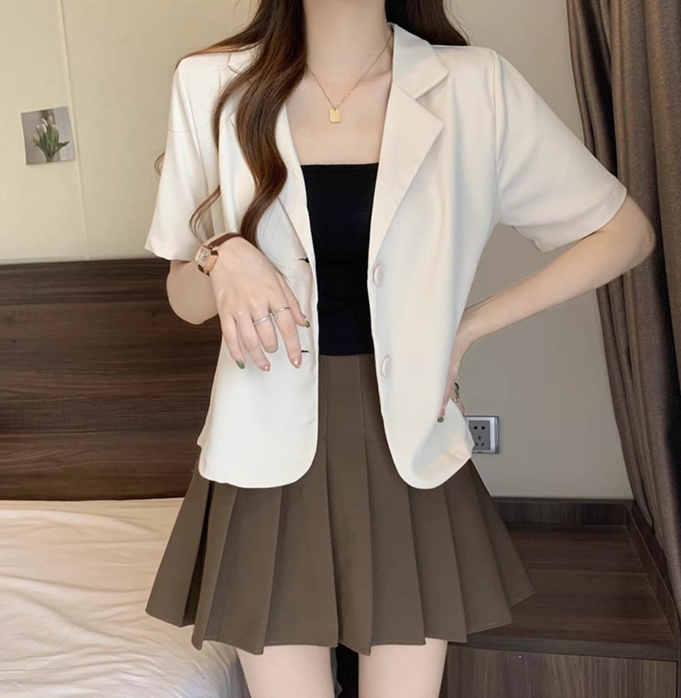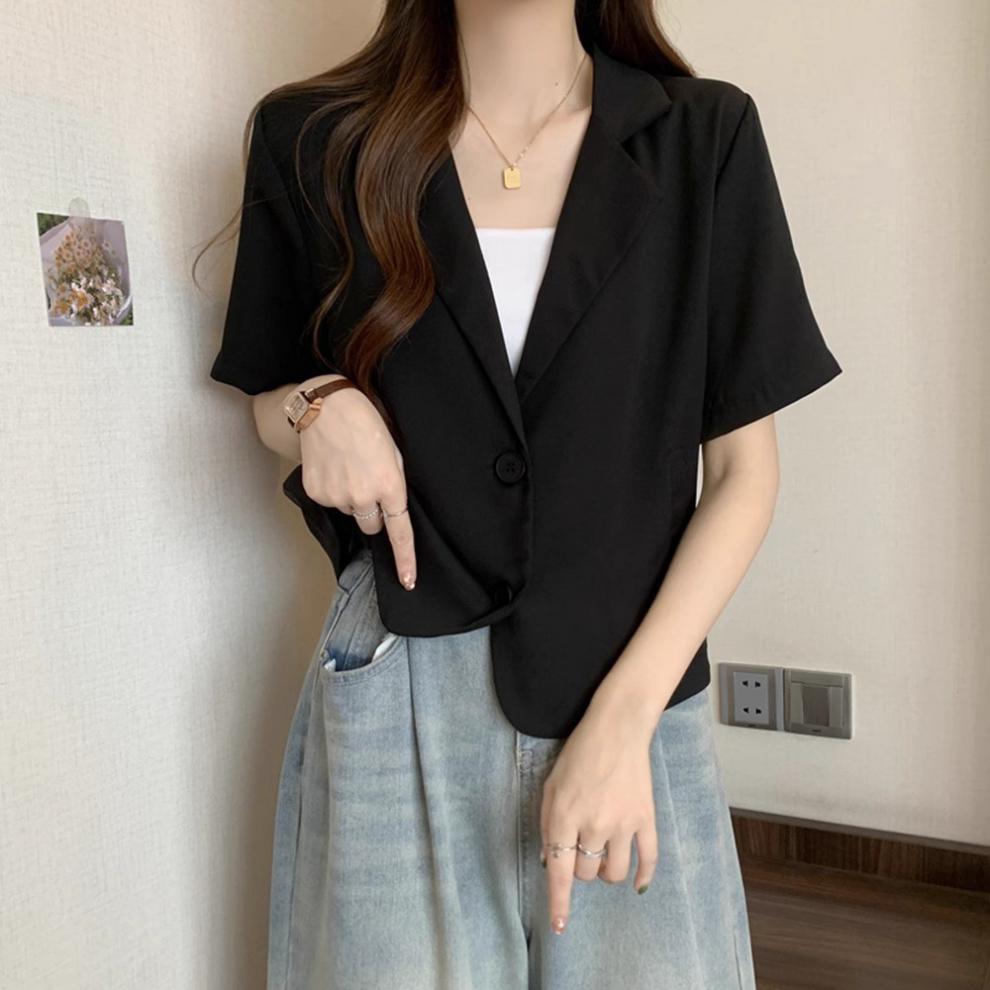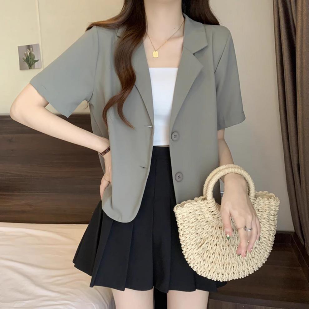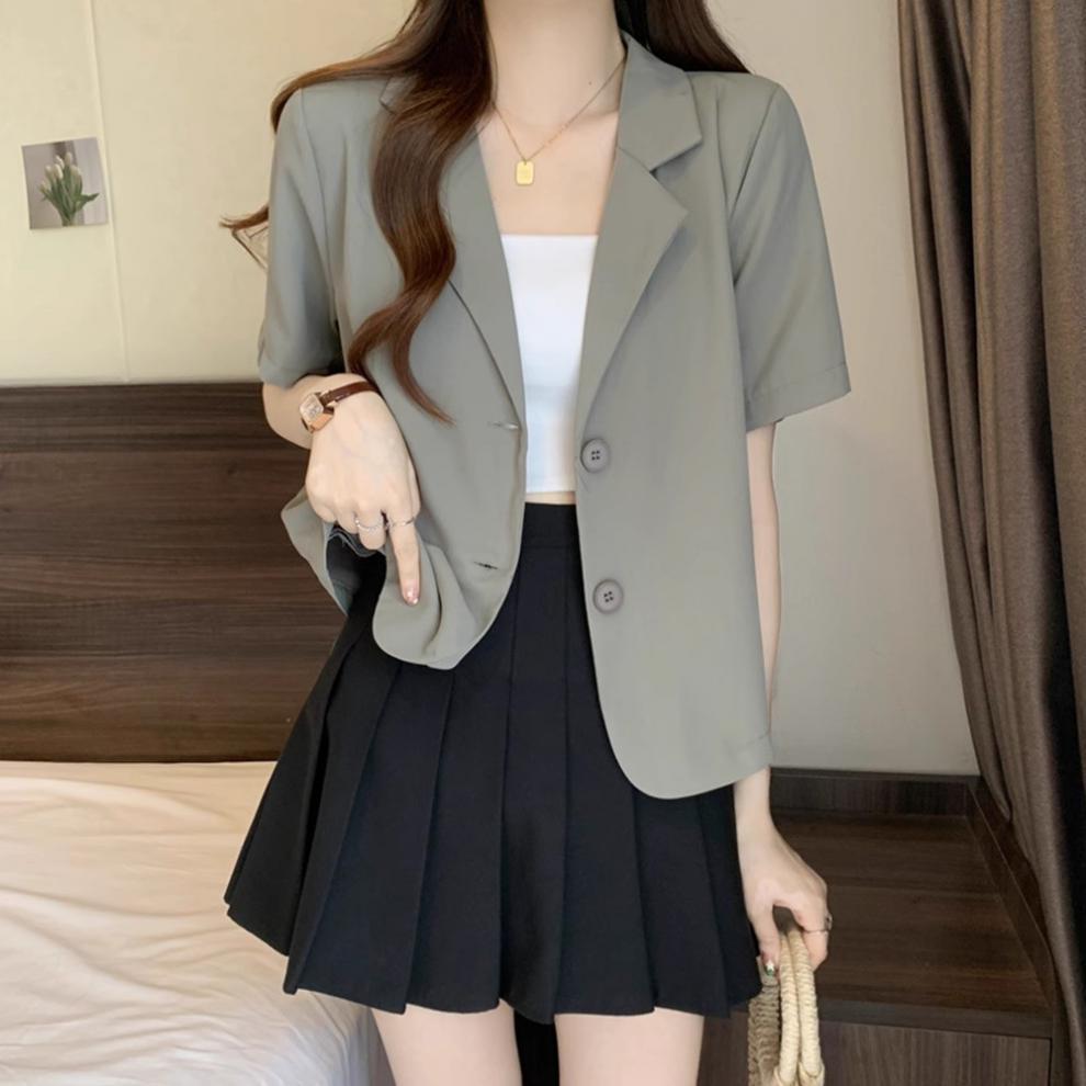 Traje de Color Sólido Verano Nuevo 2025 Short Abrigo Diseño Pequeño Nicho Traje Camisa Top Simple