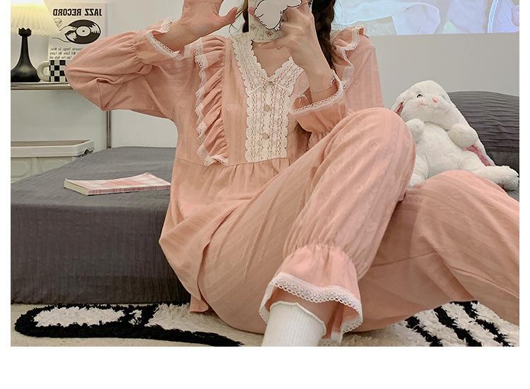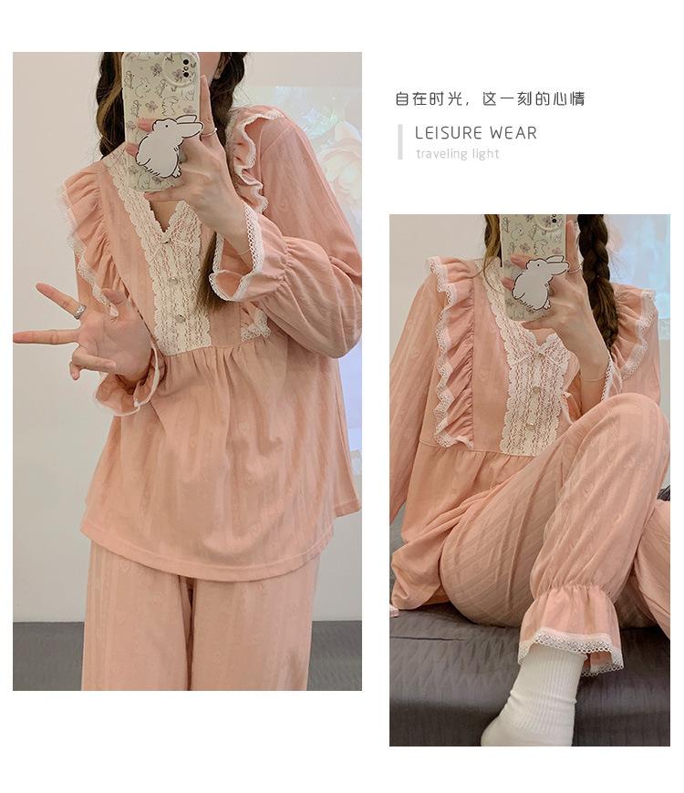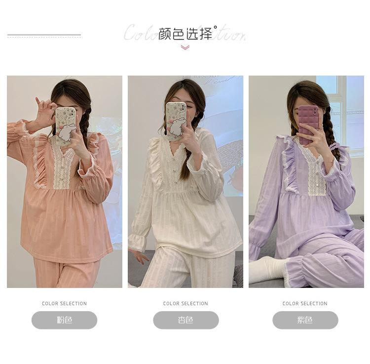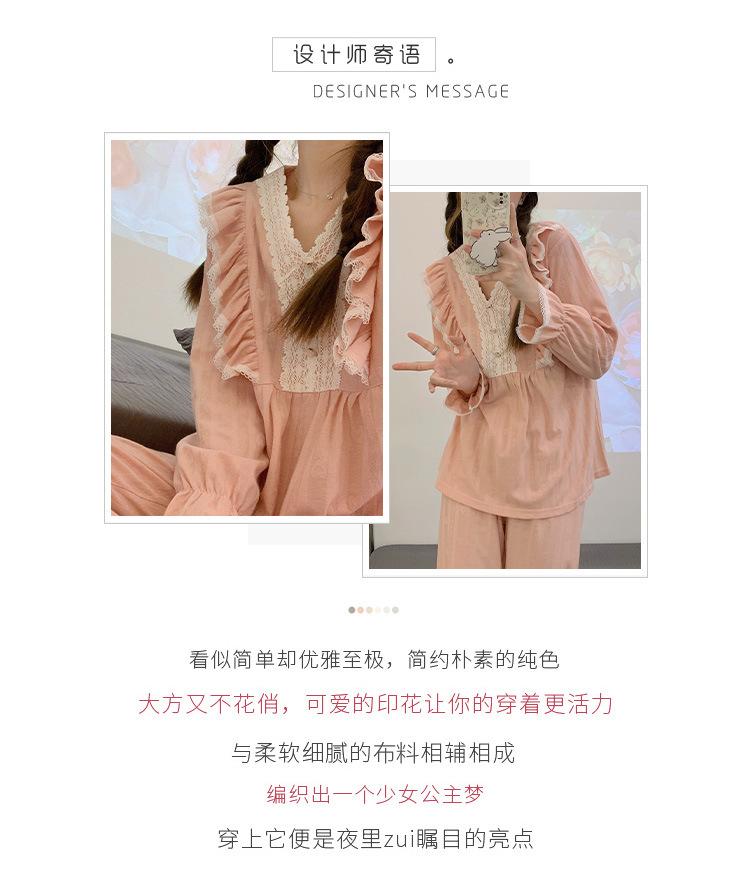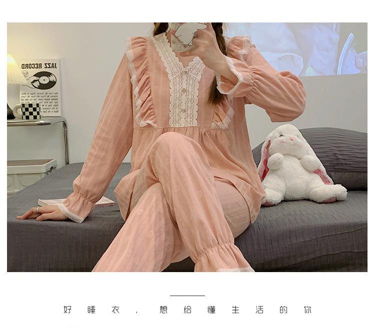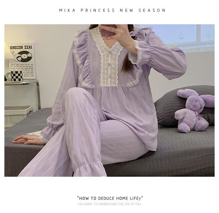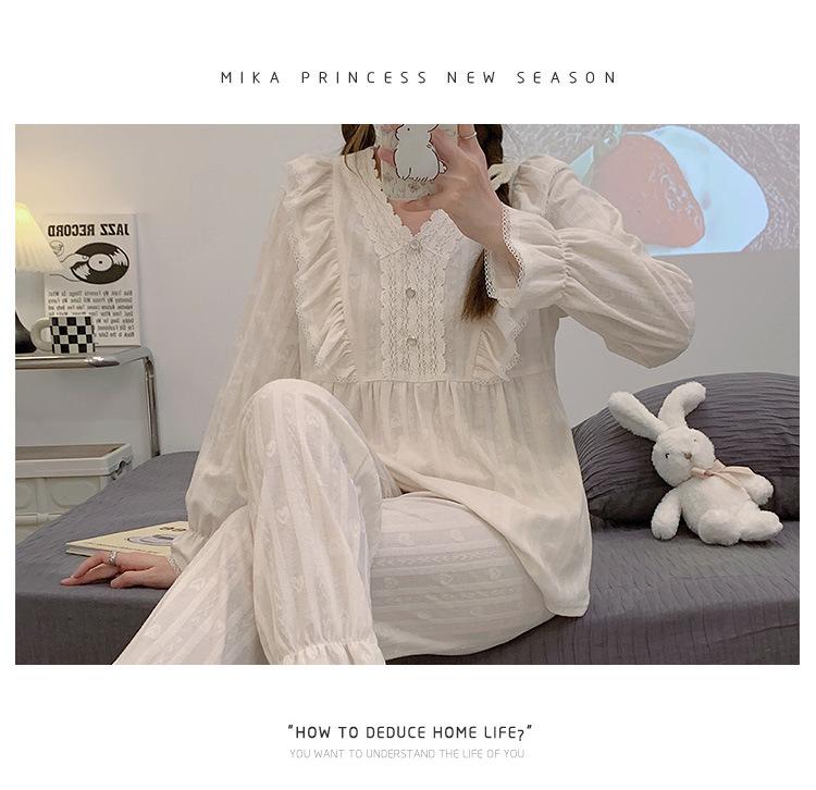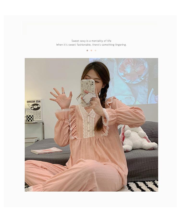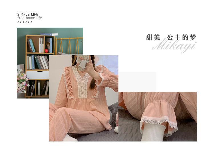 Pijamas de mujer primavera y otoño nuevo 6535 algodón encaje manga larga pantalones estilo princesa dulce ropa de casa traje ropa exterior