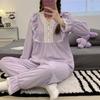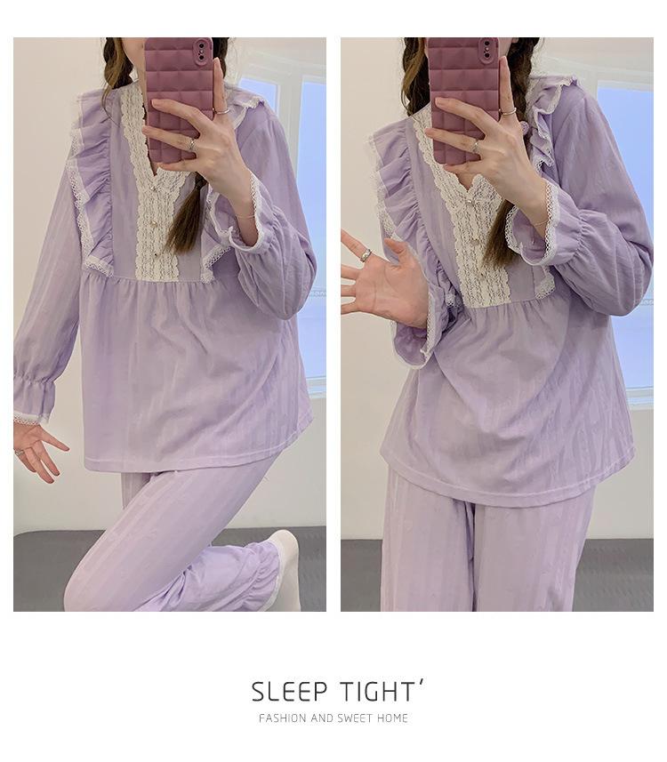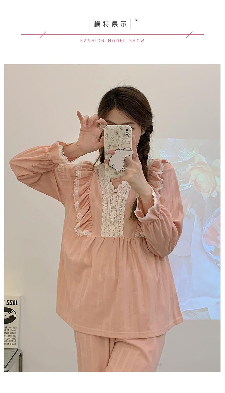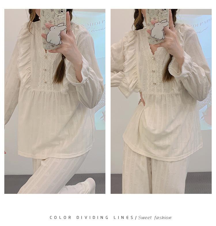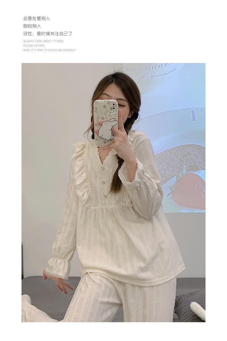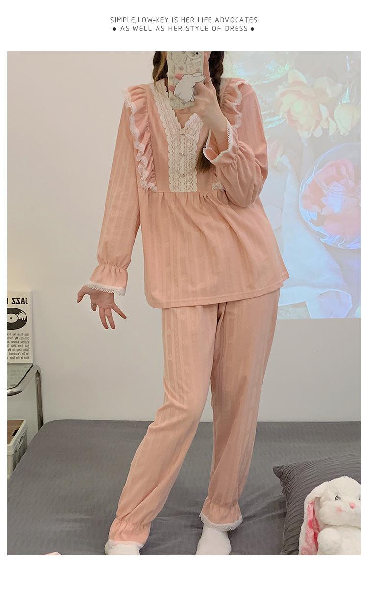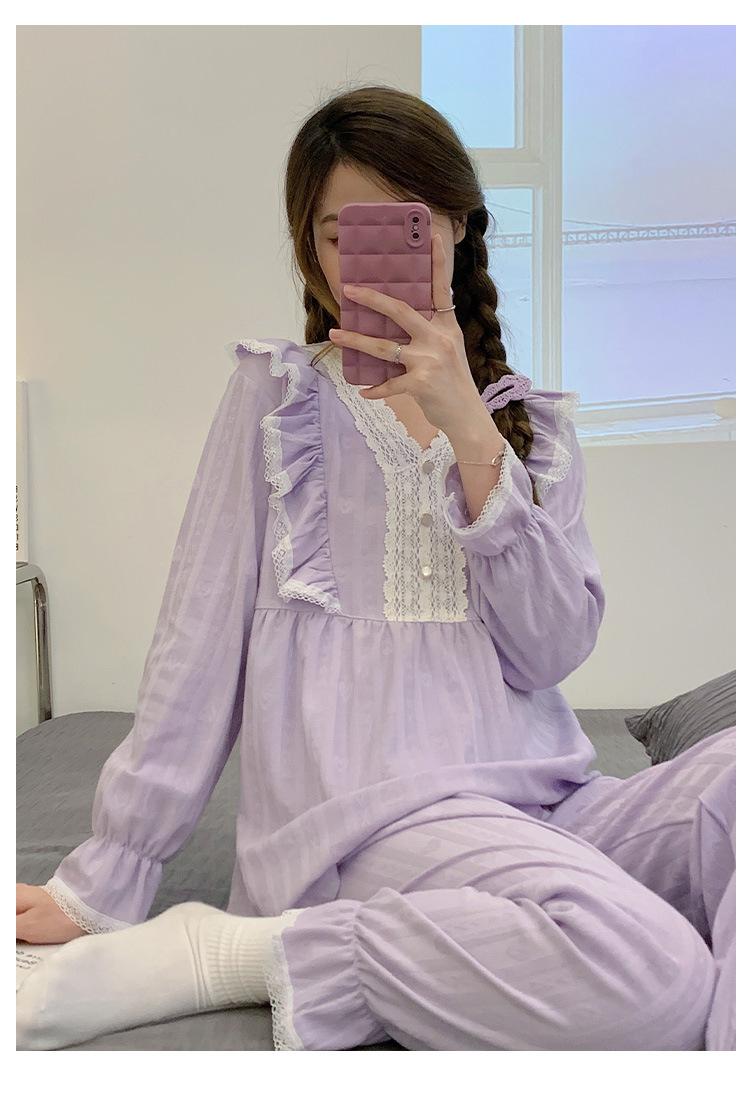 Pijamas de mujer primavera y otoño nuevo 6535 algodón encaje manga larga pantalones estilo princesa dulce ropa de casa traje ropa exterior