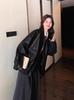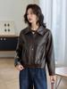 Abrigo de cuero de motocicleta PU para mujer, primavera y otoño 2023, nuevo, con solapa de color en contraste, chaqueta corta suelta de manga larga, moderna y moderna.