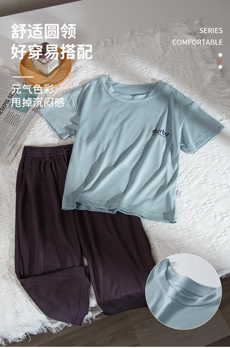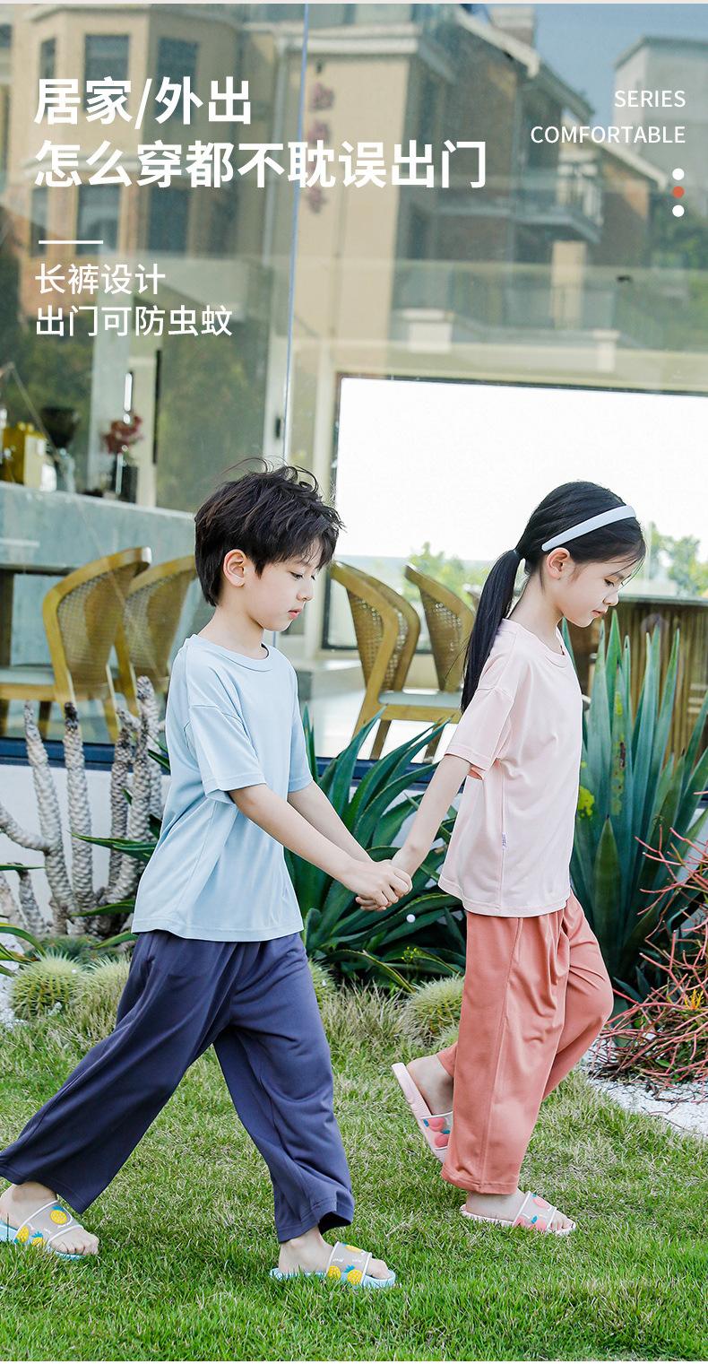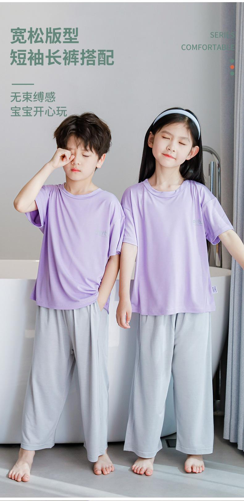Ropa de hogar de algodón de hielo para niños, traje de verano, pijamas finos de manga corta para niños y niñas, ropa de aire acondicionado para niños grandes, venta al por mayor