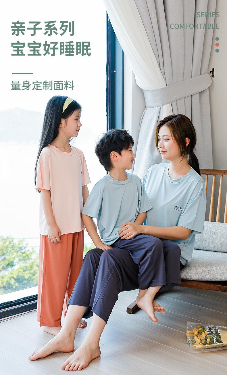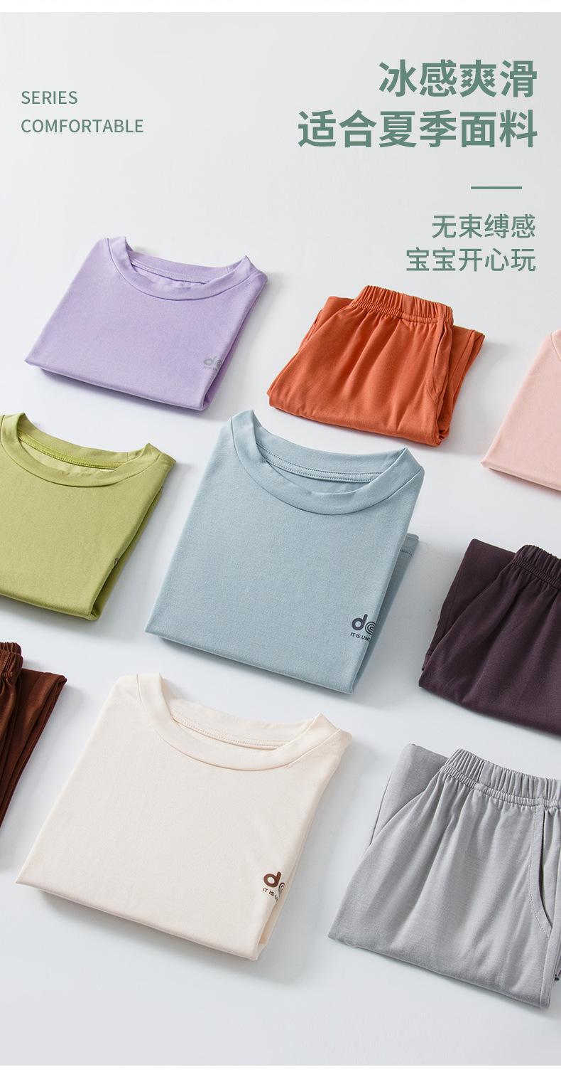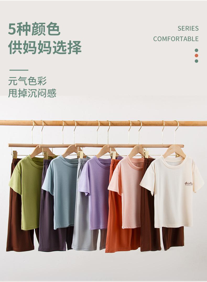 Ropa de hogar de algodón de hielo para niños, traje de verano, pijamas finos de manga corta para niños y niñas, ropa de aire acondicionado para niños grandes, venta al por mayor