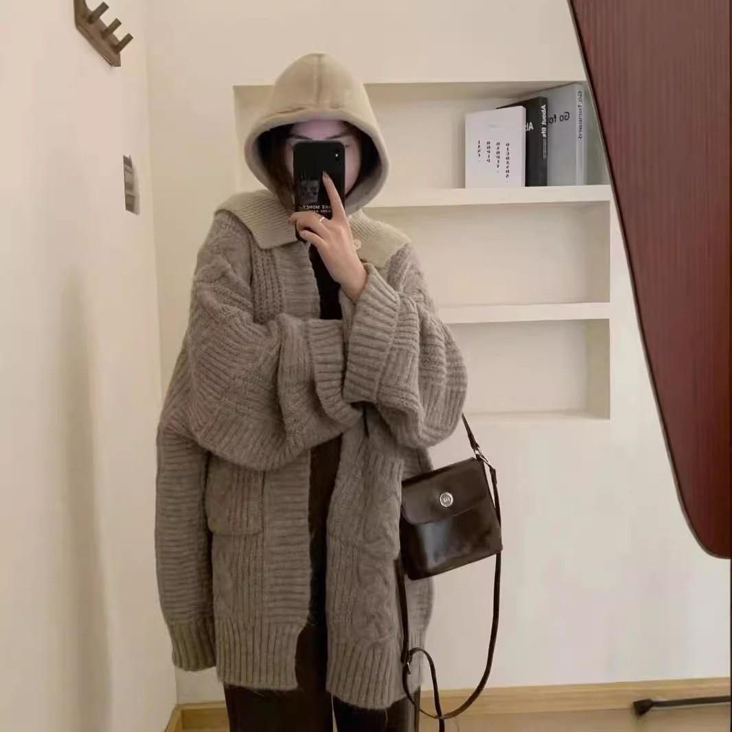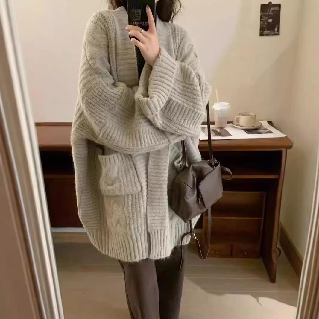 Suéter de punto holgado estilo perezoso 2024, nuevo cárdigan de mujer, abrigo de longitud media, suéter torcido de otoño e invierno, tendencia