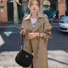 Abrigo de primavera y otoño para mujer 2024, nuevo abrigo de estilo coreano de longitud media, estilo británico, color caqui, para principios de primavera.
