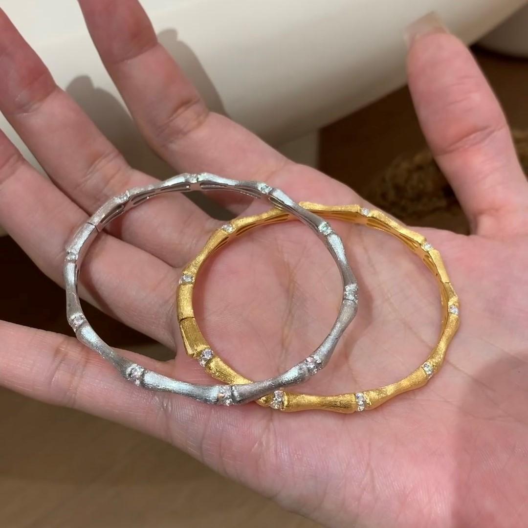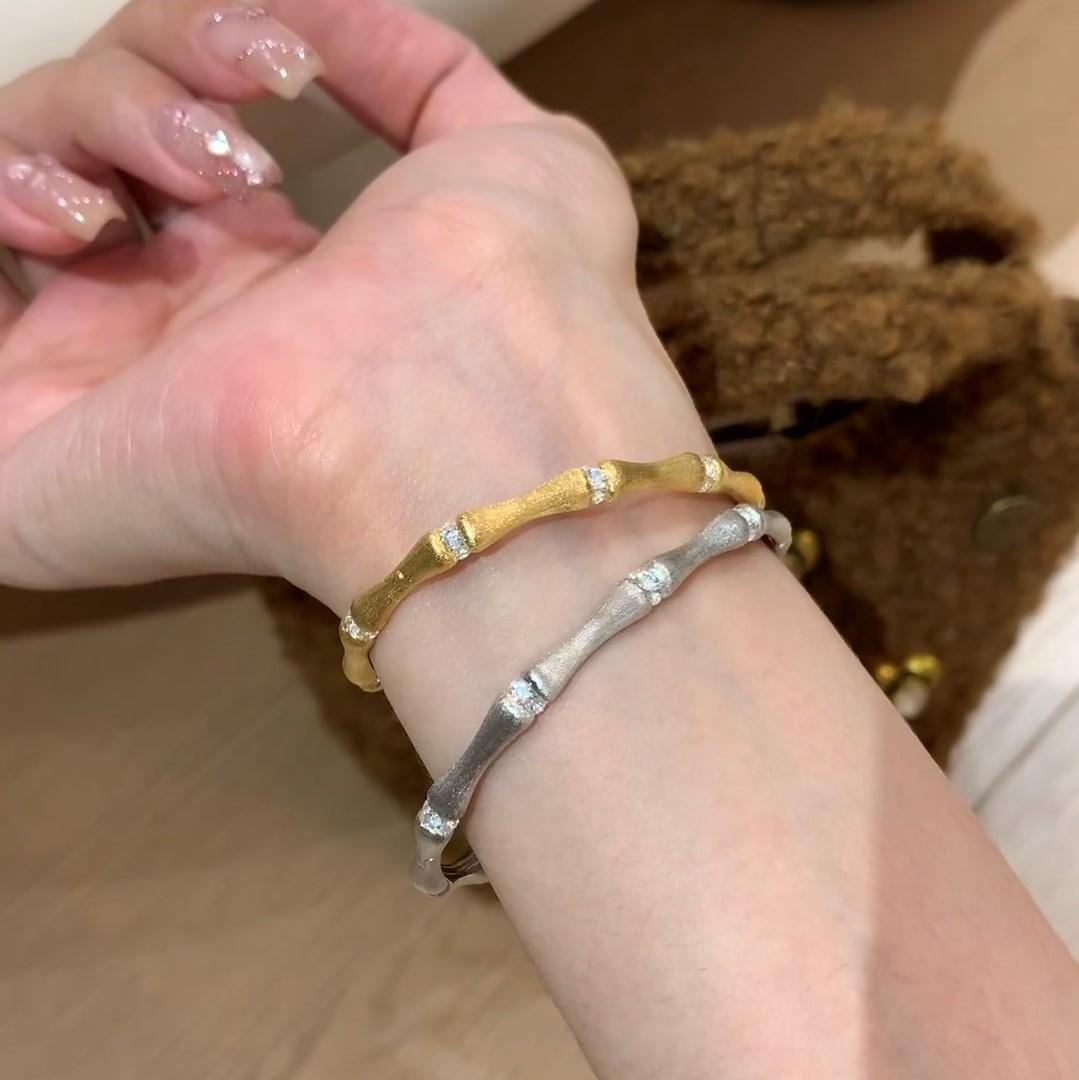 Pulsera Mate de Bambú Metal Zircón para Mujer Lujo Ligero de Alta Gama Simple Elegante Moda Combinable Pulsera Pulsera