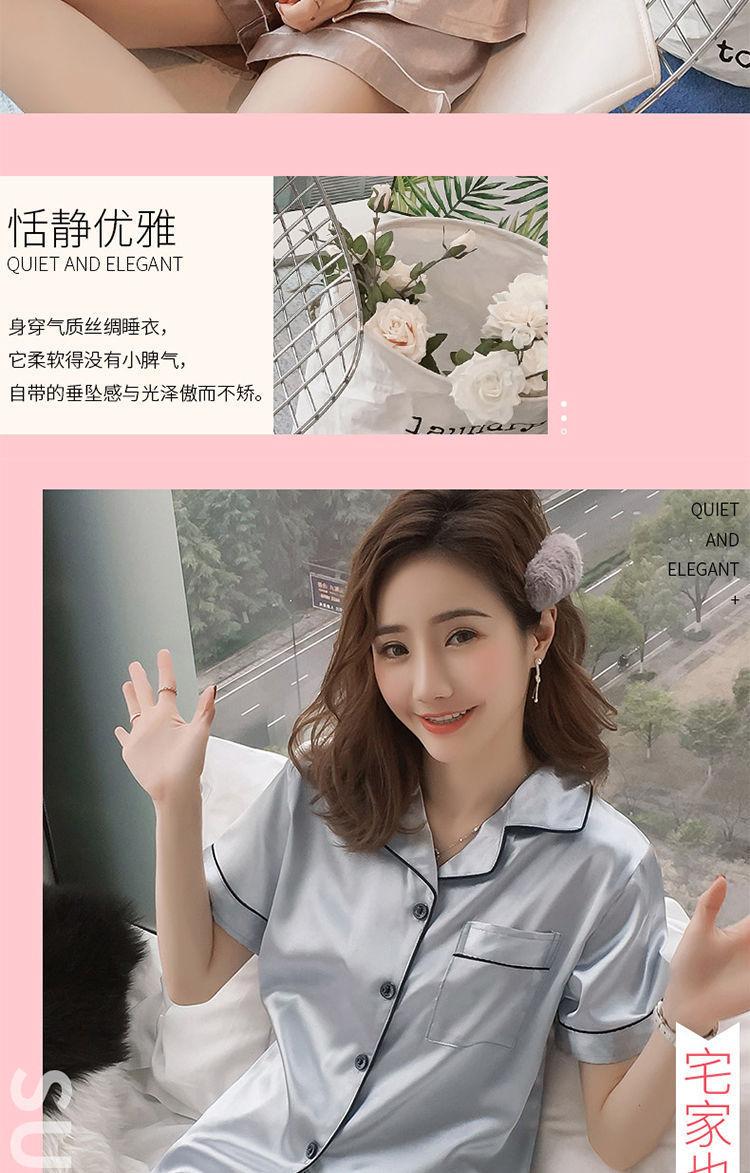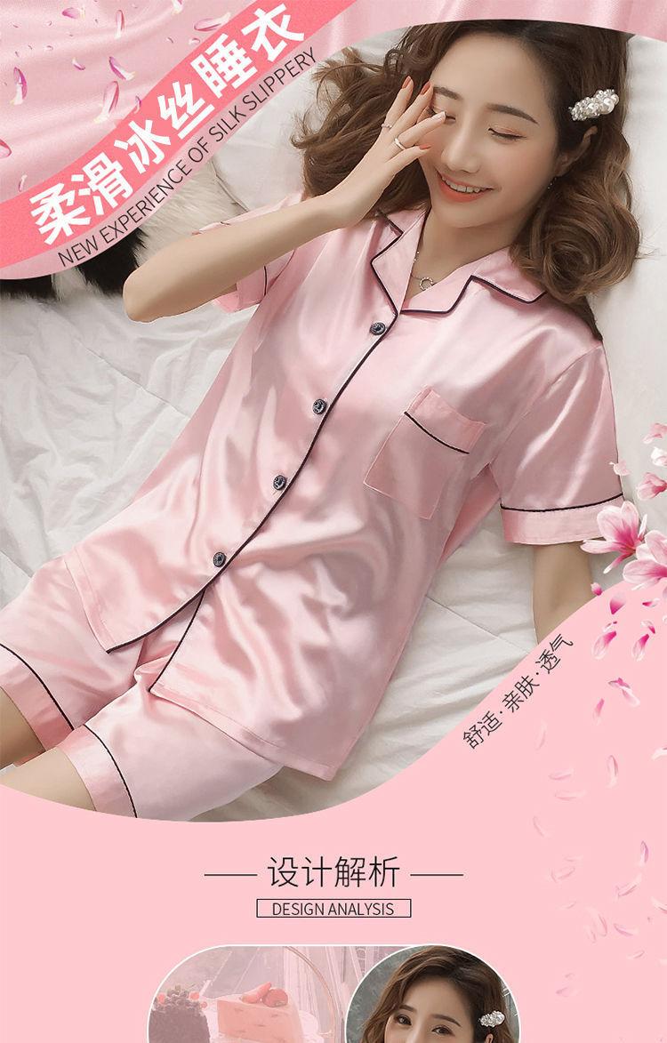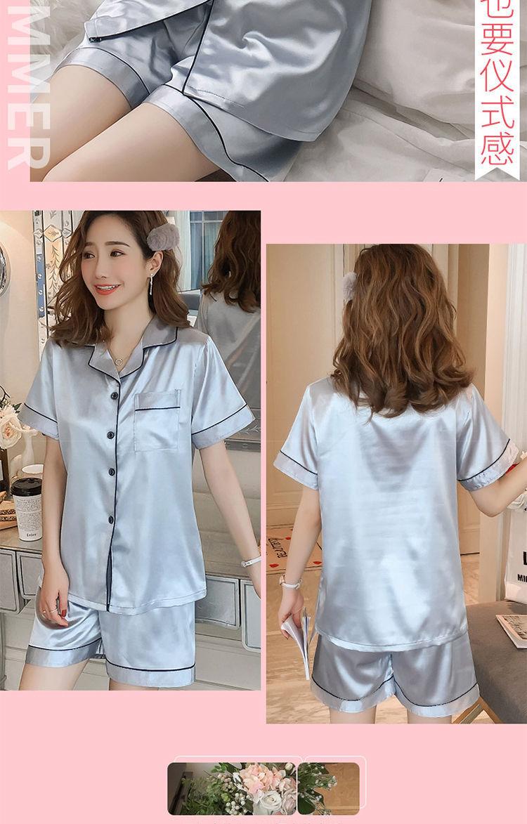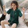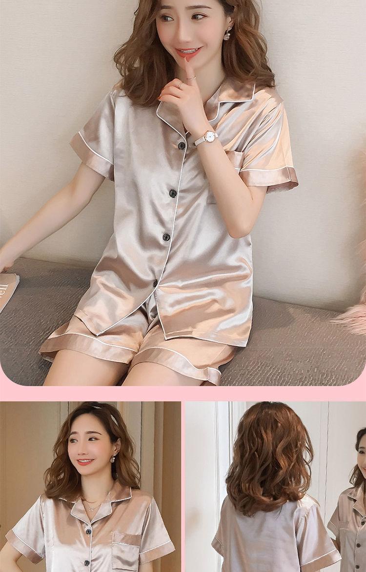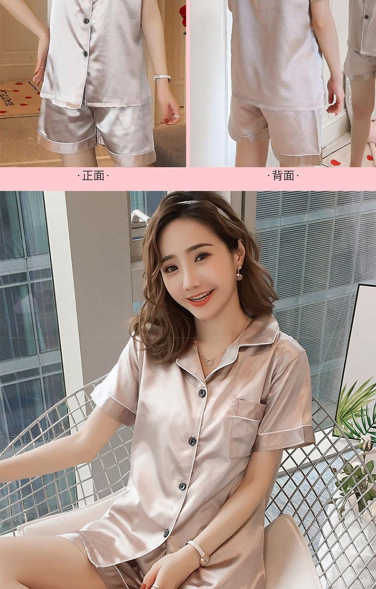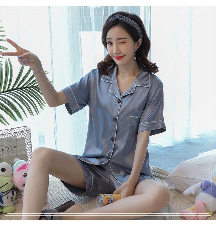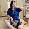 Pijama de verano para mujer, de seda de hielo, fino, de manga corta, con pantalones cortos, cárdigan de seda, ropa de abrigo sexy, conjunto de ropa para el hogar