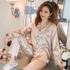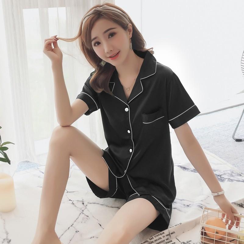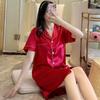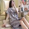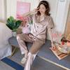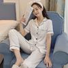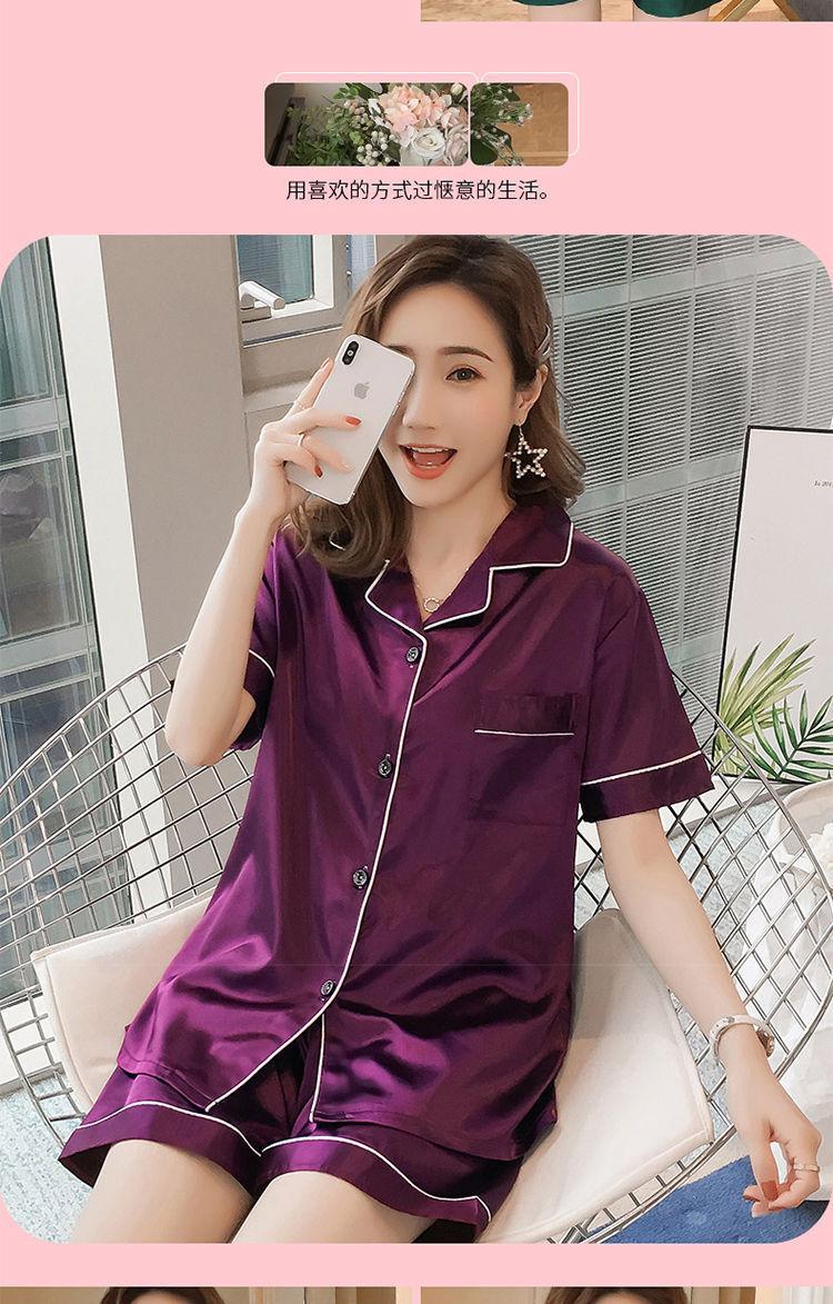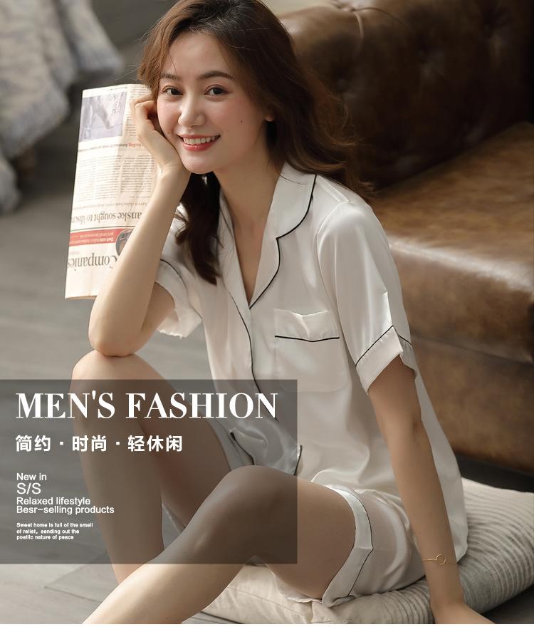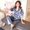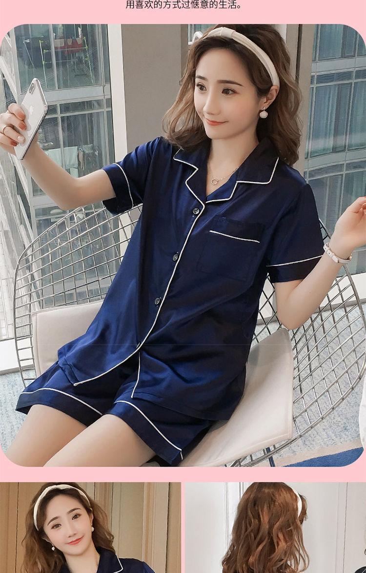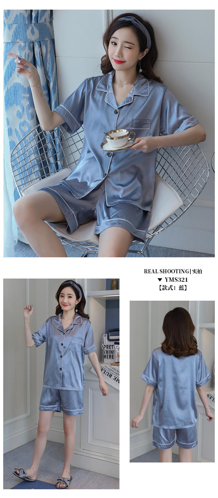 Pijama de verano para mujer, de seda de hielo, fino, de manga corta, con pantalones cortos, cárdigan de seda, ropa de abrigo sexy, conjunto de ropa para el hogar