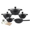 Set de Ollas Antiadherentes Osfe Aluminio Florencia con Sartén, Set Universal de 15 Piezas para Cocinar, Olla para Sopa, Recubrimiento de Mármol