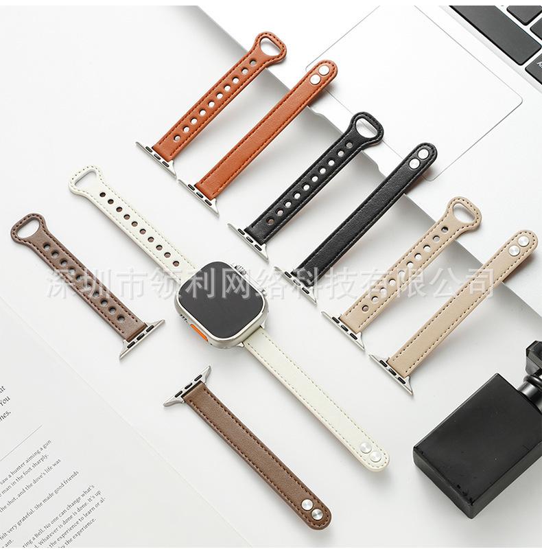Adecuado para Apple Watch Cuero de Primera Capa Correa para Reloj Inteligente iWatch Doble Hebilla Cuero Genuino Estilo Moda