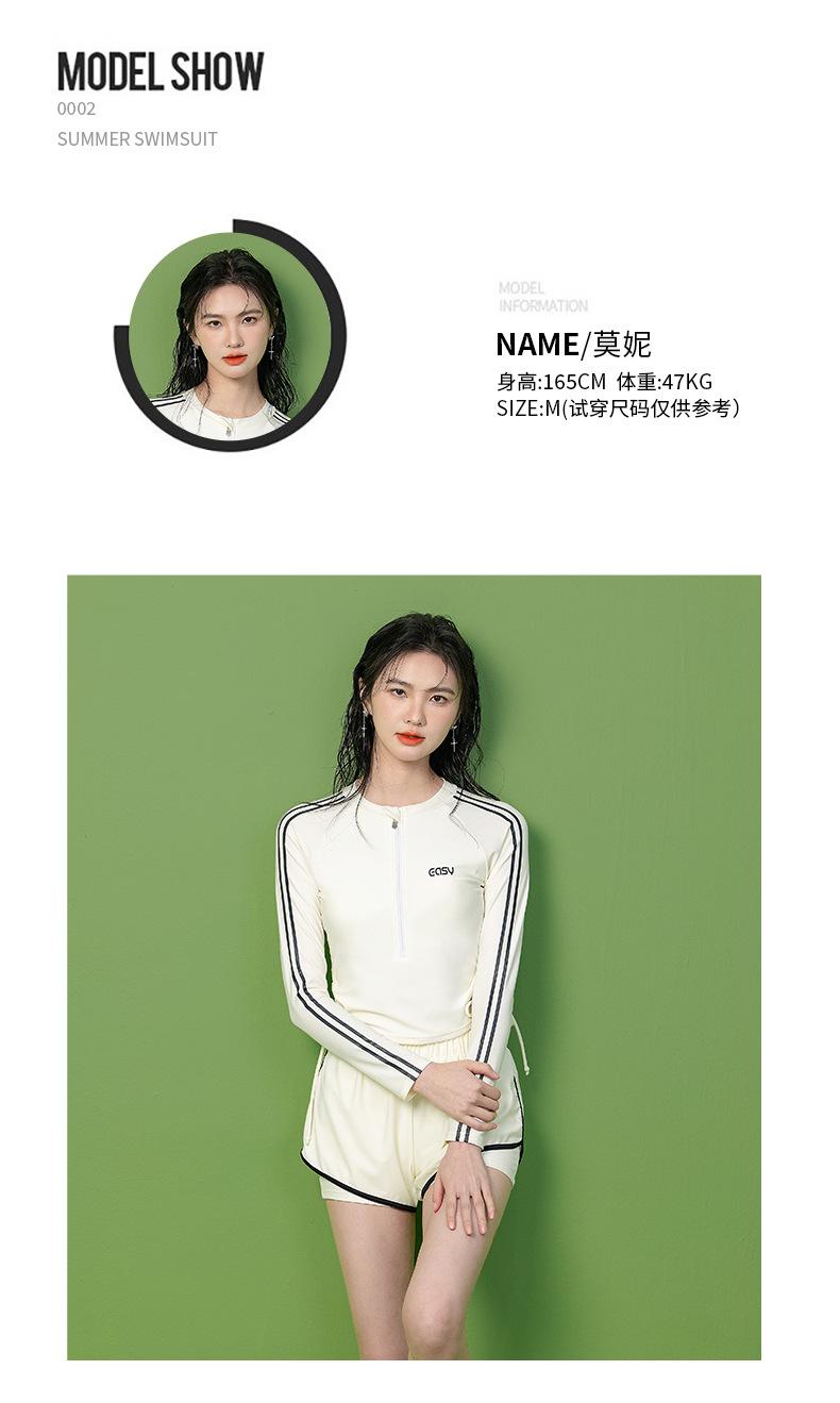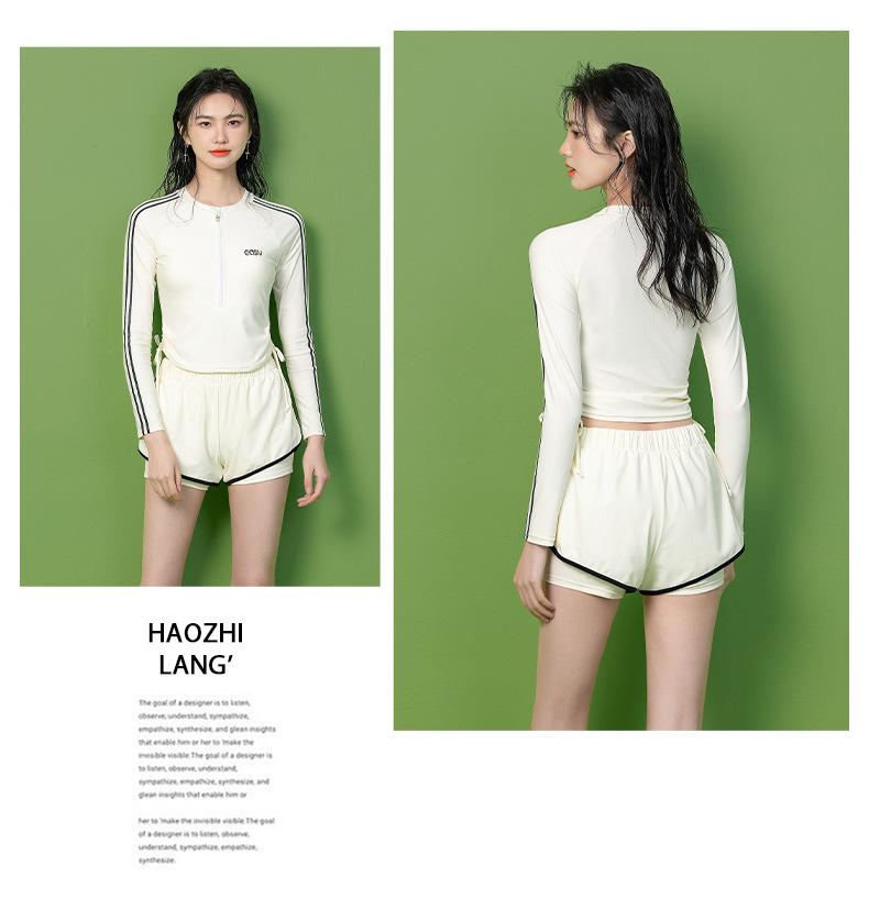 [Haozhilang] Traje de baño de manga larga con abertura para mujer de talla grande, Traje de baño profesional de entrenamiento para mujer, Traje de baño de manga corta