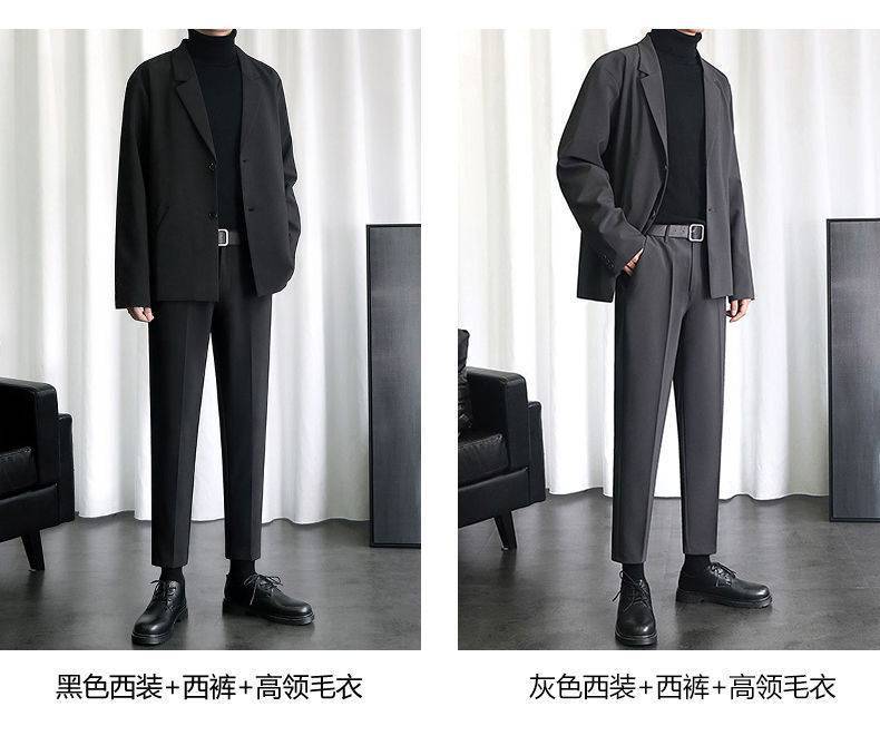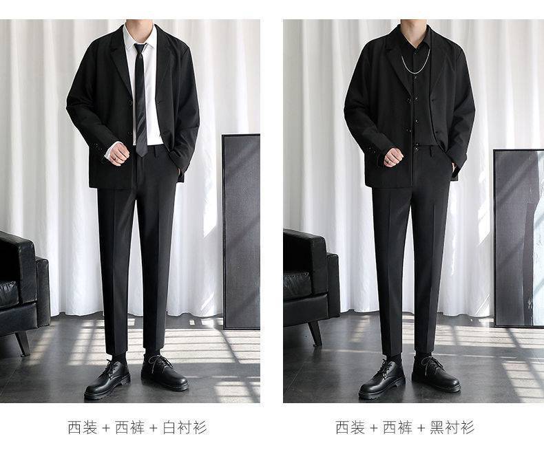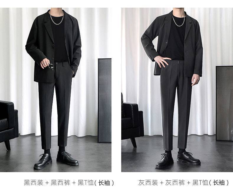 Traje casual de verano delgado conjunto completo para hombre traje entallado de corte bajo pantalones rectos chaqueta de traje pequeña suelta moderna