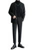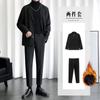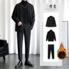 Three pieces: fleece-lined black suit pants + turtleneck sweater + black suit