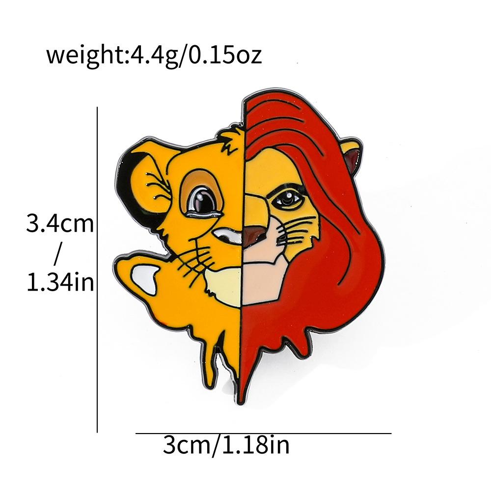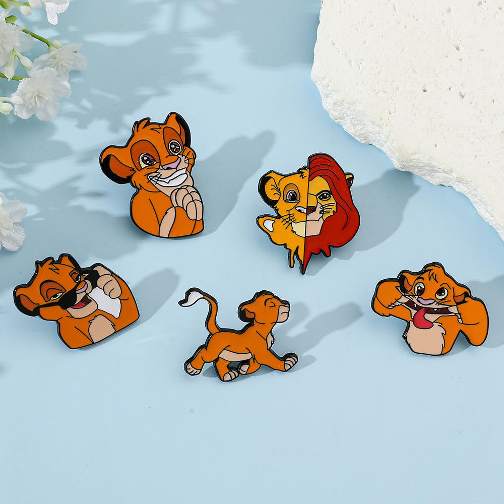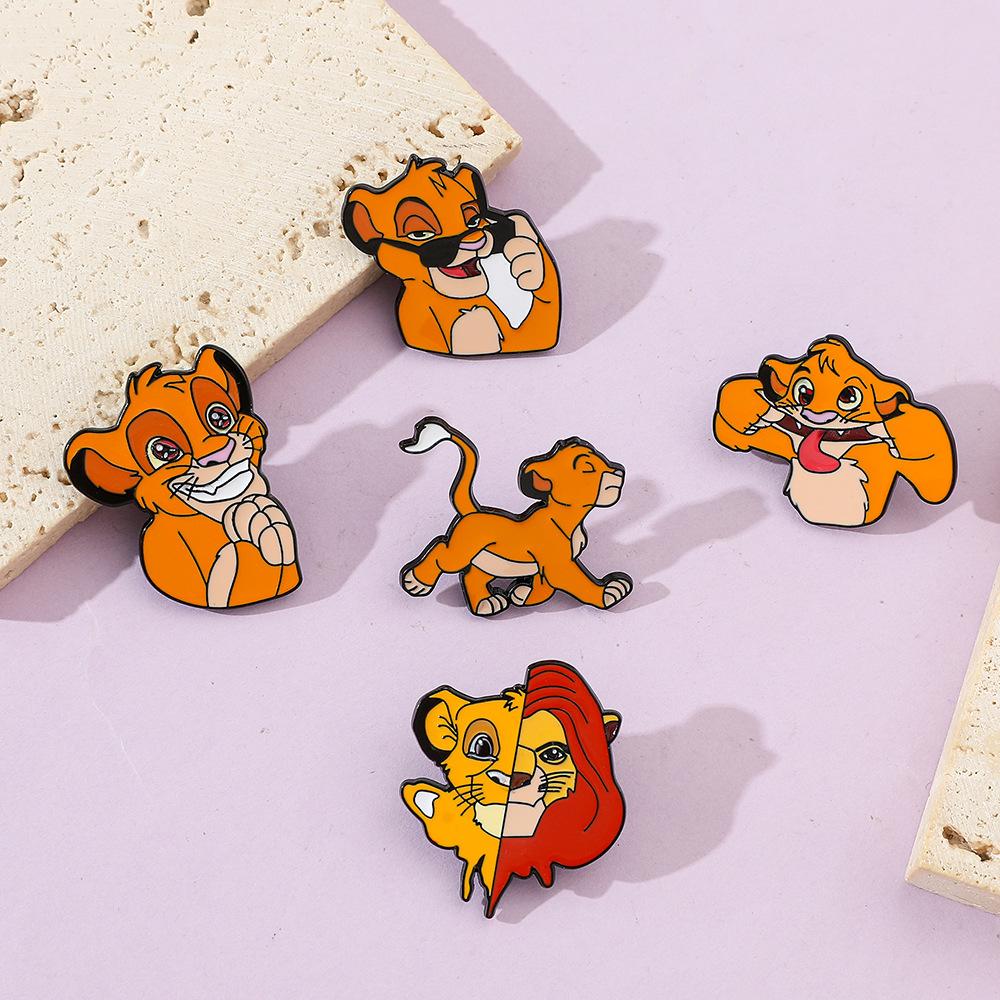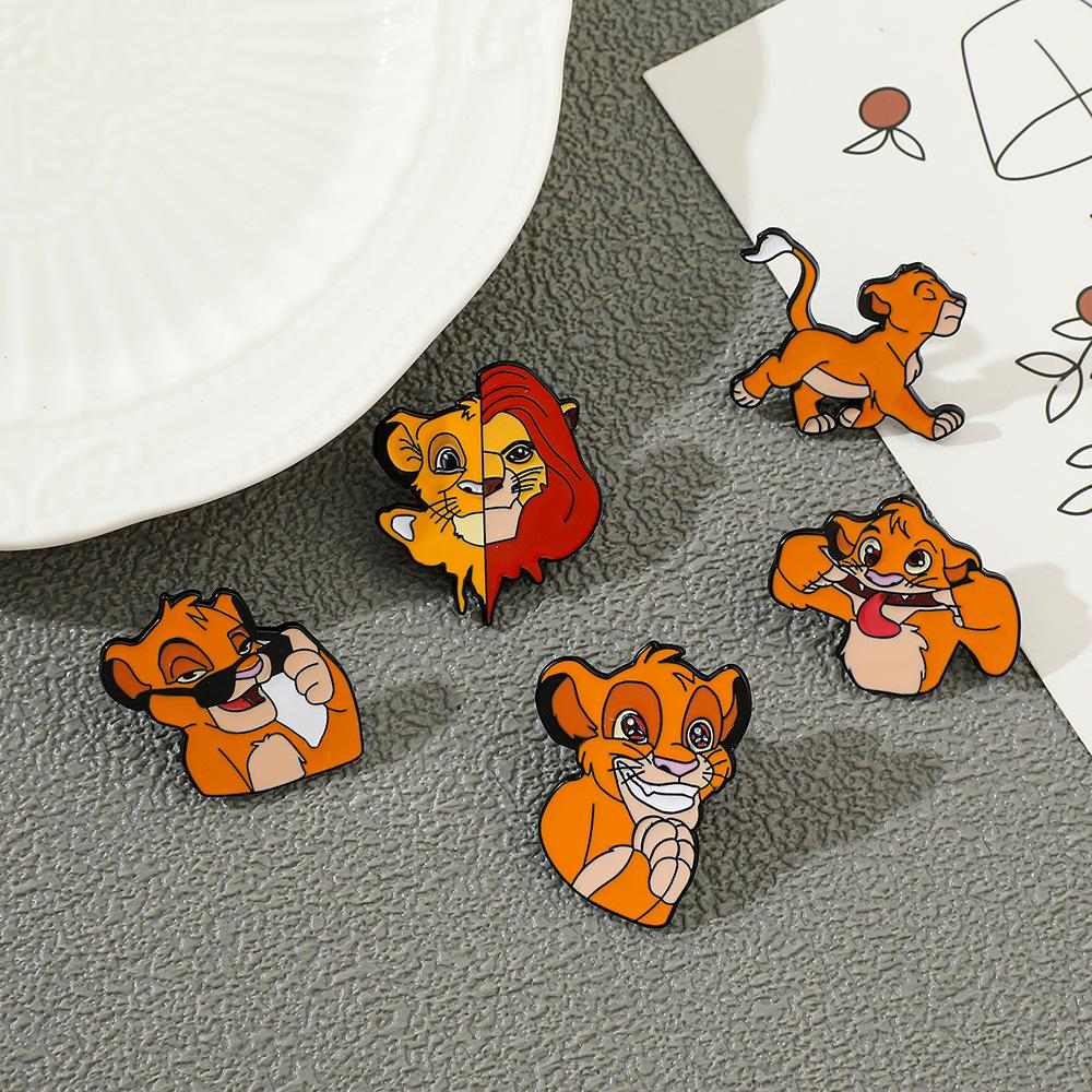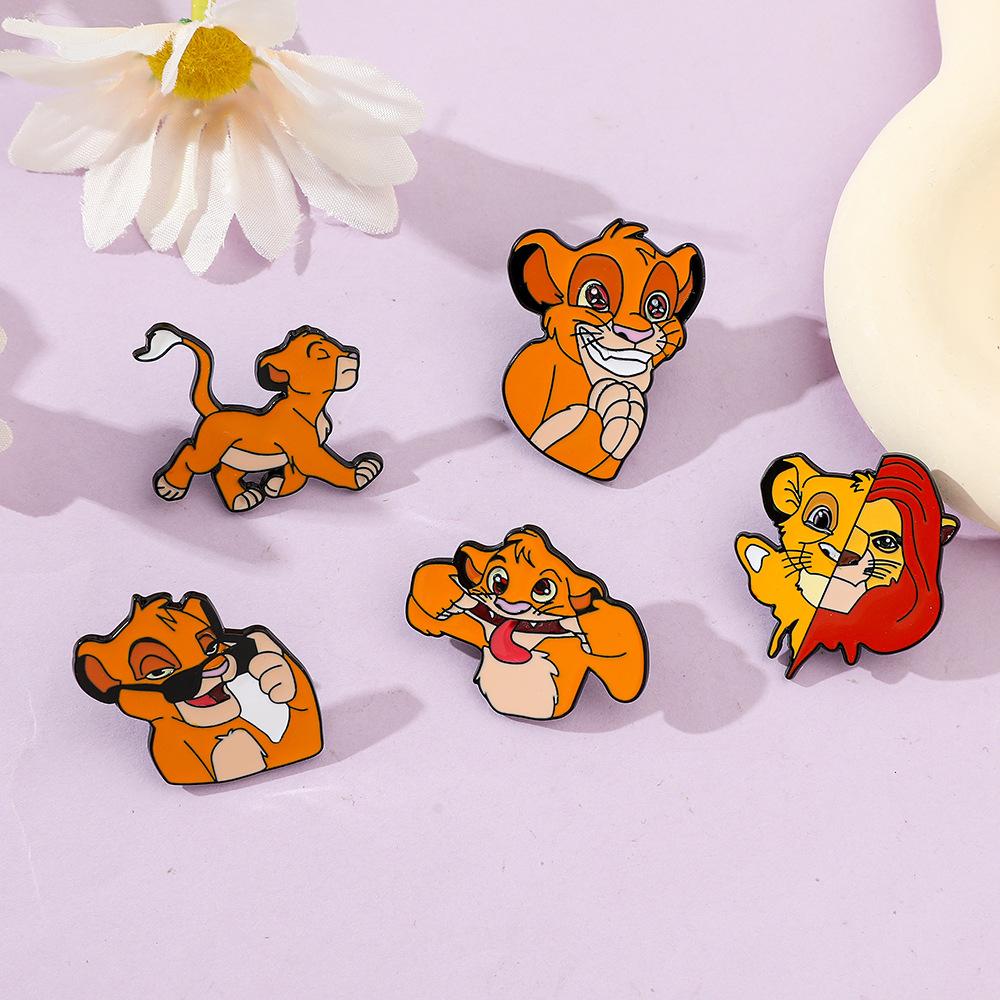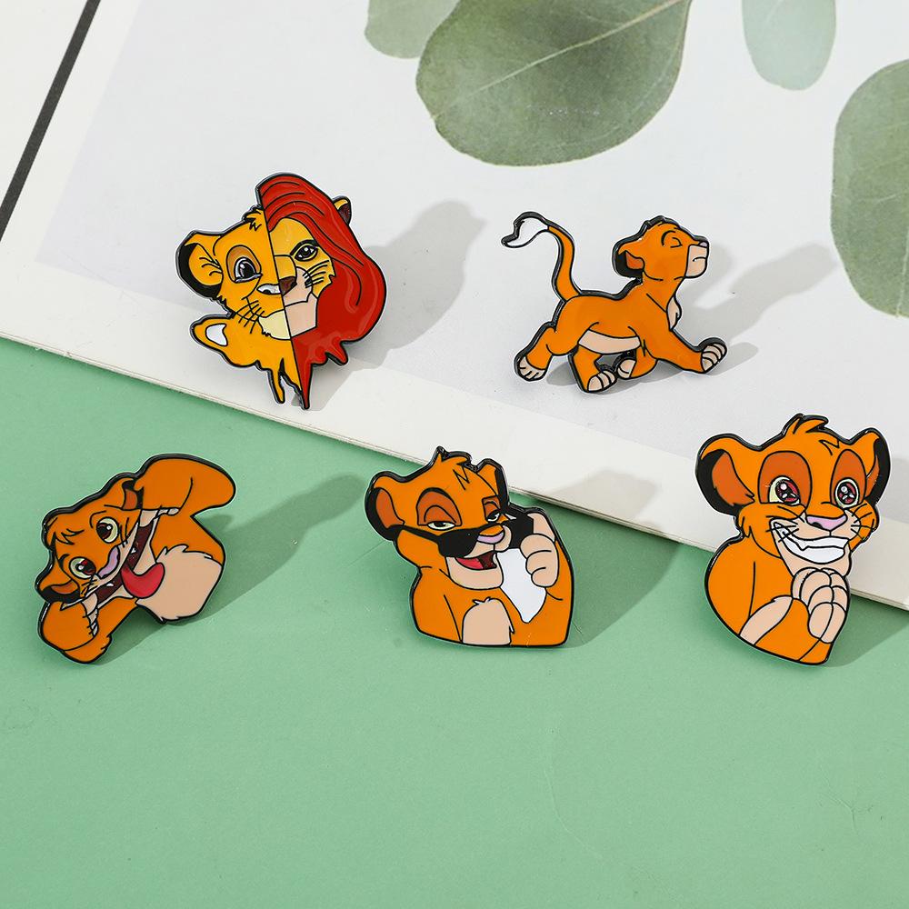 Broche de aleación con forma de gota de aceite y diseño creativo de dibujos animados europeos y americanos del Rey León, insignia de metal, León Simba