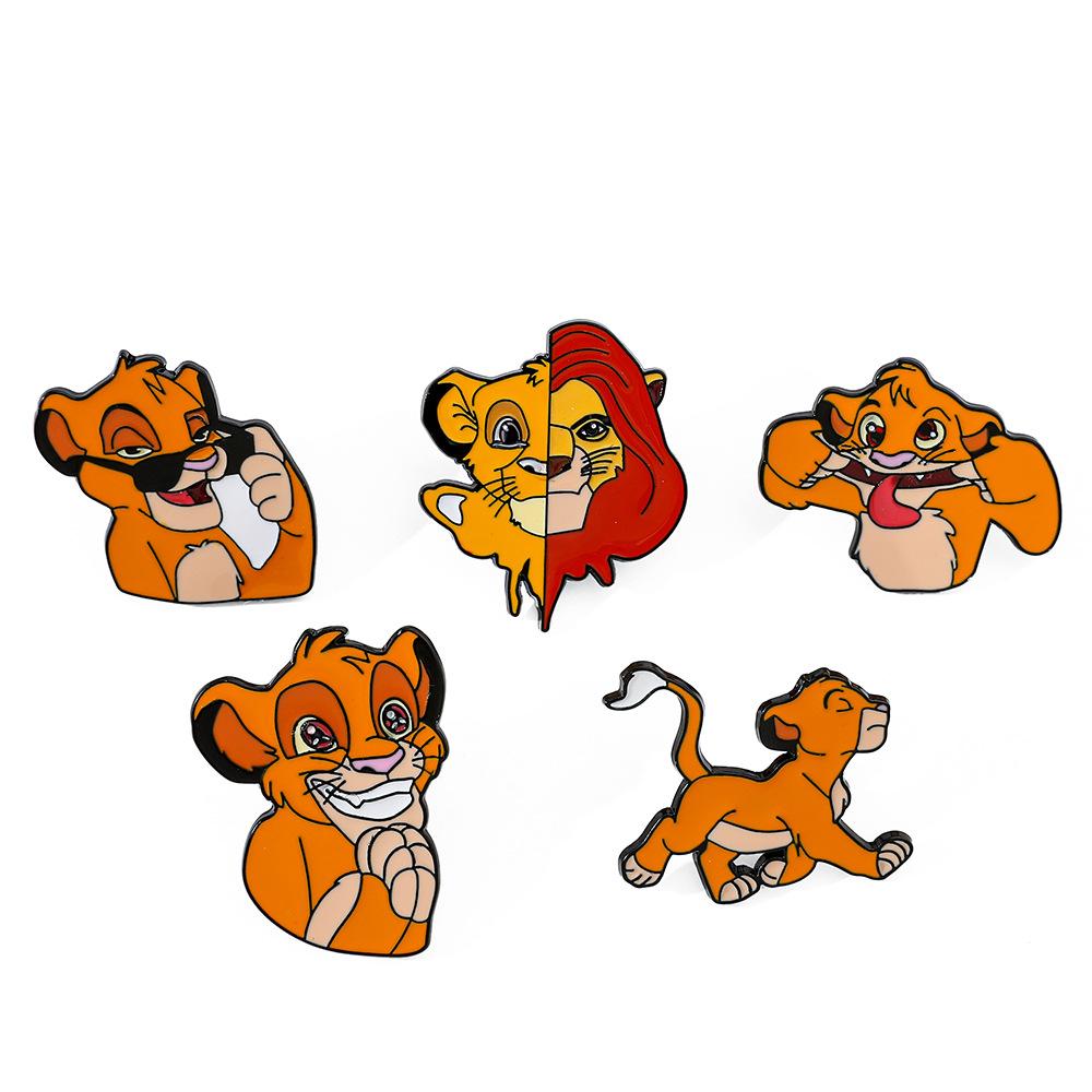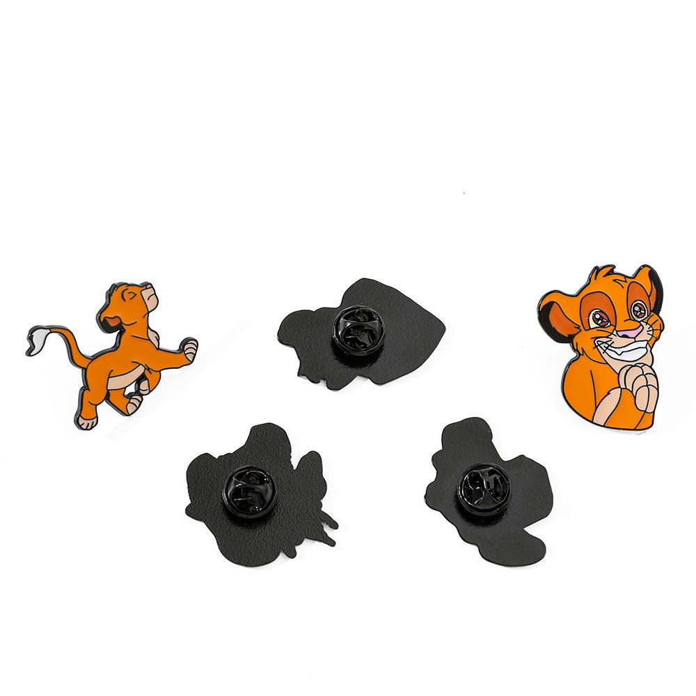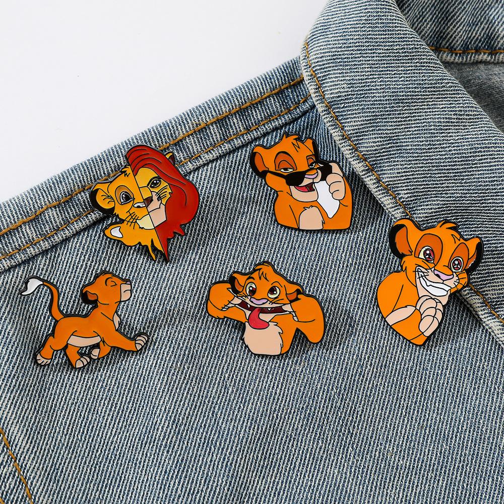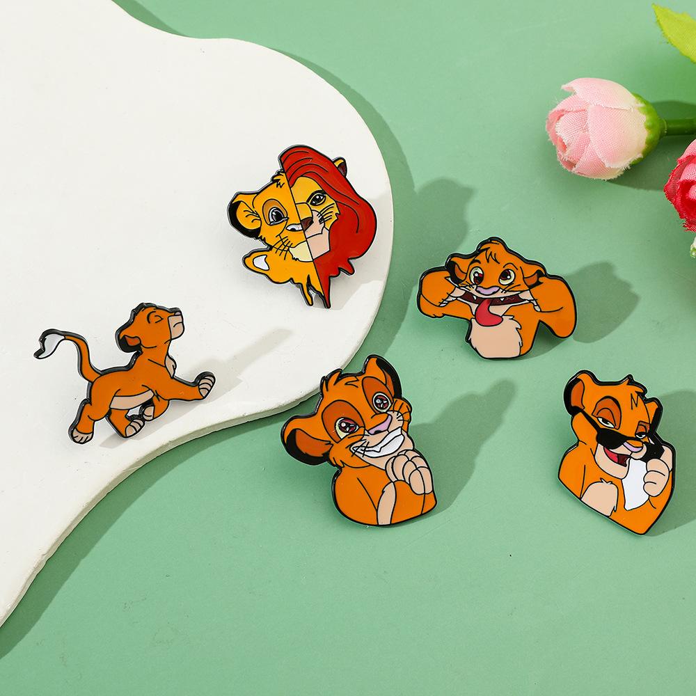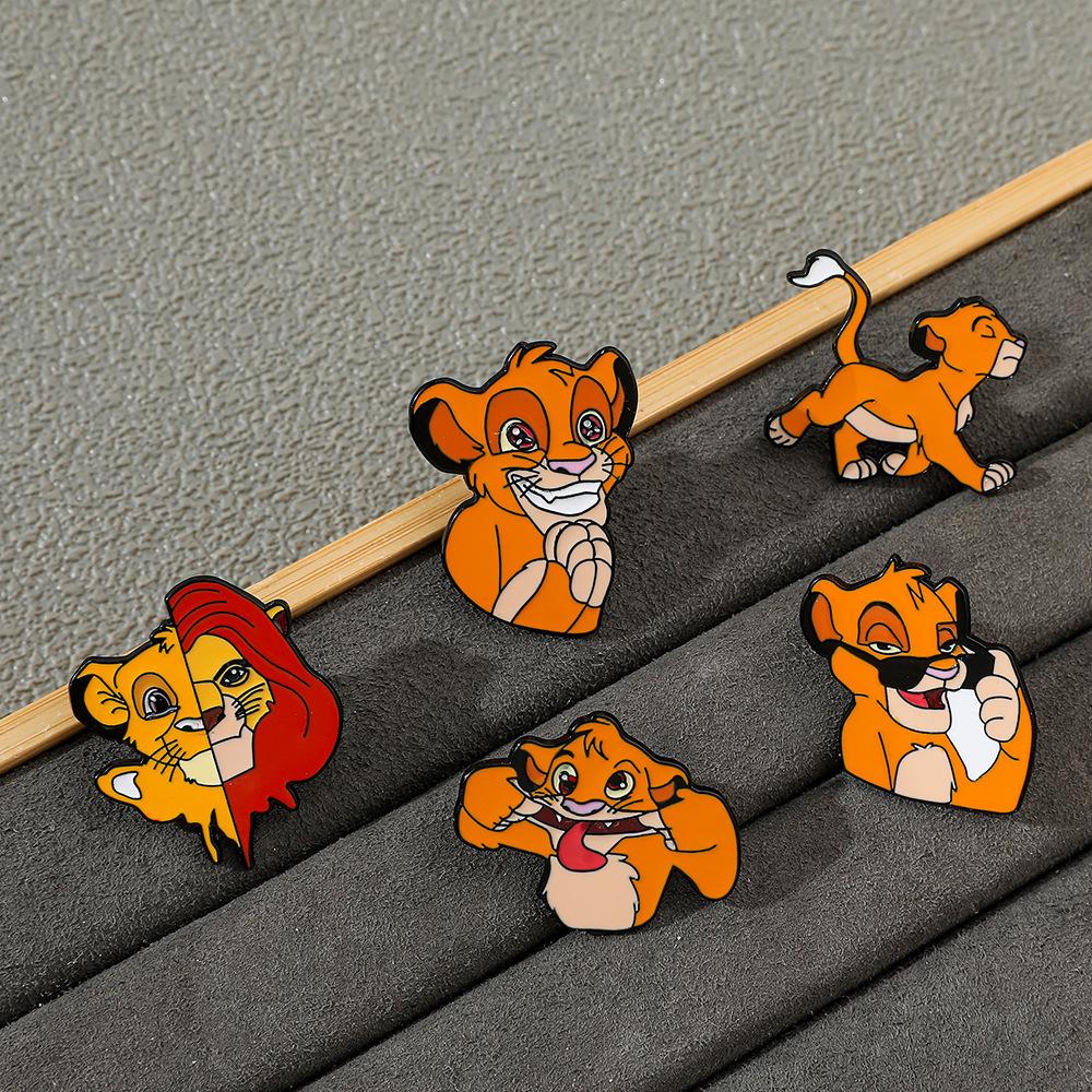 Broche de aleación con forma de gota de aceite y diseño creativo de dibujos animados europeos y americanos del Rey León, insignia de metal, León Simba