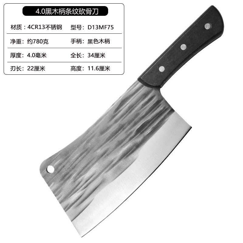 4.0 thickened black wooden handle sand wave pattern large bone cutter 780g