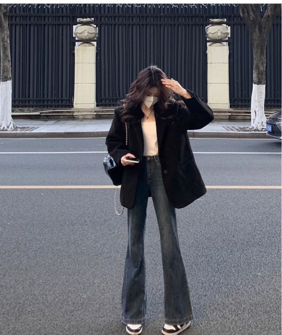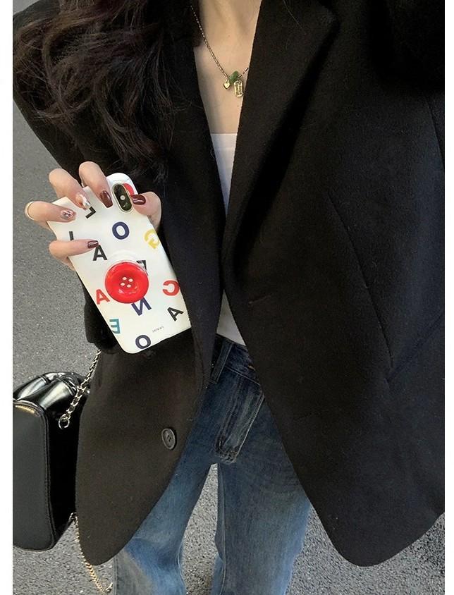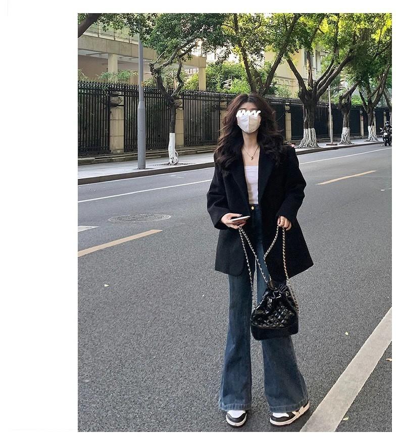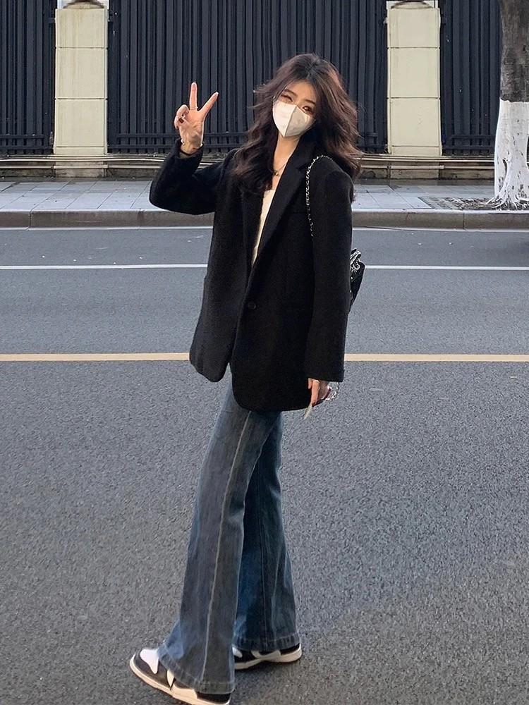 Otoño Estilo Coreano Holgado Adelgazante Look Casual Versátil Diseño Elegante Traje Negro Pequeño Chaqueta Traje de Mujer Profesional Occidental