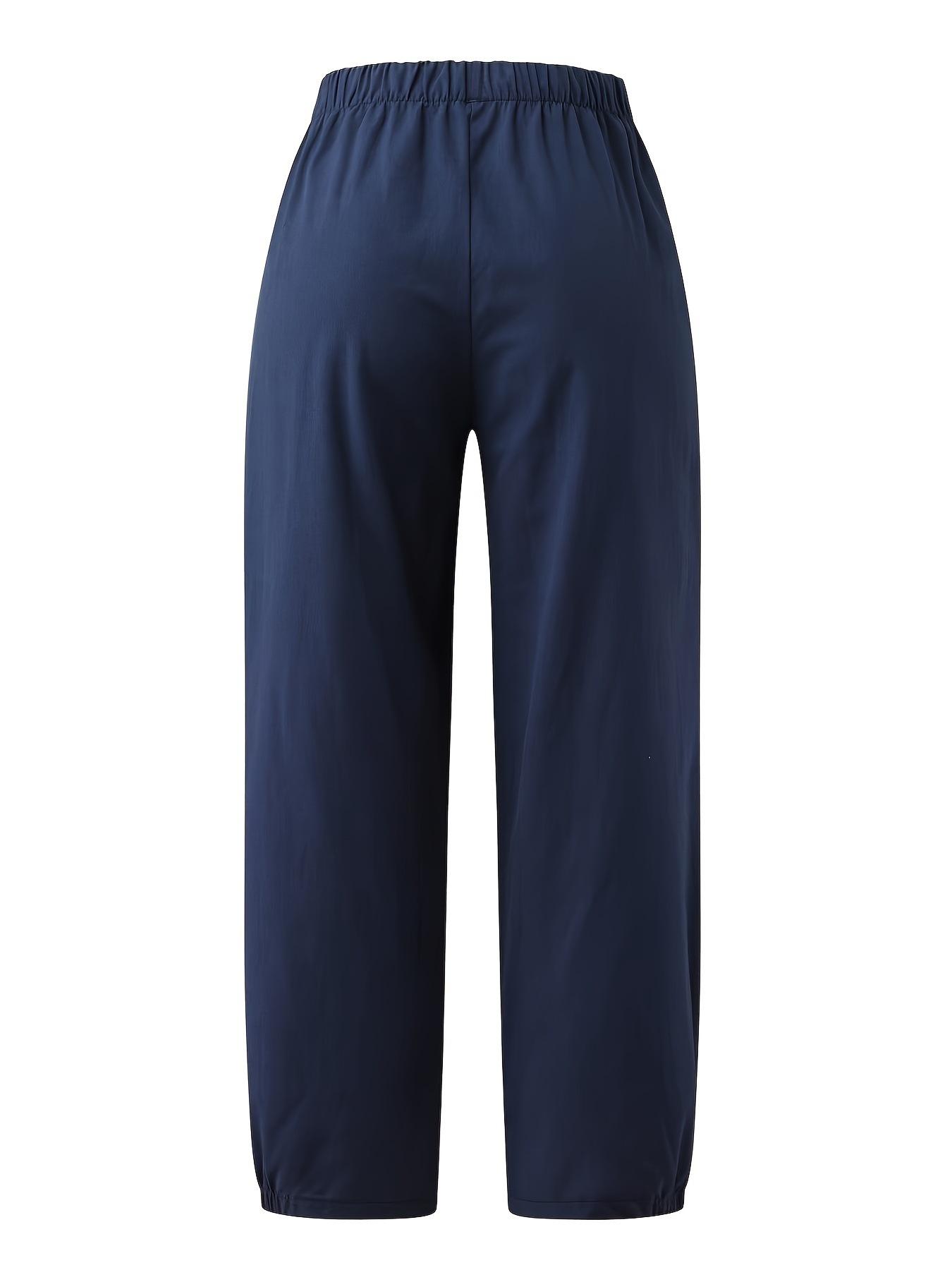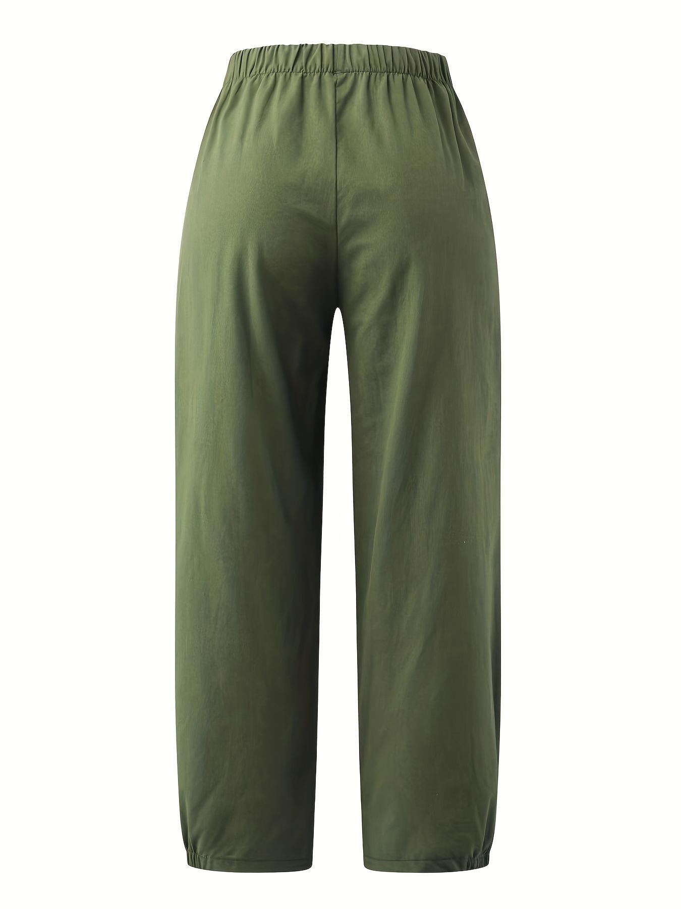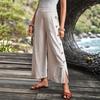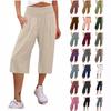 2025 Nuevo Europeo y Americano Amazon Algodón y Lino Verano Pantalones Nueve Puntos con Bolsillos Pantalones Casuales Pantalones de Pierna Ancha Sueltos para Mujer