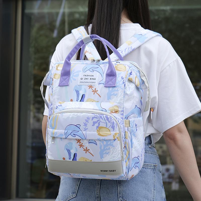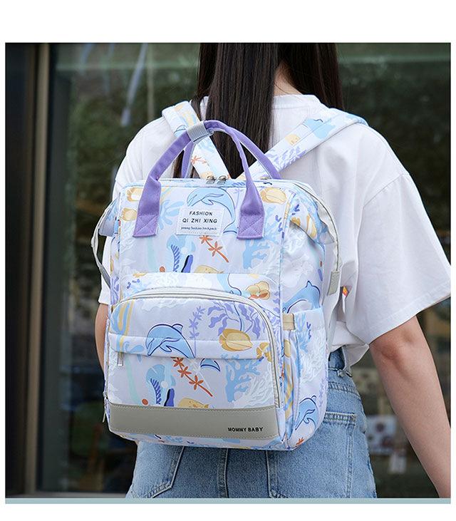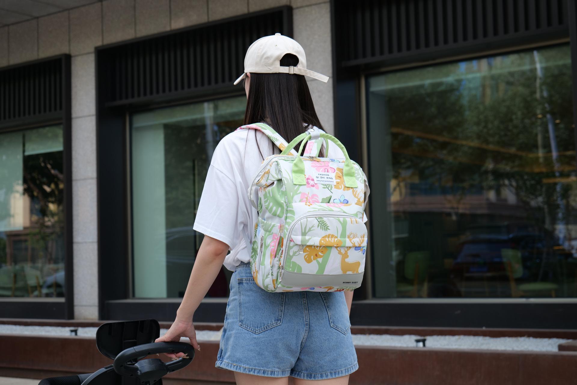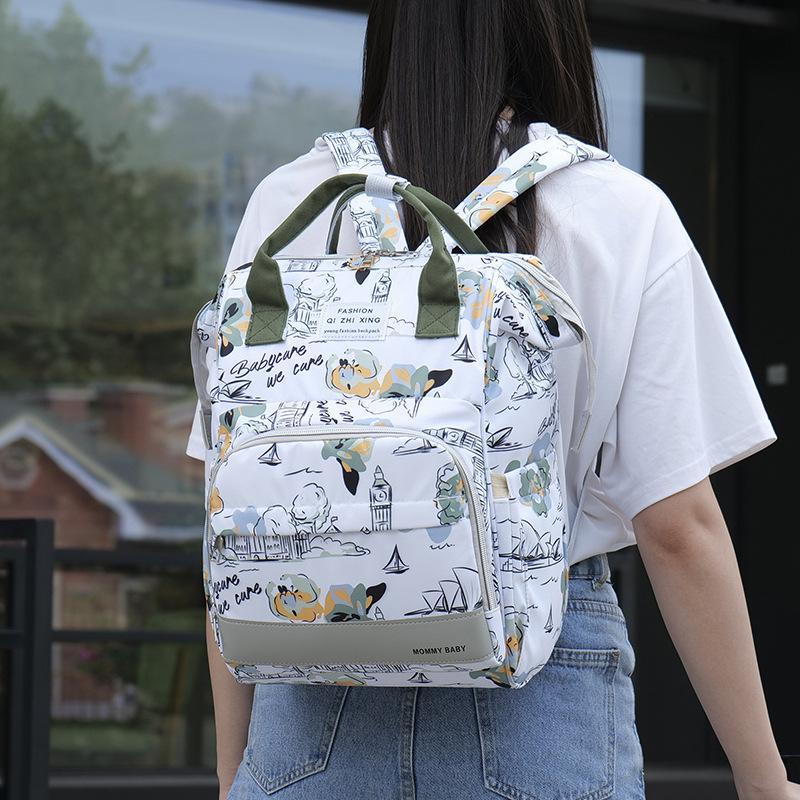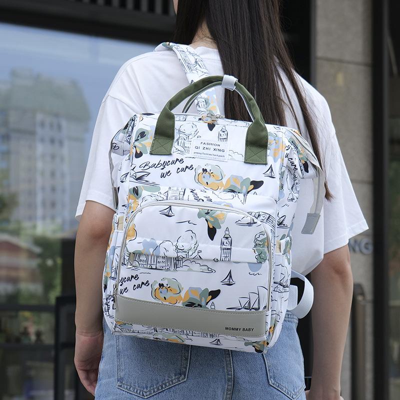 Nueva moda impresa bolsa de mamá de gran capacidad pequeña fresca portátil multifuncional bolsa de almacenamiento para madre y bebé