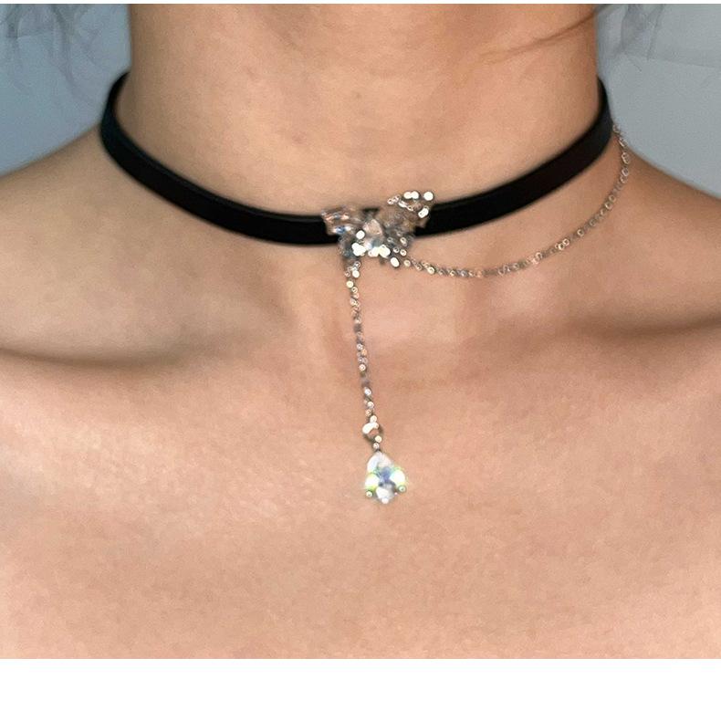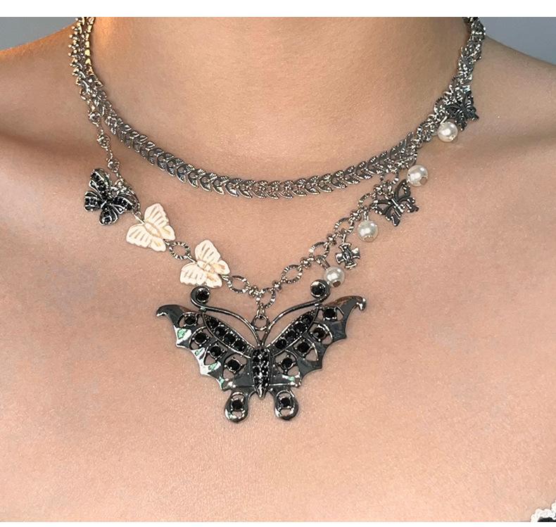 Black beaded butterfly necklace DX0334, Tassel cross pendant crystal chain necklace DX0322, Black tassel neckl...