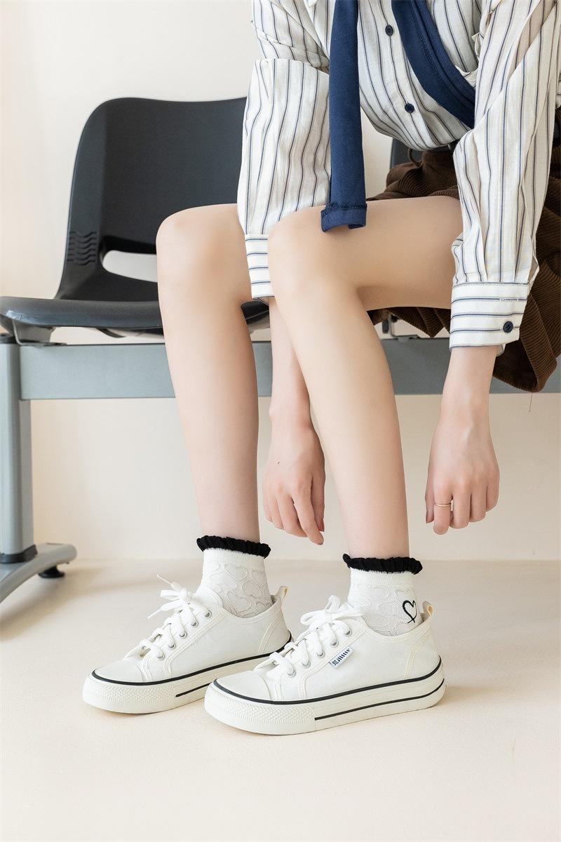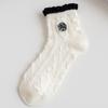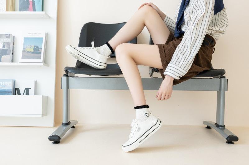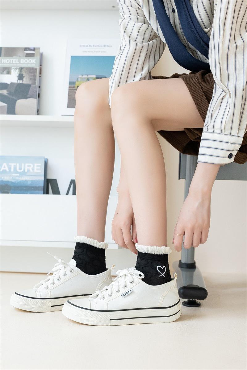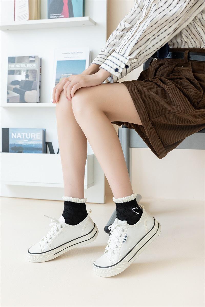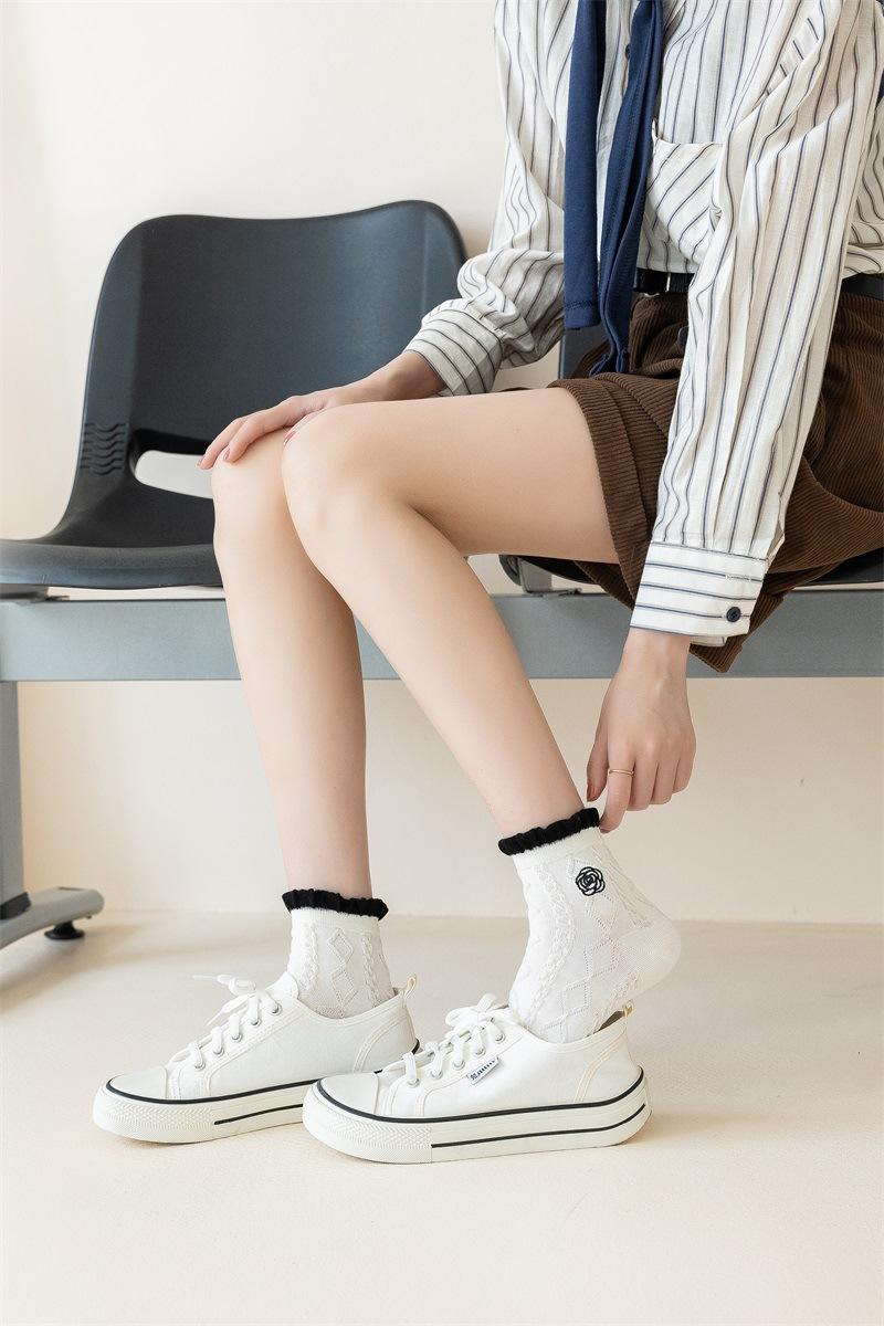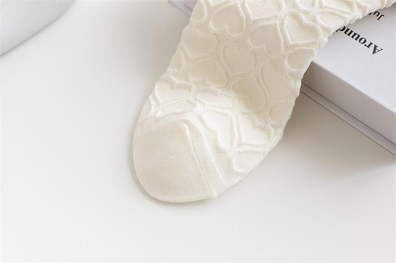 Calcetines blancos y negros para mujer, calcetines cortos, exquisitos calcetines bordados con amor dulce, calcetines de algodón con encaje para estudiantes japoneses de primavera y verano.