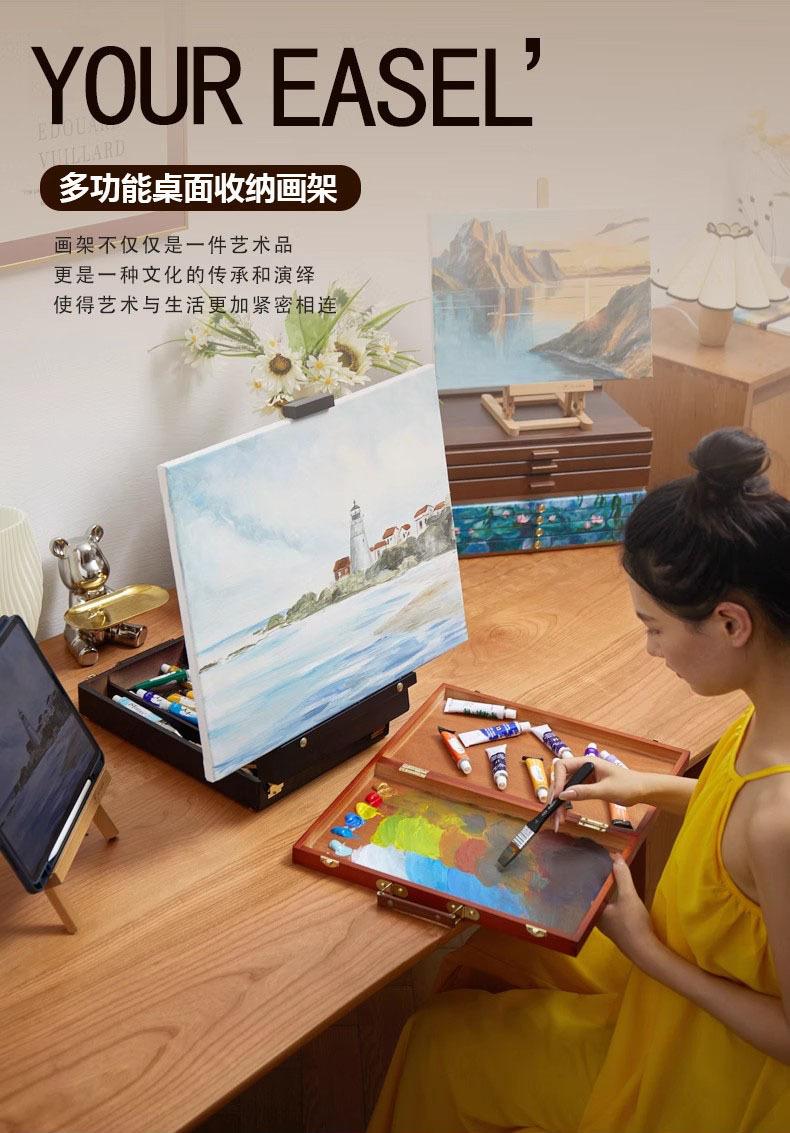 Portable beech wood table painting box, Black walnut table painting box, Red walnut table painting box