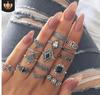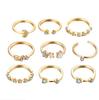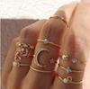 Anillo de Media Luna Estrella transfronterizo europeo y americano, juego de 9 piezas, personalidad creativa, simple, retro, aleación simple, anillo de articulación