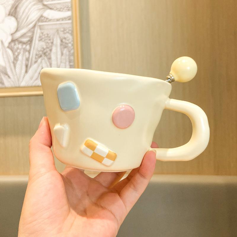 Geometric hand pinch Cup-Yellow + ball spoon (powder gift box)
