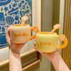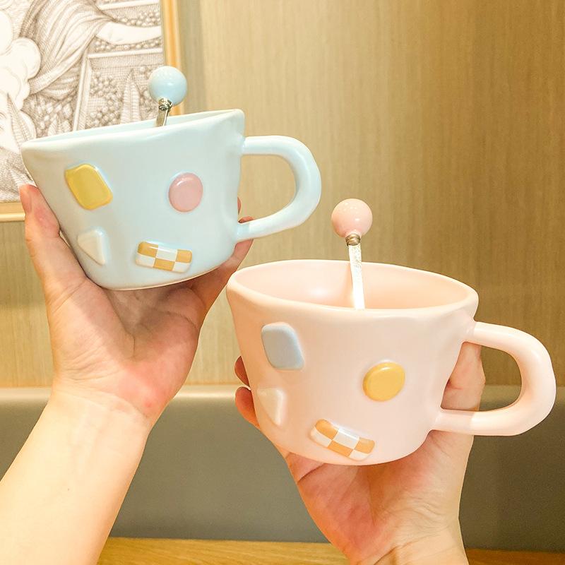 Taza de cerámica con forma de fufu de leche, linda caricatura de niña, para oficina, con cuchara, para tomar café, leche y desayuno.