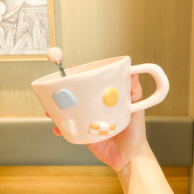 Geometric hand pinch Cup-pink + ball spoon (powder gift box)