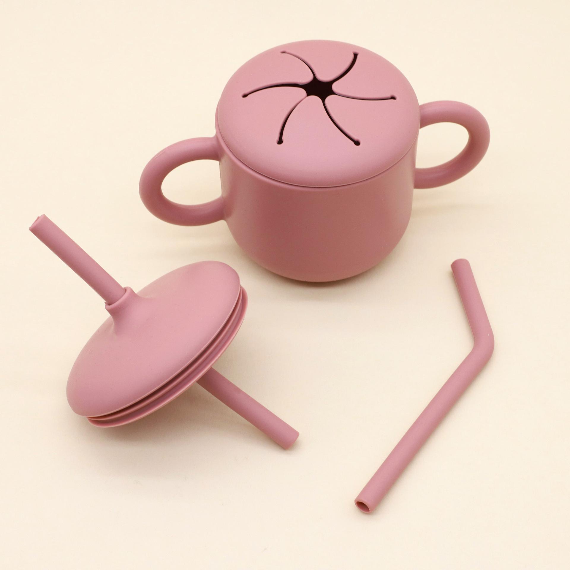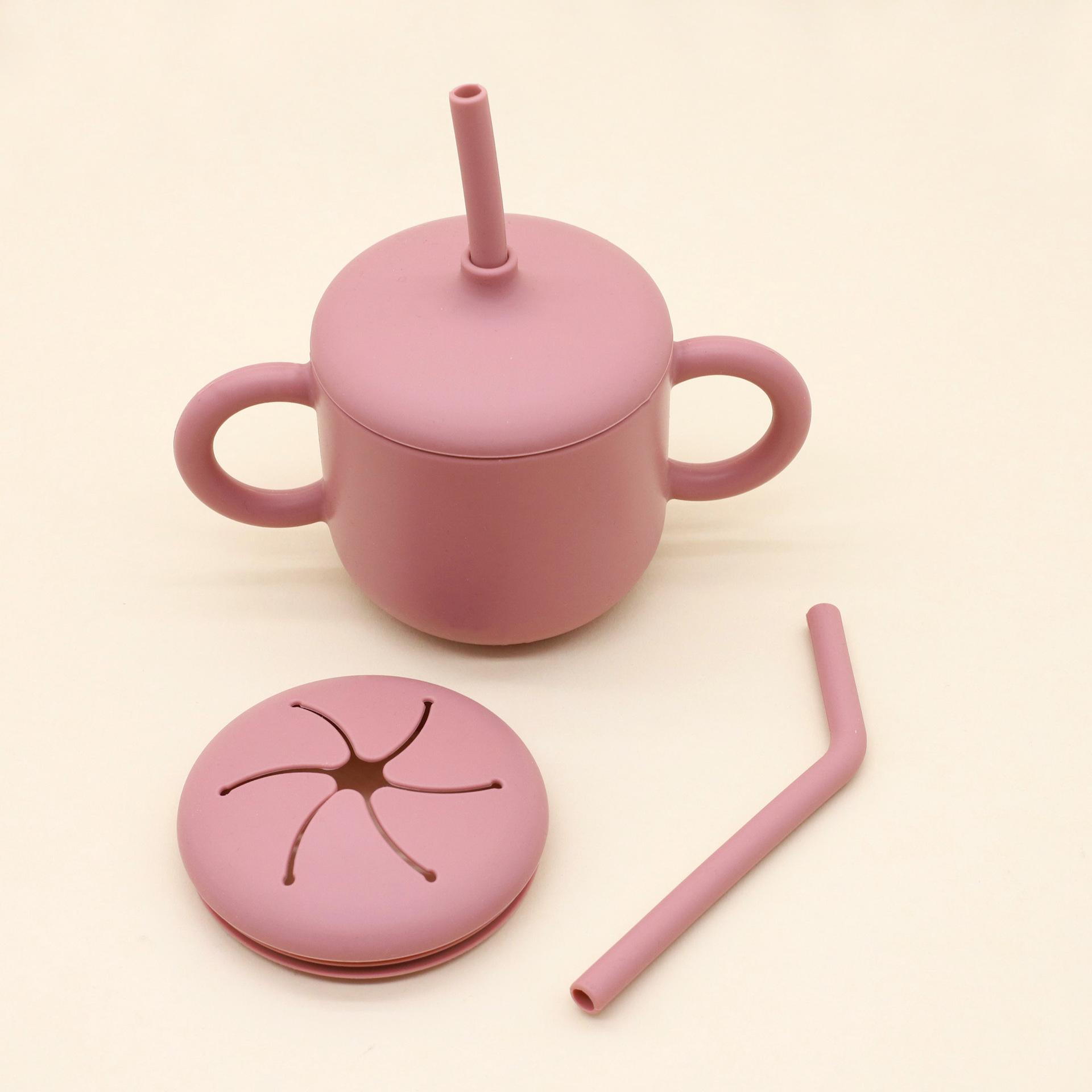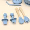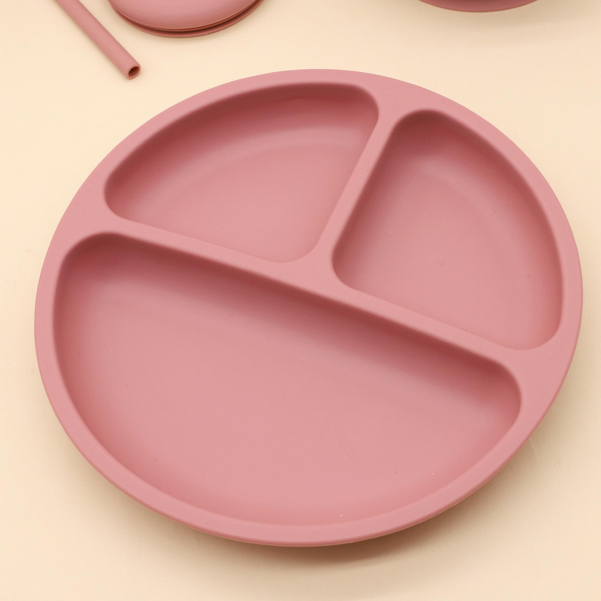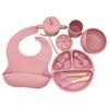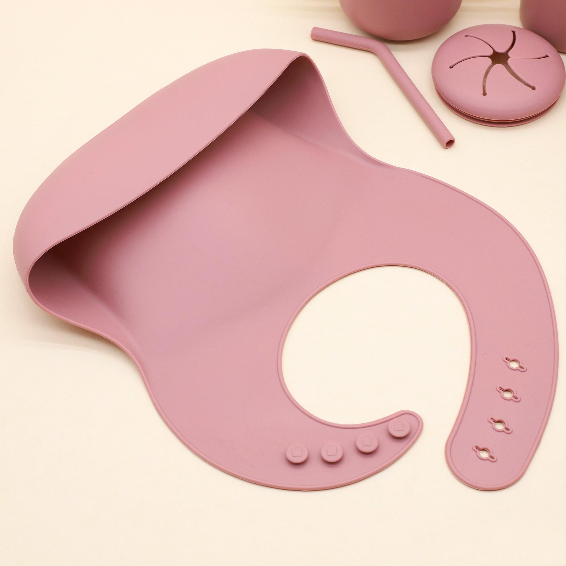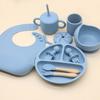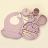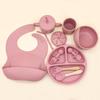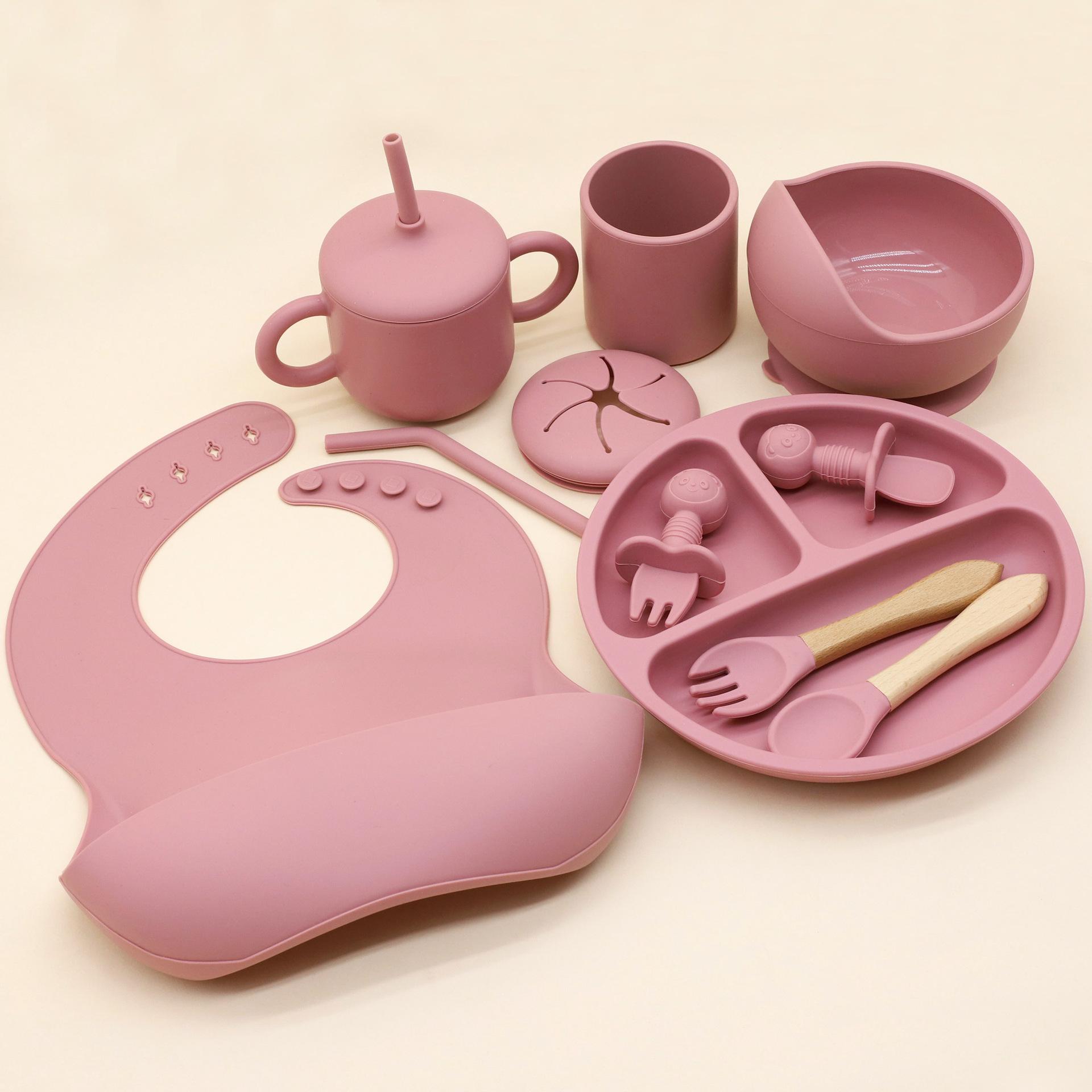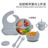 Vajilla de silicona para bebés transfronteriza, juego de babero, tazón, tubo de succión, taza, cuchara, tenedor, plato de cena de varias piezas, vajilla de alimentación complementaria.
