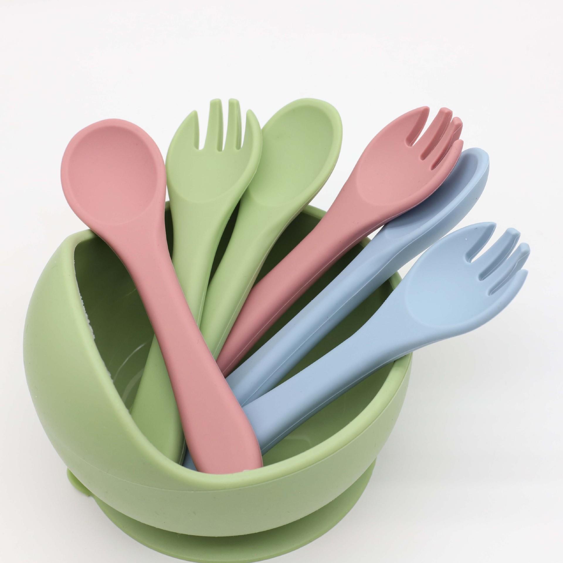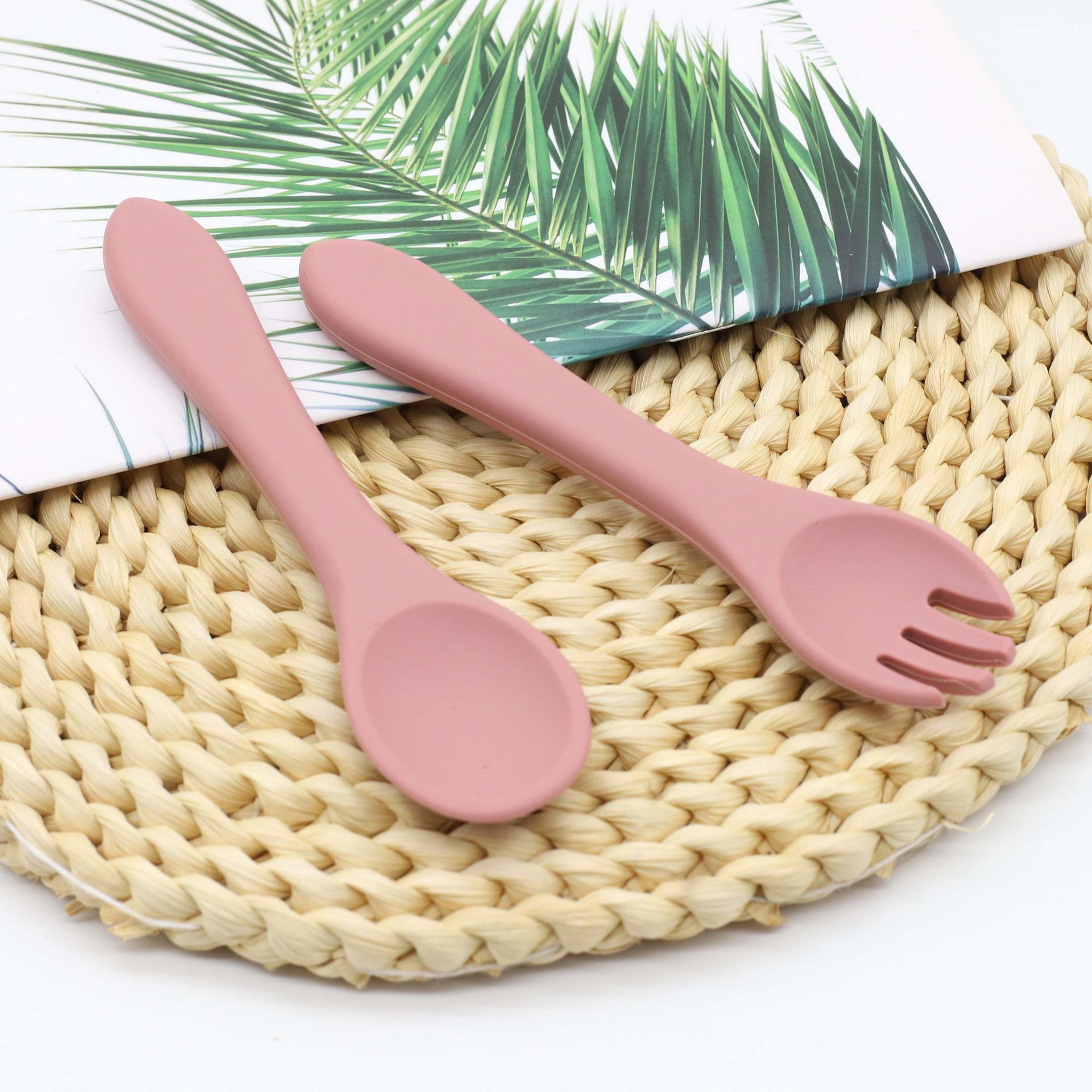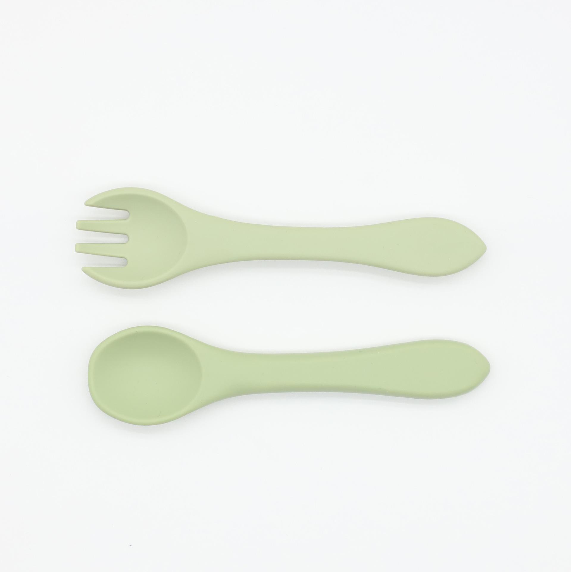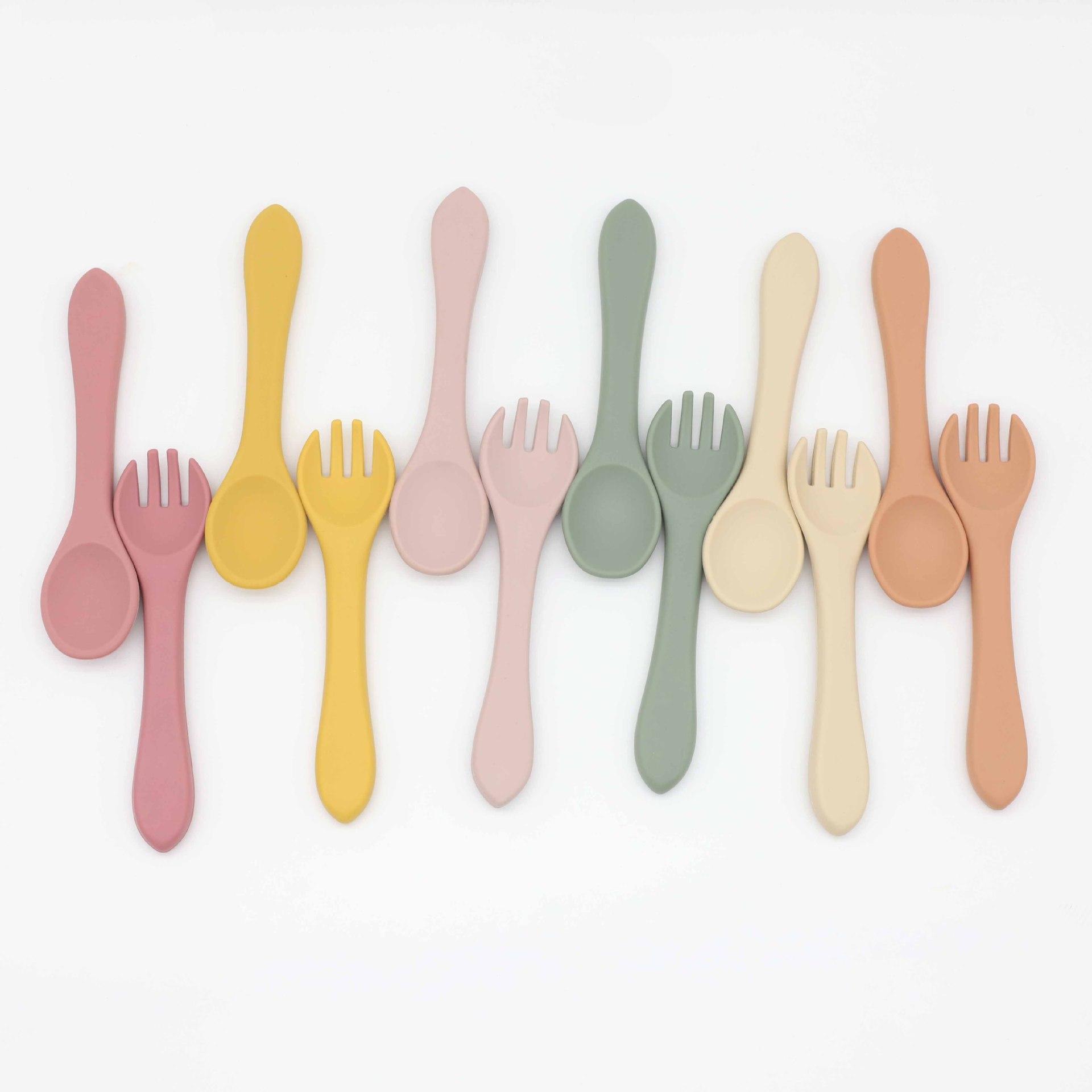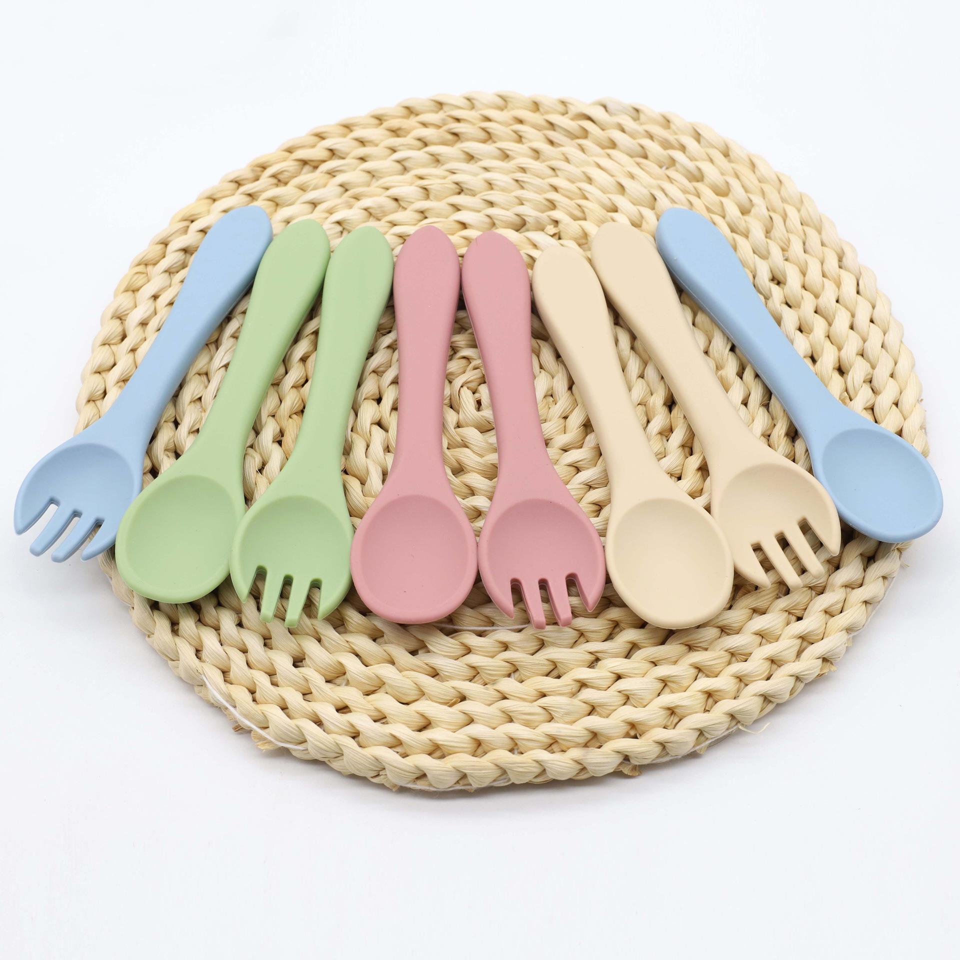 Cuchara tenedor de silicona de grado alimenticio para niños, vajilla con suplementos alimenticios, suministros para bebés