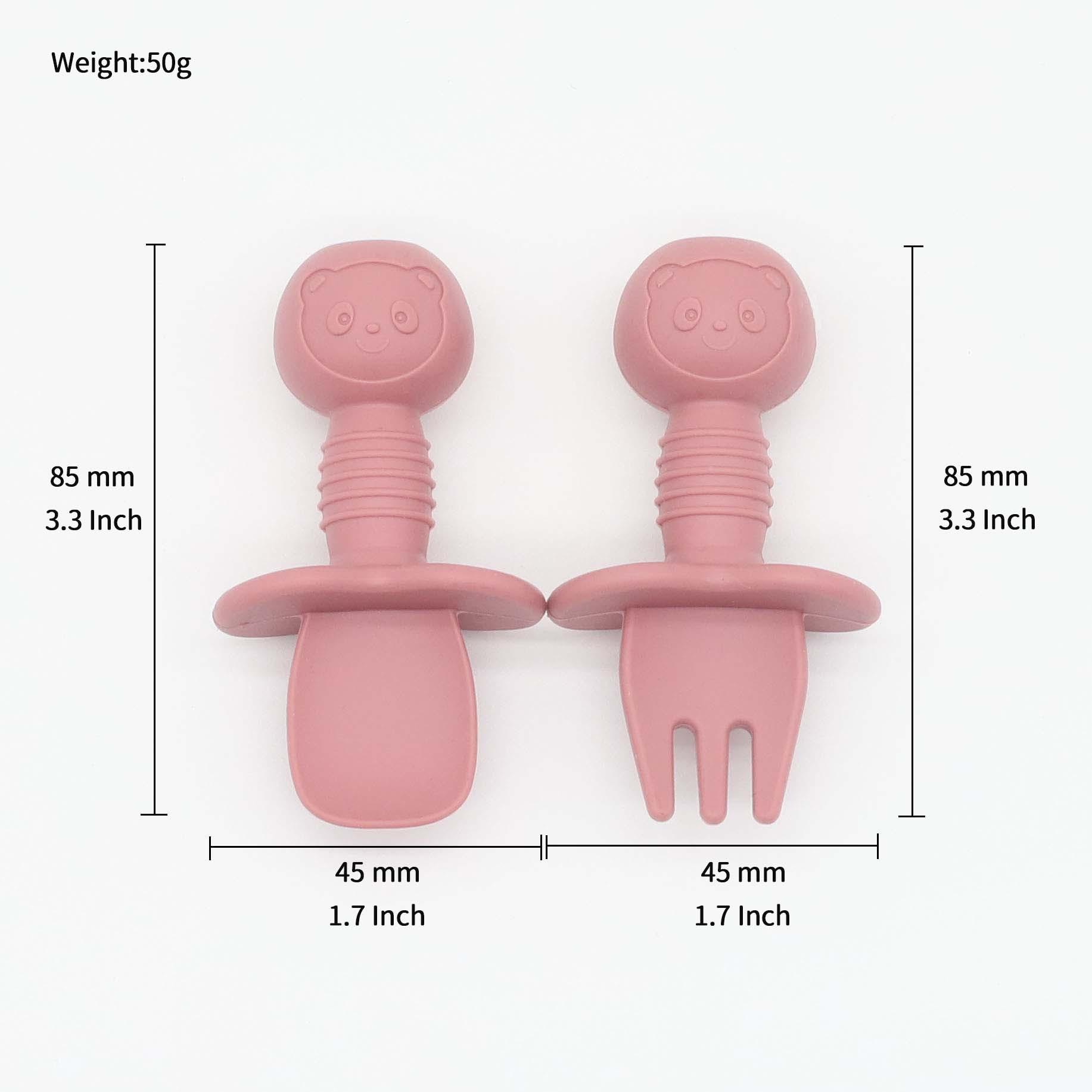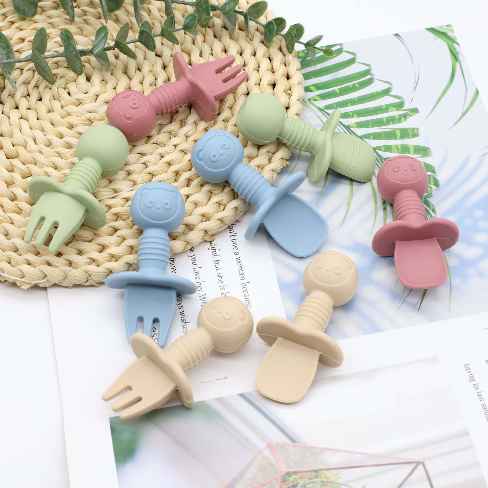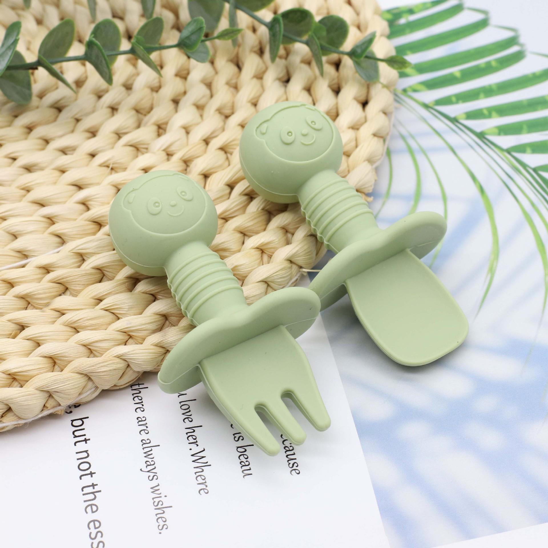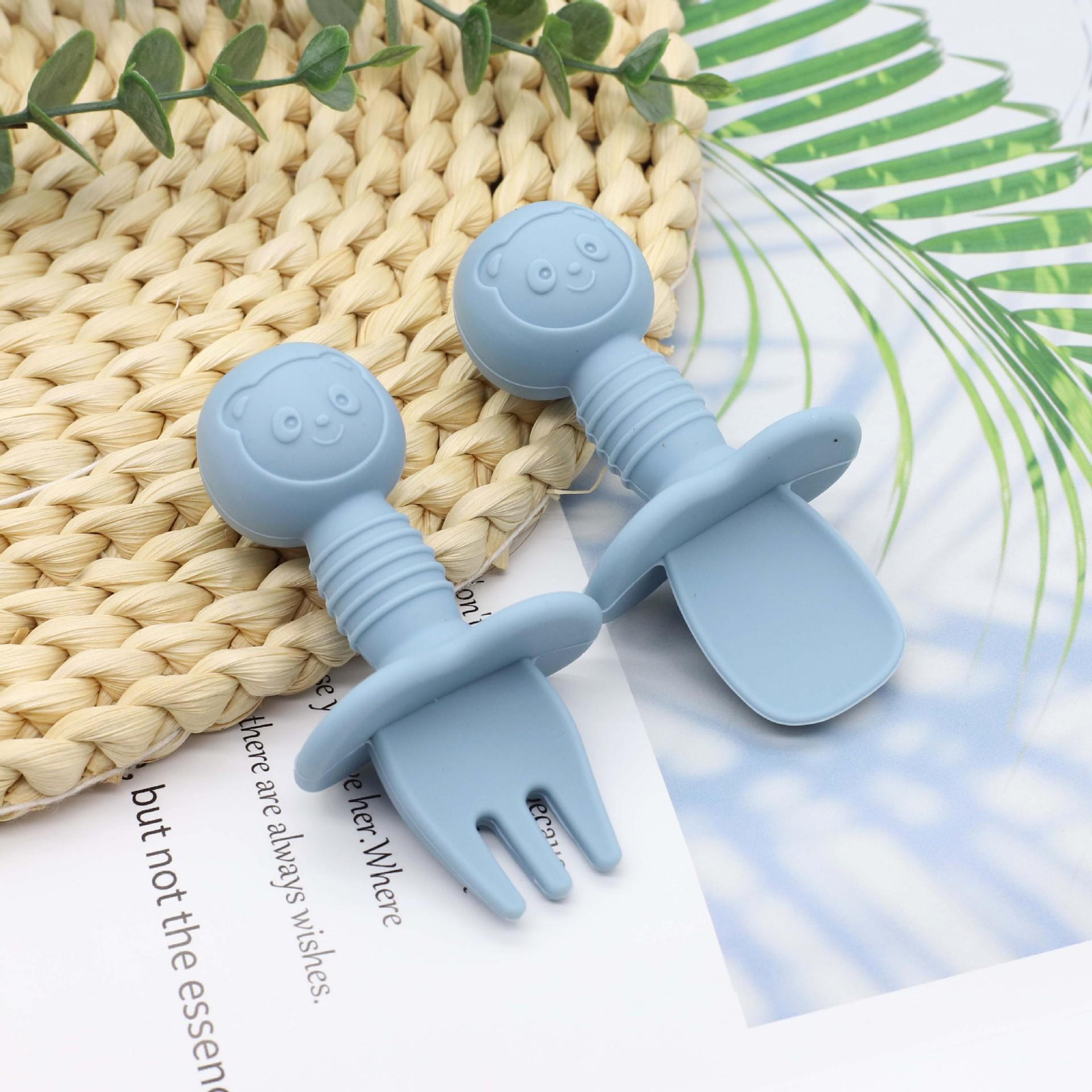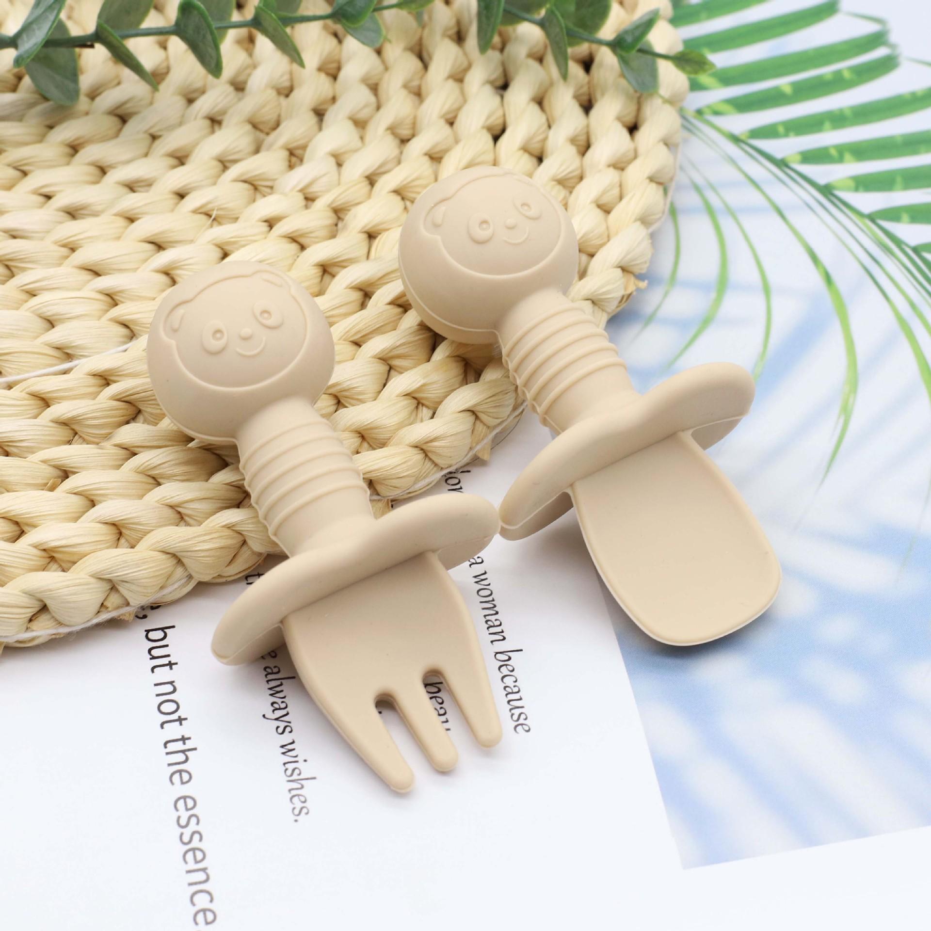Cuchara para comer de grado alimenticio para bebés Tenedor de silicona para entrenamiento de alimentos complementarios Tenedor de vajilla infantil Cuchara de mango corto Tenedor de entrenamiento para bebés