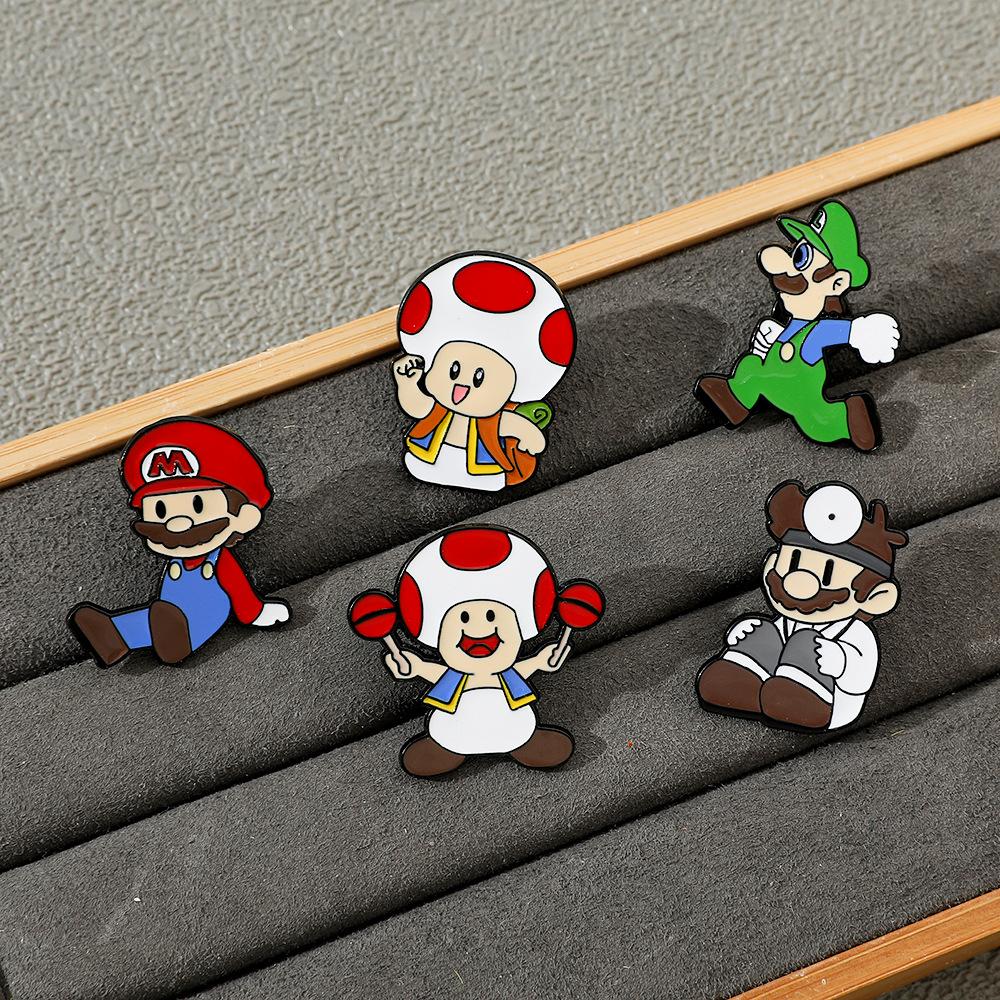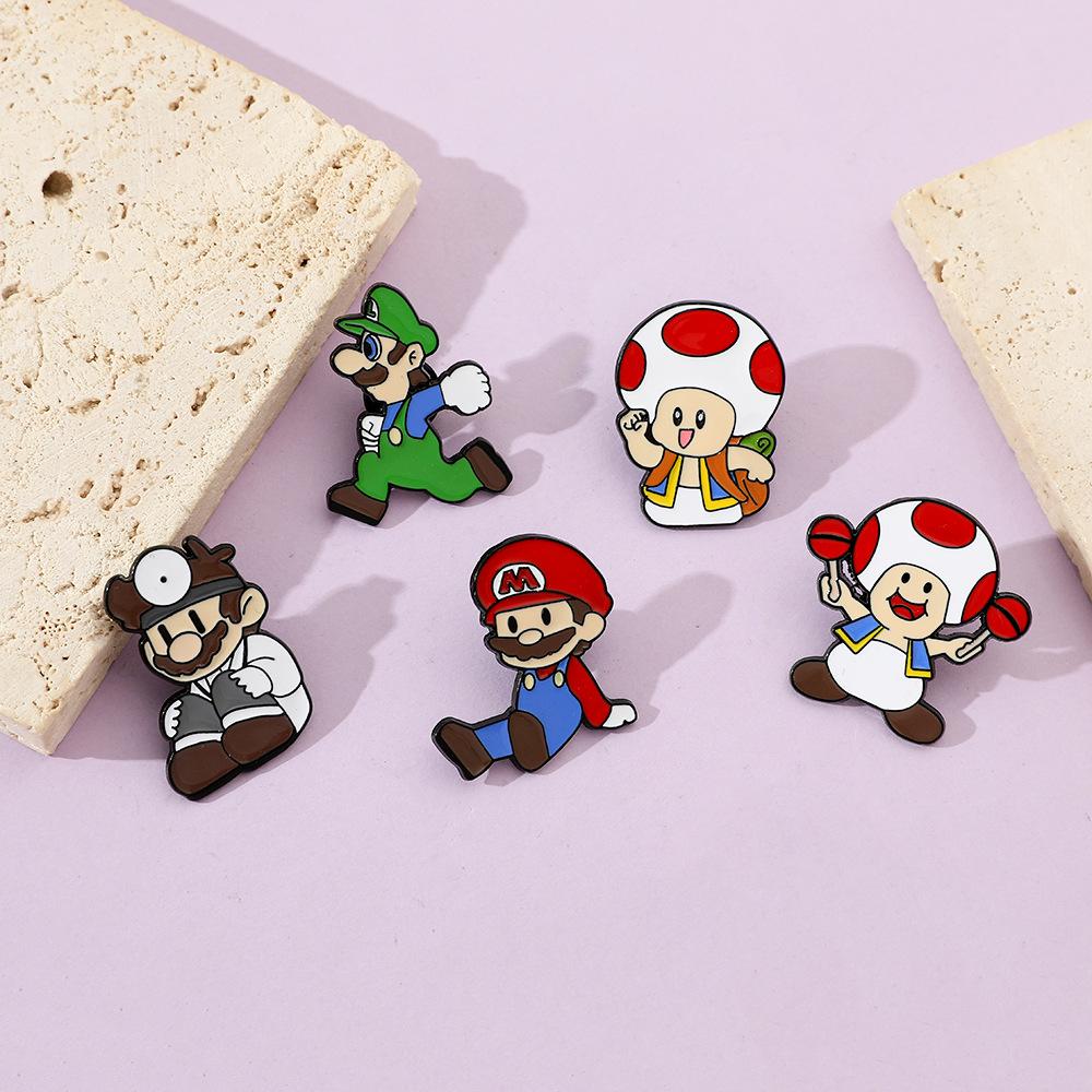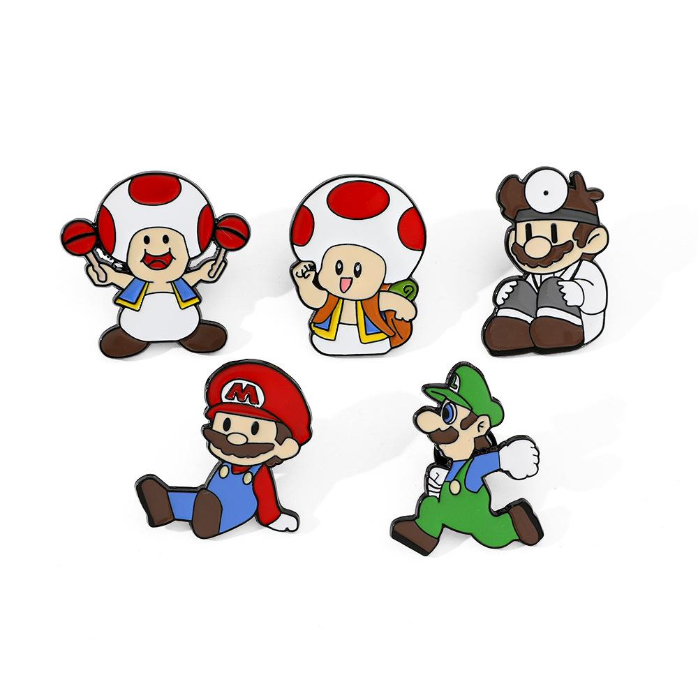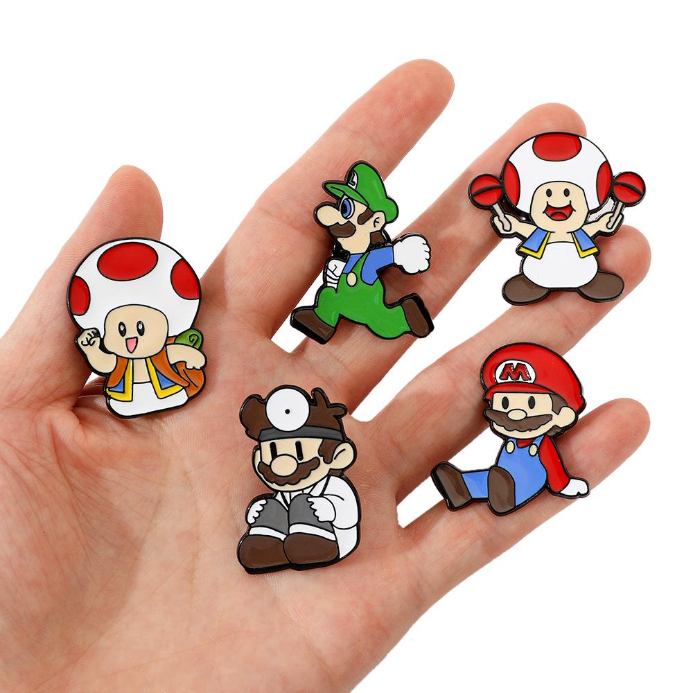 Broche creativo de dibujos animados japoneses de Mario, insignia de metal del personaje del juego Super Mary, pin de hongo, accesorios