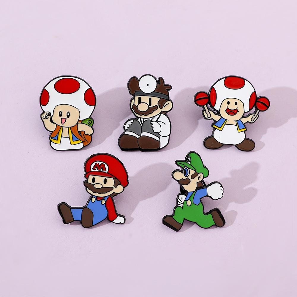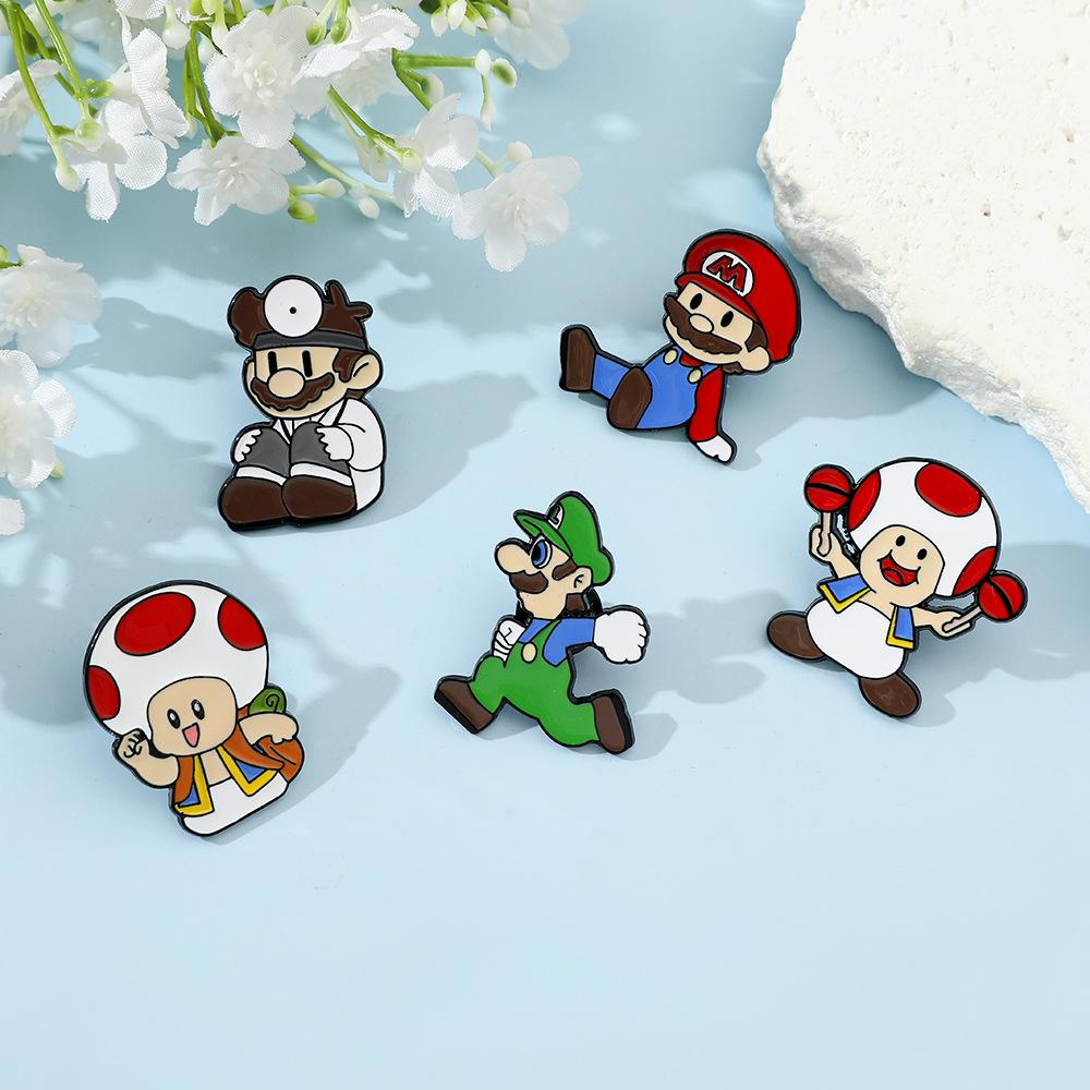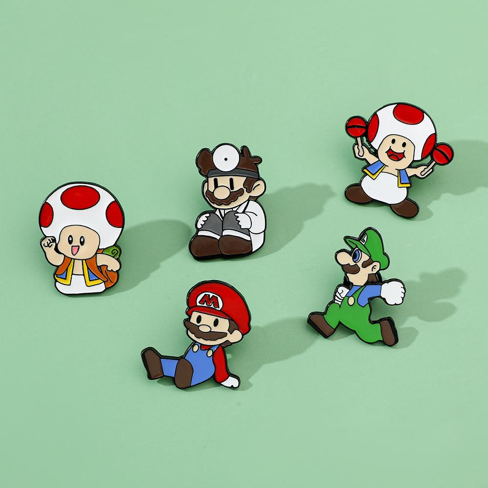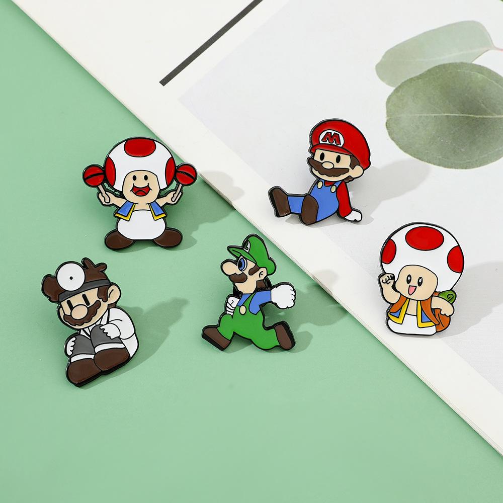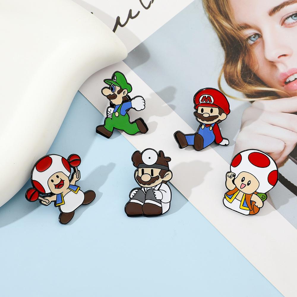Broche creativo de dibujos animados japoneses de Mario, insignia de metal del personaje del juego Super Mary, pin de hongo, accesorios