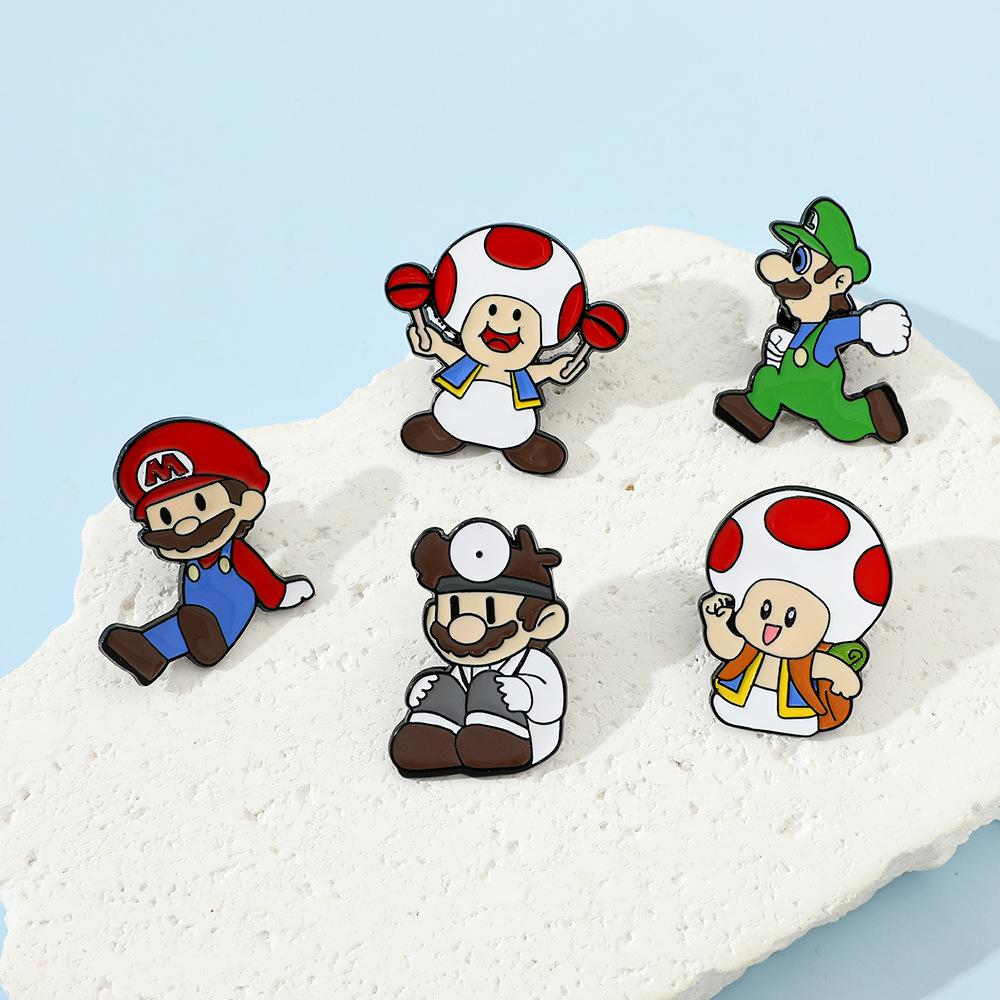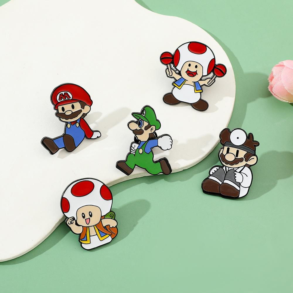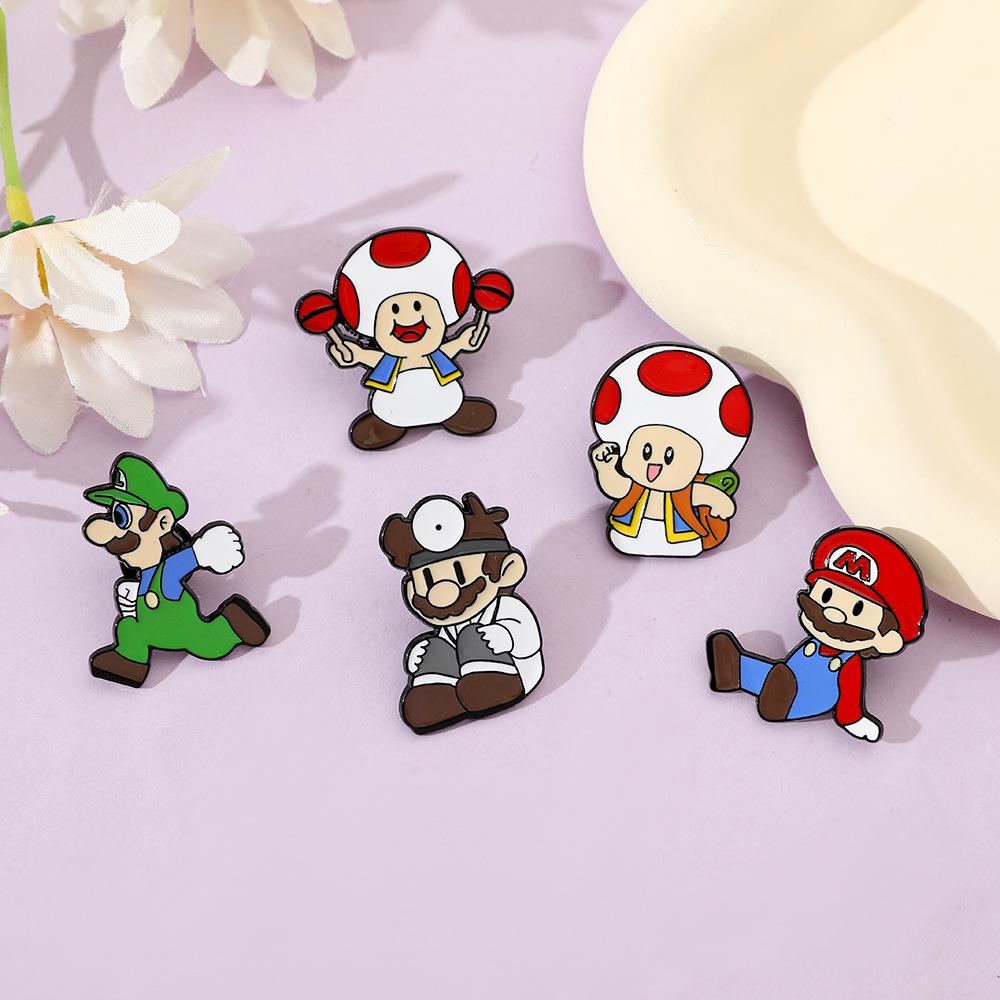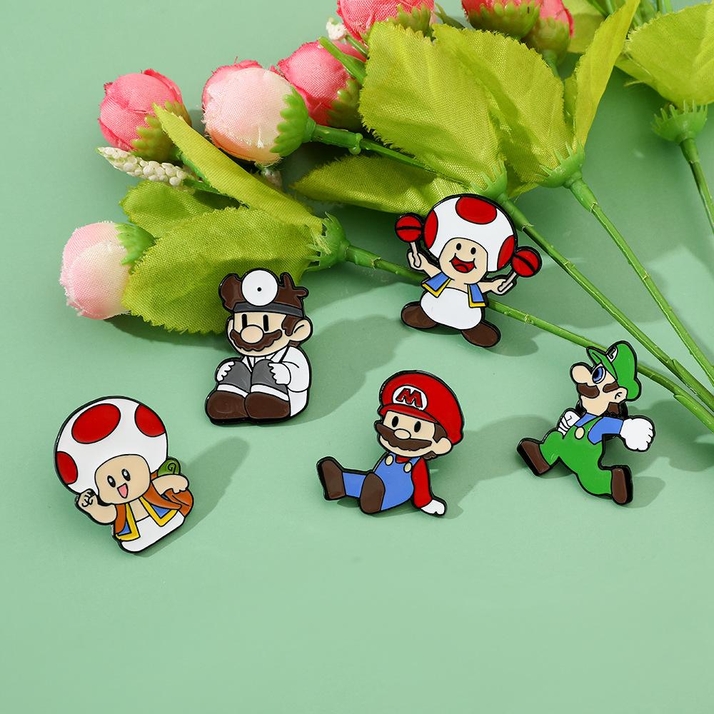 Broche creativo de dibujos animados japoneses de Mario, insignia de metal del personaje del juego Super Mary, pin de hongo, accesorios