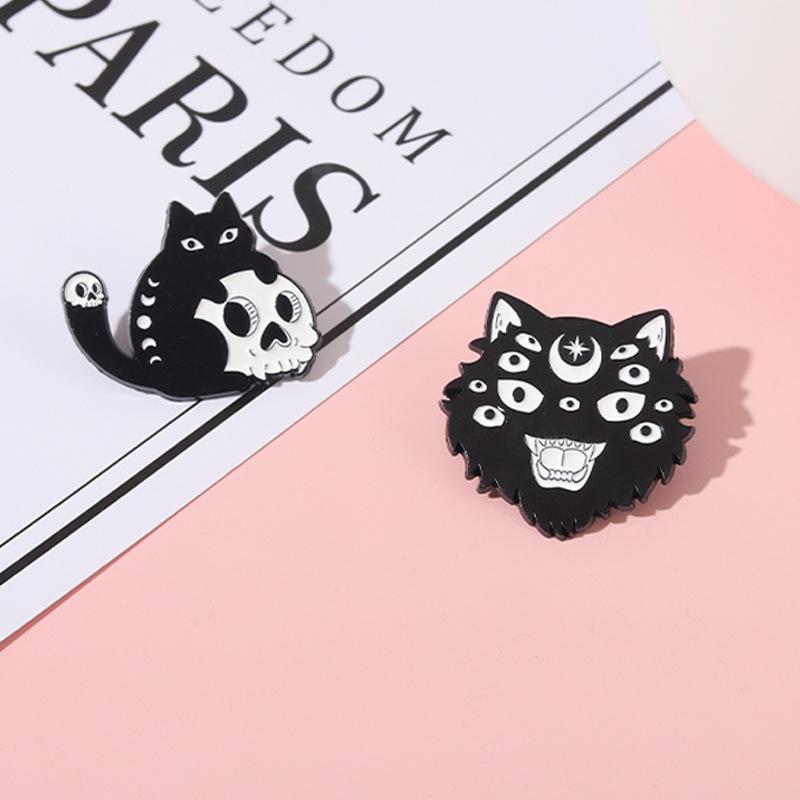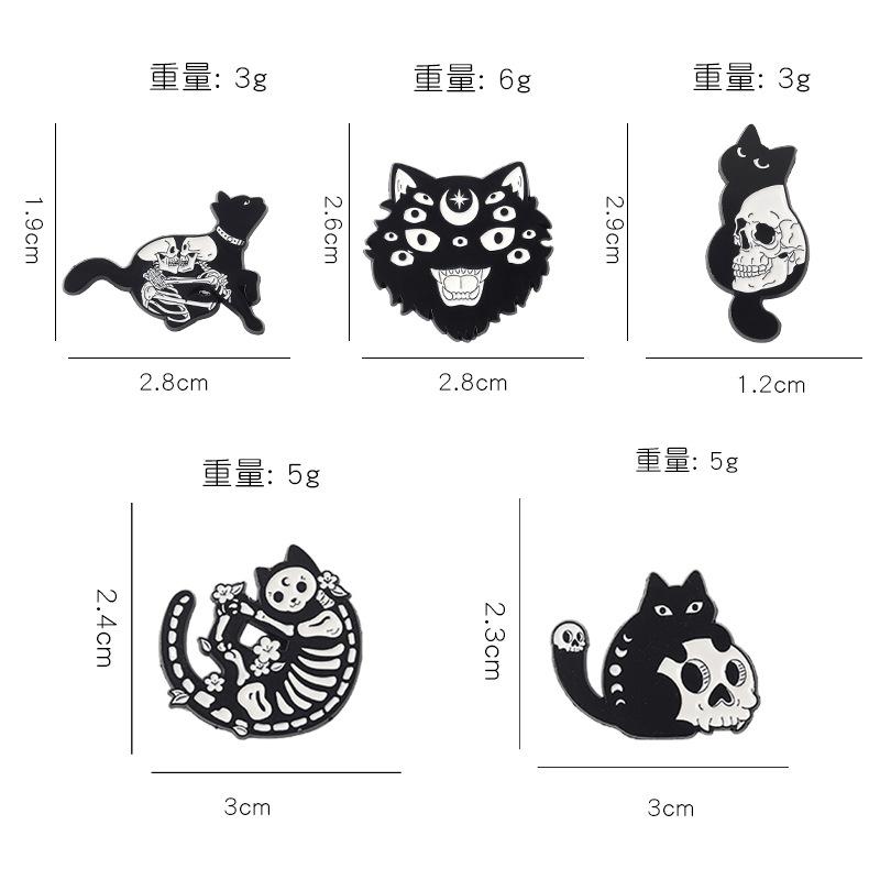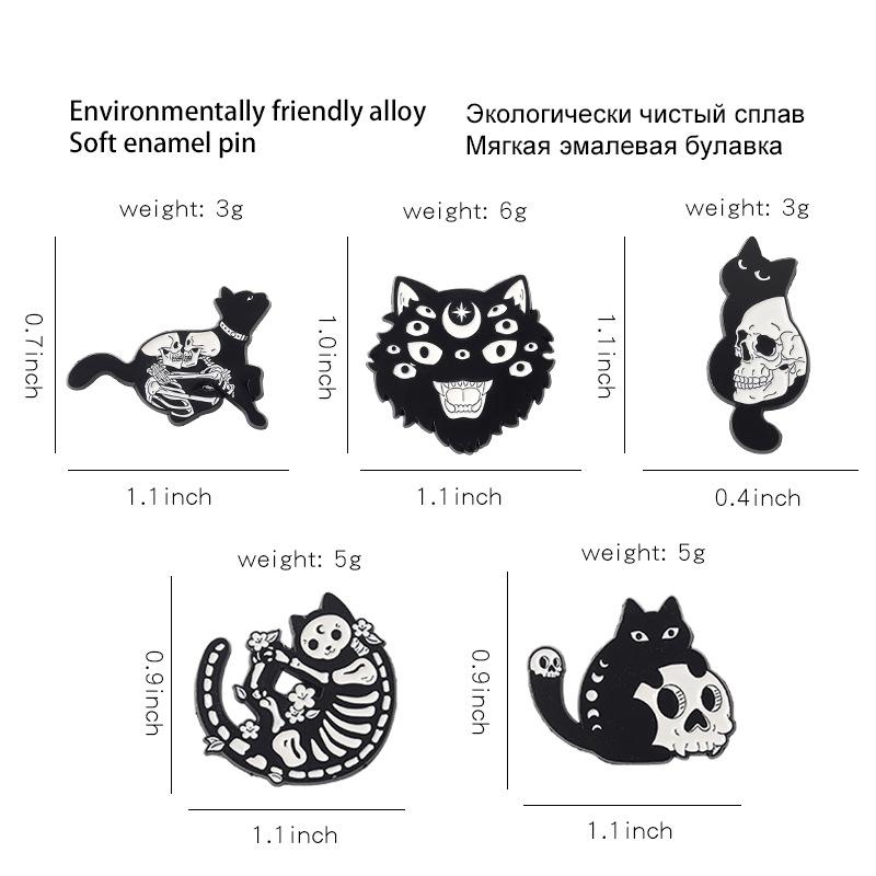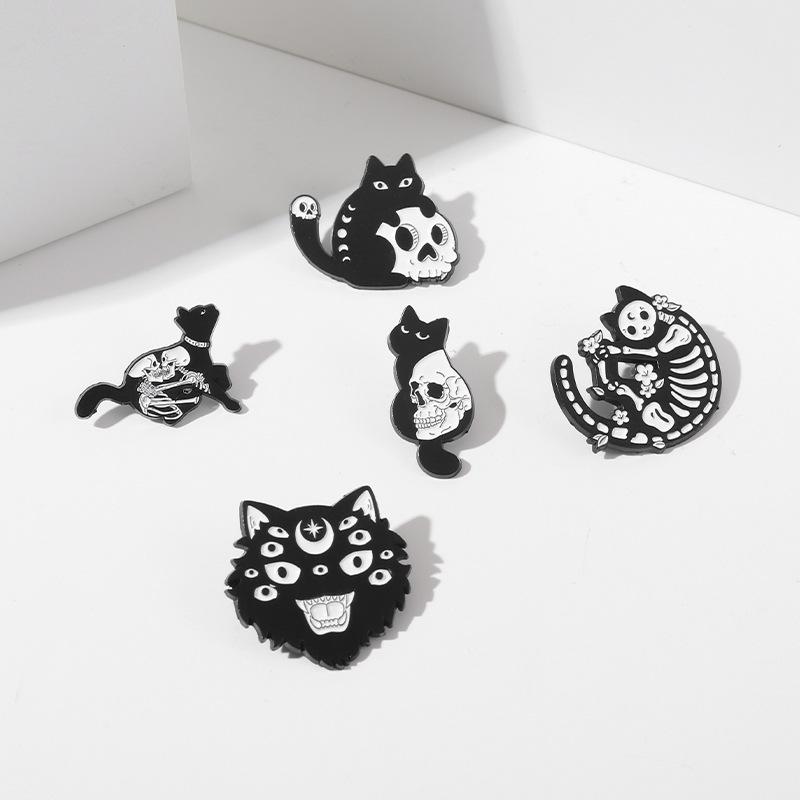 Broche de aleación con forma de gato negro y calavera, muy popular en Amazon, insignia de pintura con diseño de animal Diablo Punk