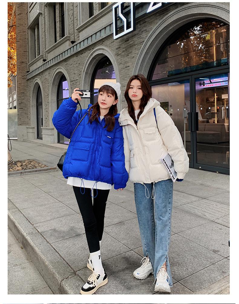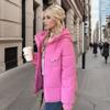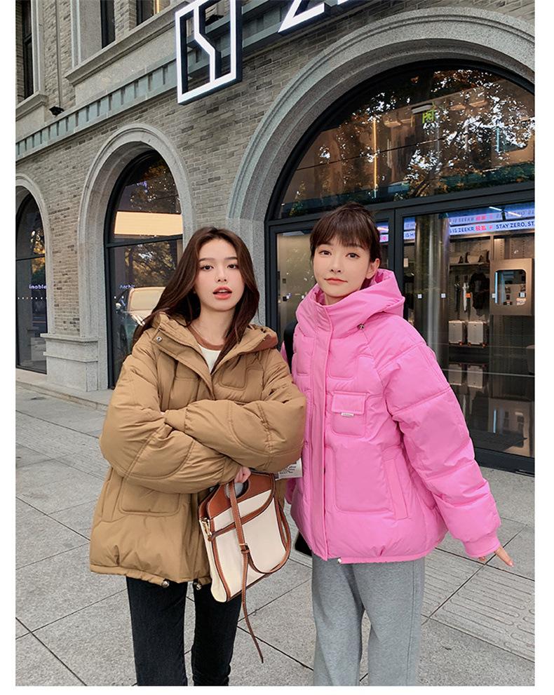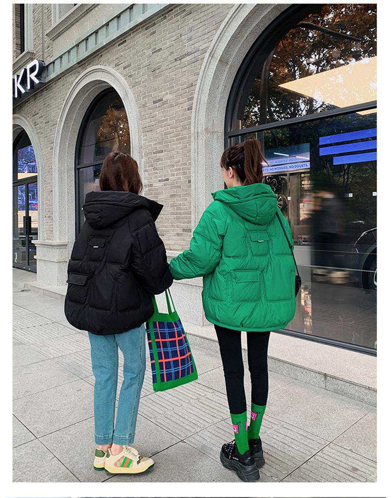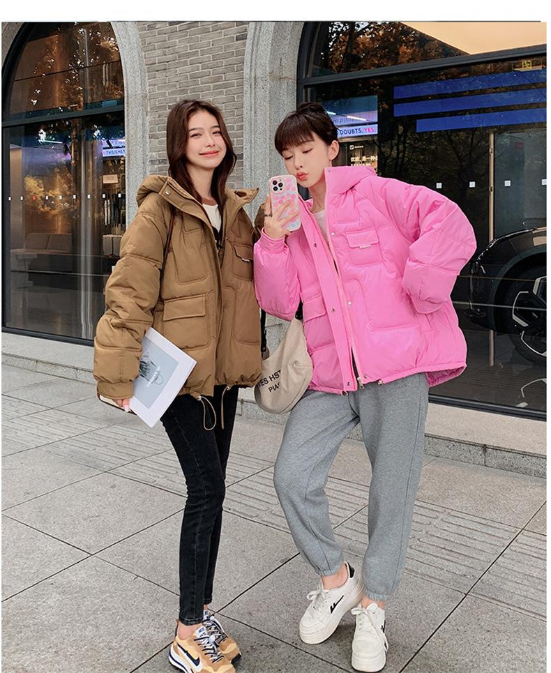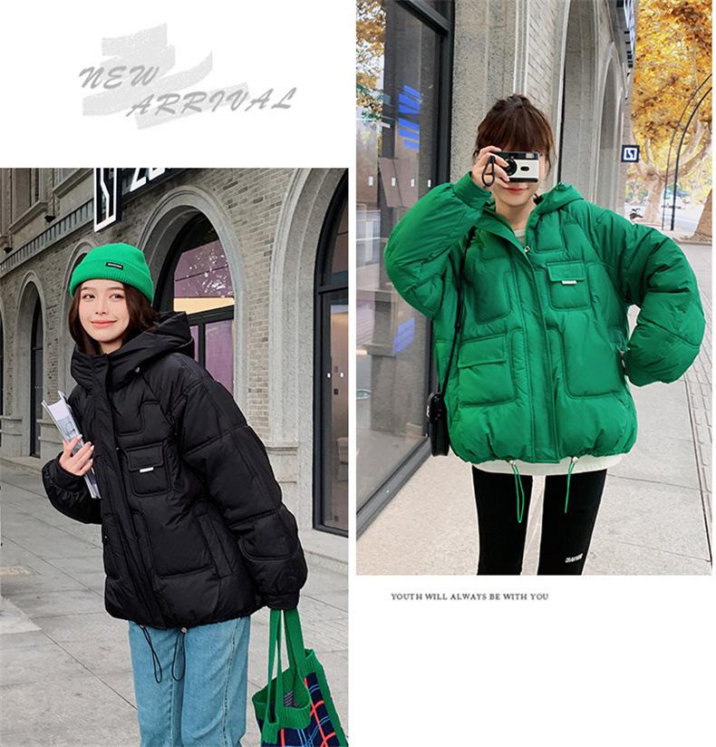 Abrigo corto multibolsillos acolchado de algodón para mujer, estilo coreano, holgado, con capucha, talla grande, para invierno, 2024
