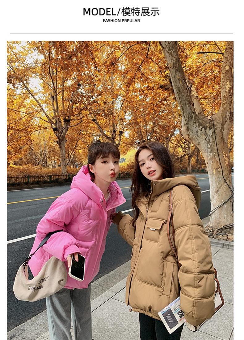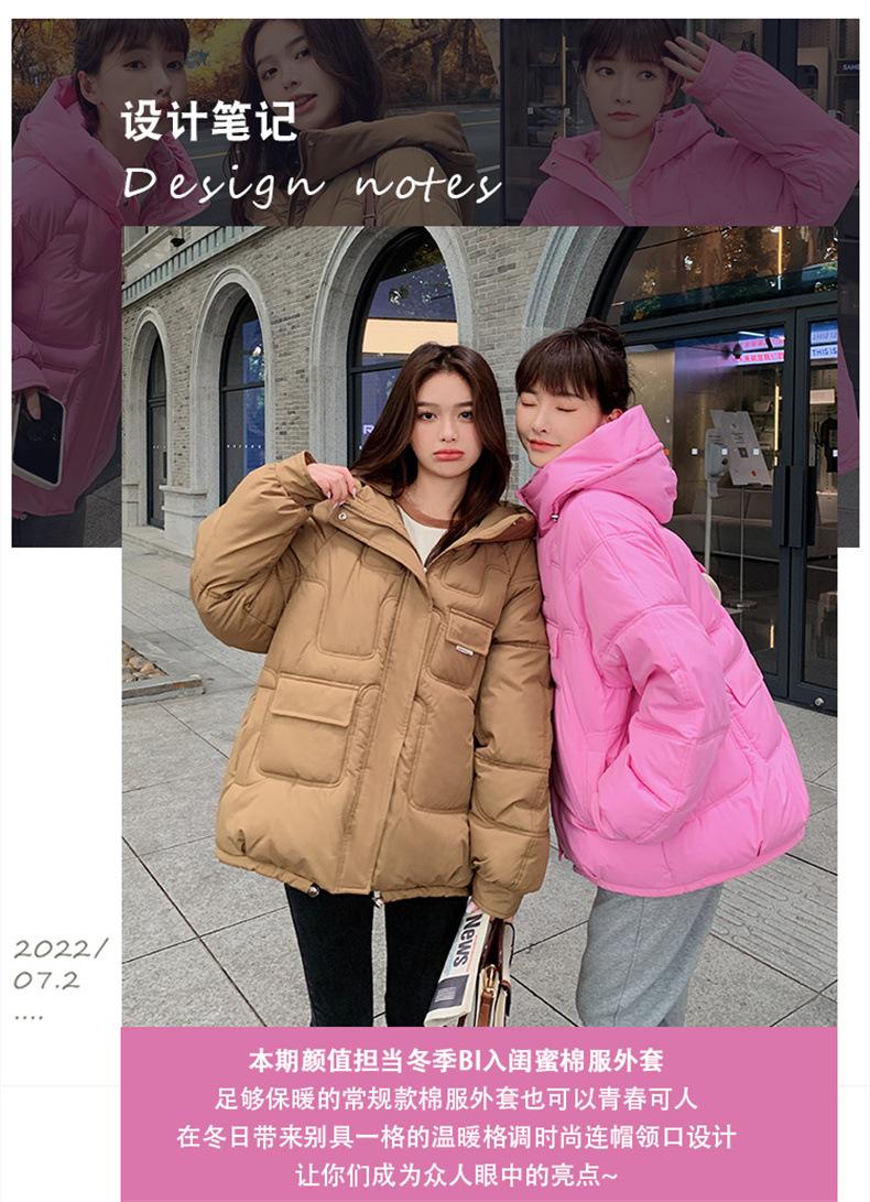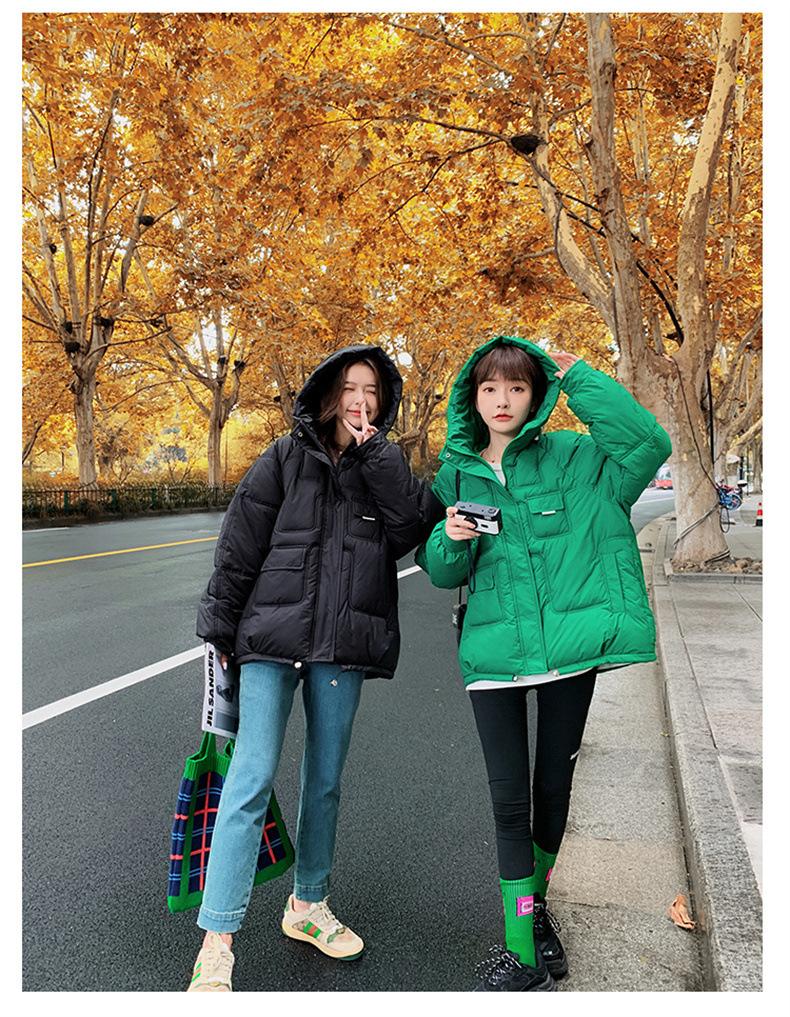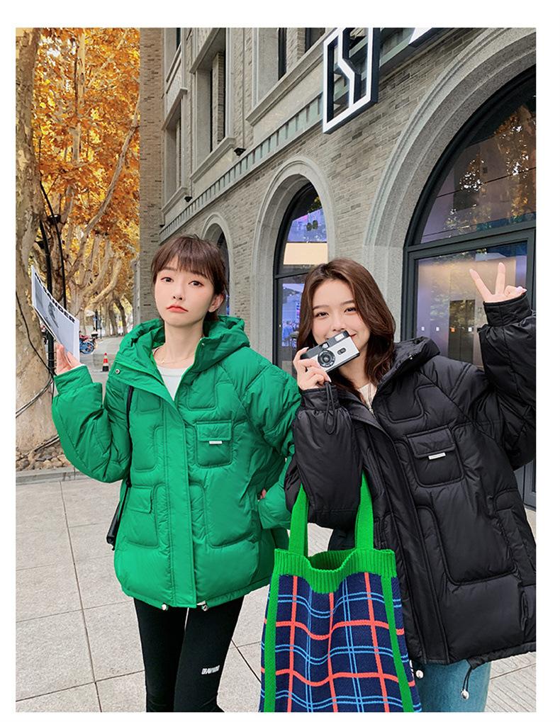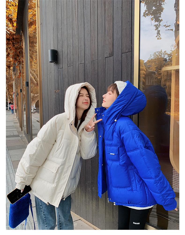 Abrigo corto multibolsillos acolchado de algodón para mujer, estilo coreano, holgado, con capucha, talla grande, para invierno, 2024