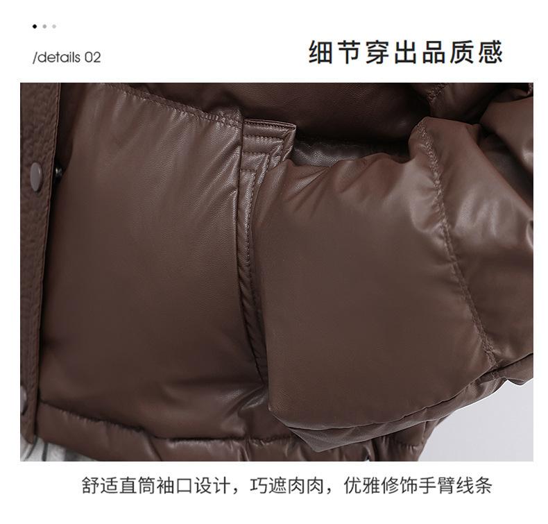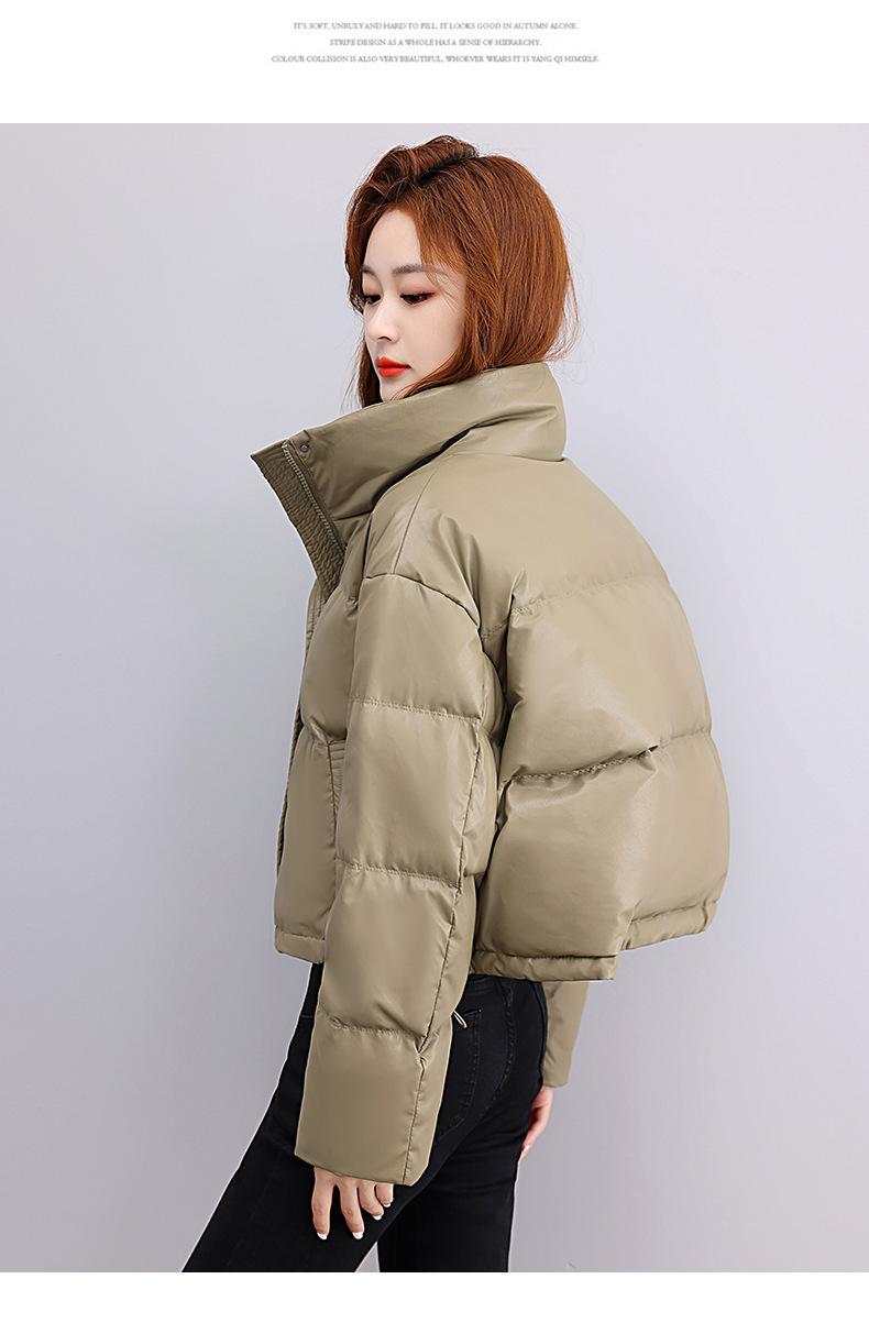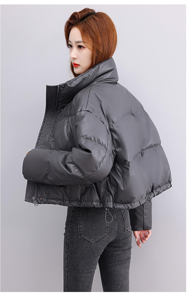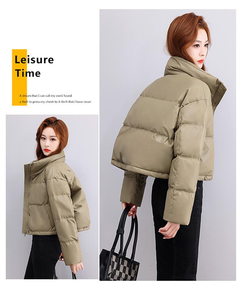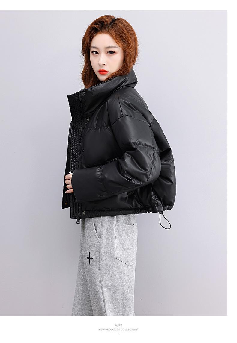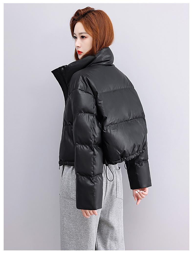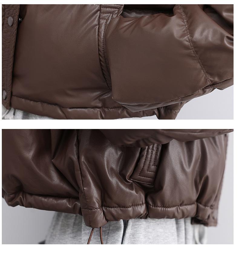 2024 Invierno Centroeuropeo y Americano Nuevo Abrigo Corto Holgado Acolchado de Algodón con Plumón para Mujer Cuello Alto Engrosado Cuero Chaqueta Acolchada de Algodón Abrigo Moderno