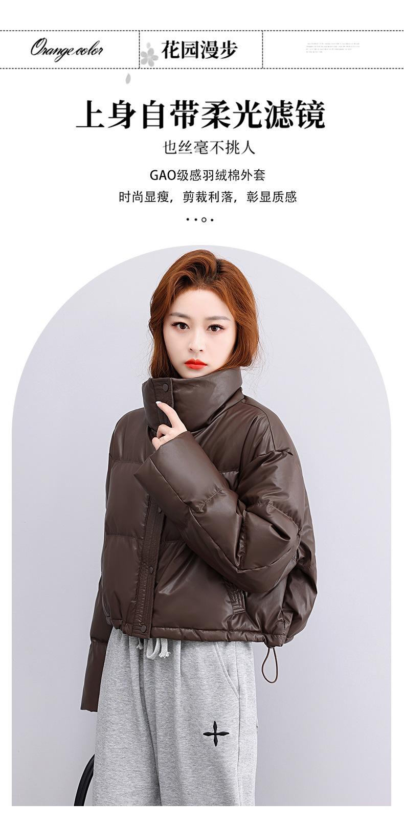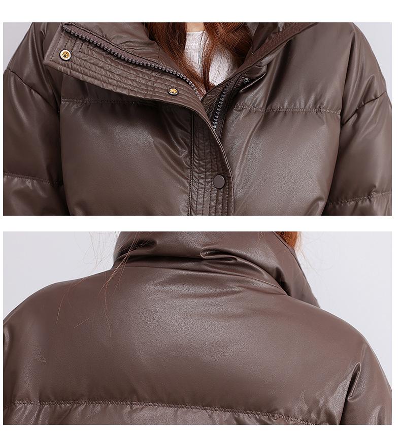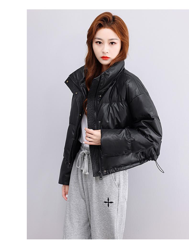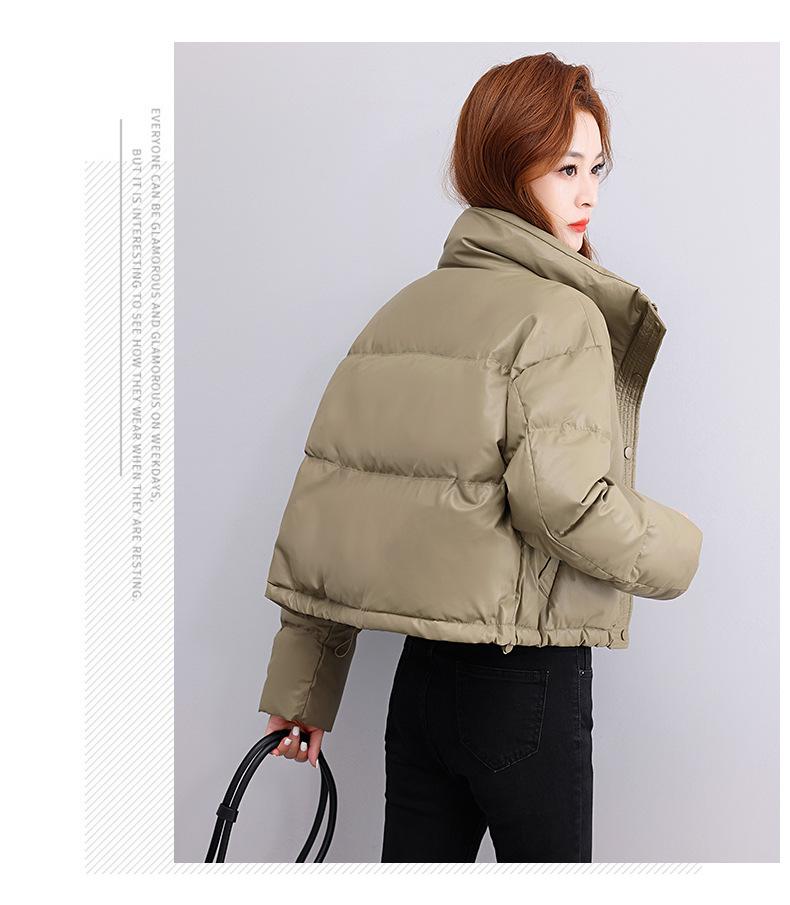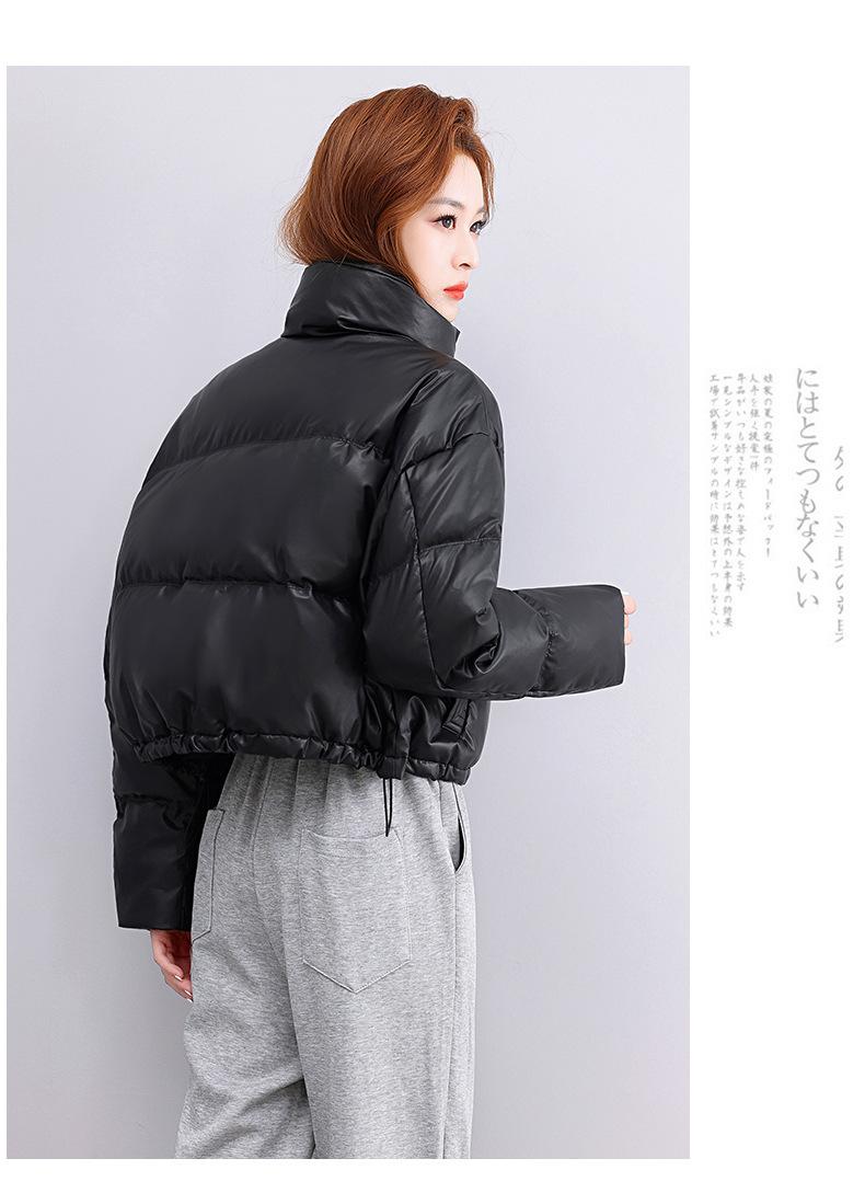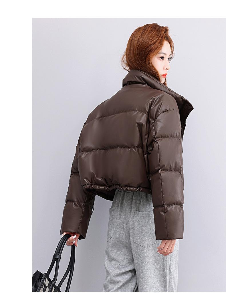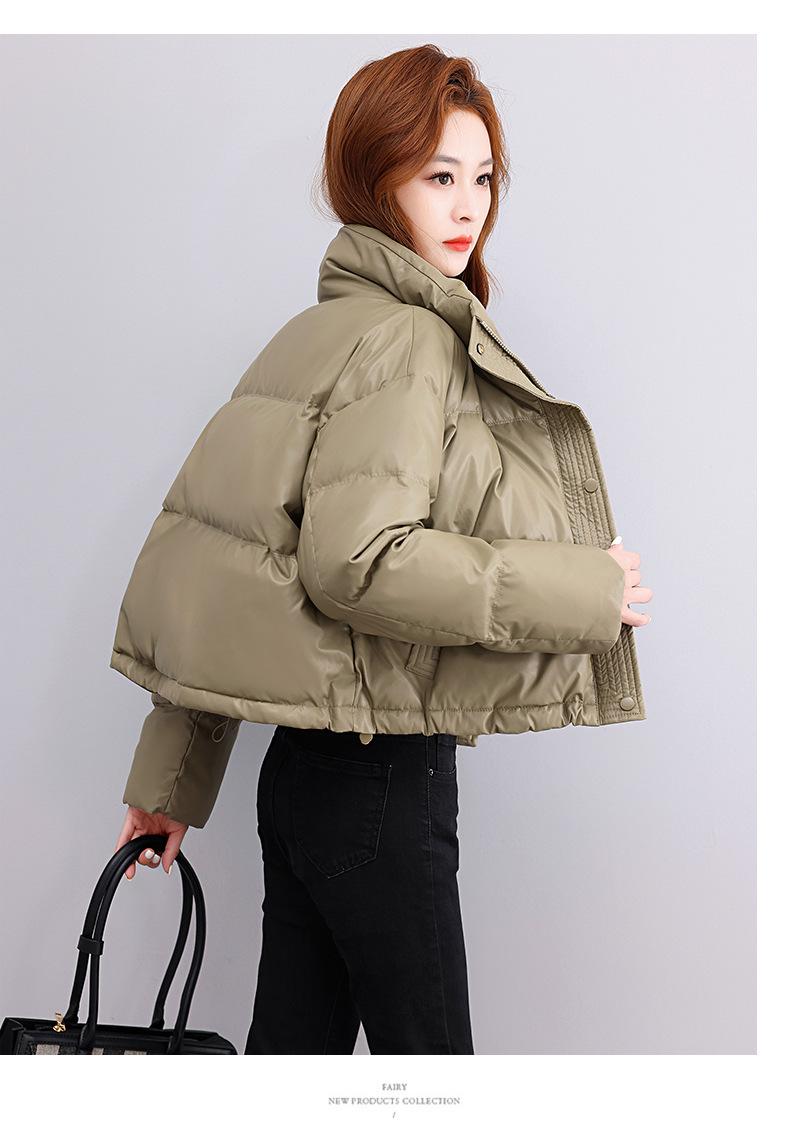2024 Invierno Centroeuropeo y Americano Nuevo Abrigo Corto Holgado Acolchado de Algodón con Plumón para Mujer Cuello Alto Engrosado Cuero Chaqueta Acolchada de Algodón Abrigo Moderno
