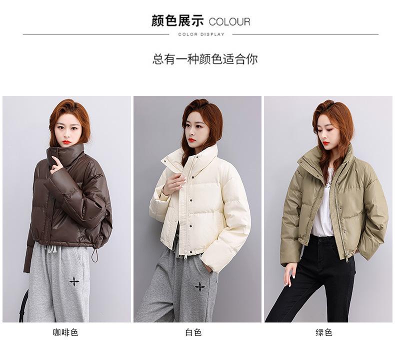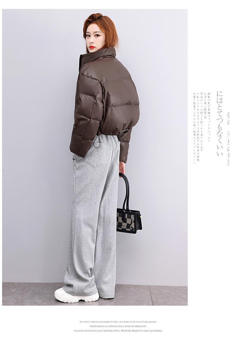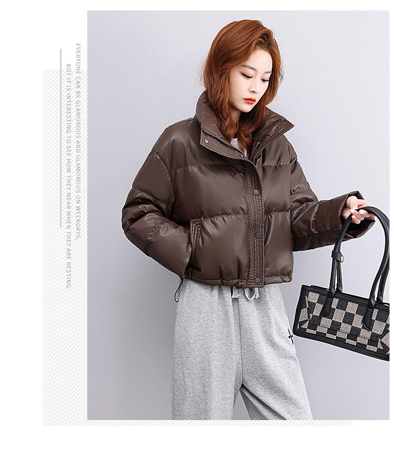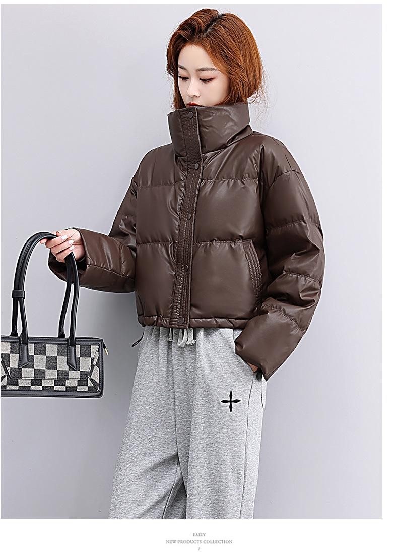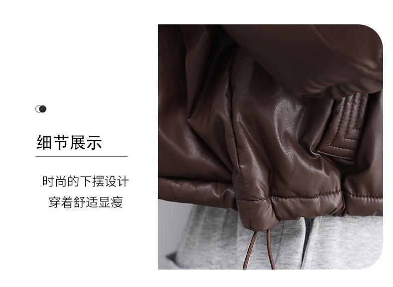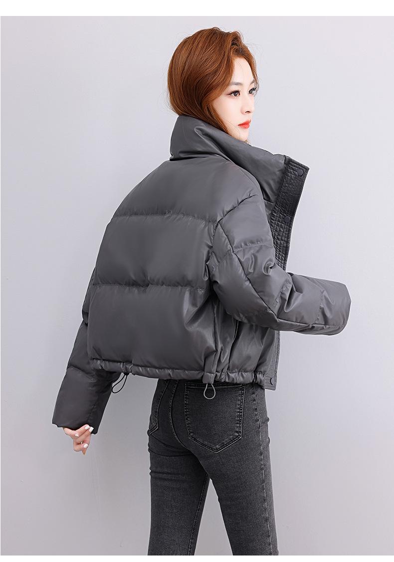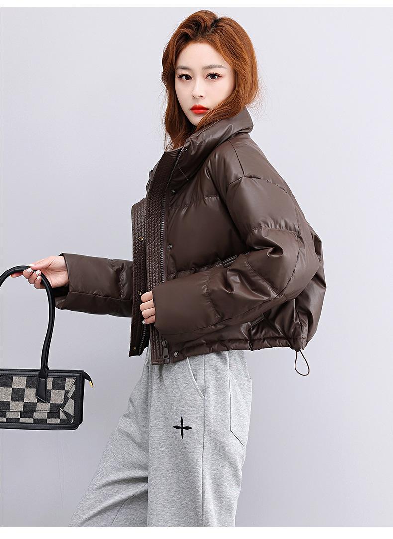 2024 Invierno Centroeuropeo y Americano Nuevo Abrigo Corto Holgado Acolchado de Algodón con Plumón para Mujer Cuello Alto Engrosado Cuero Chaqueta Acolchada de Algodón Abrigo Moderno